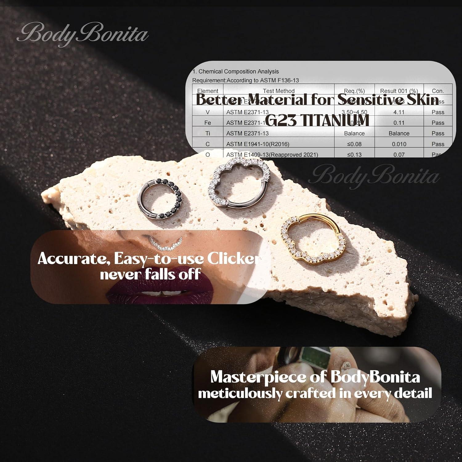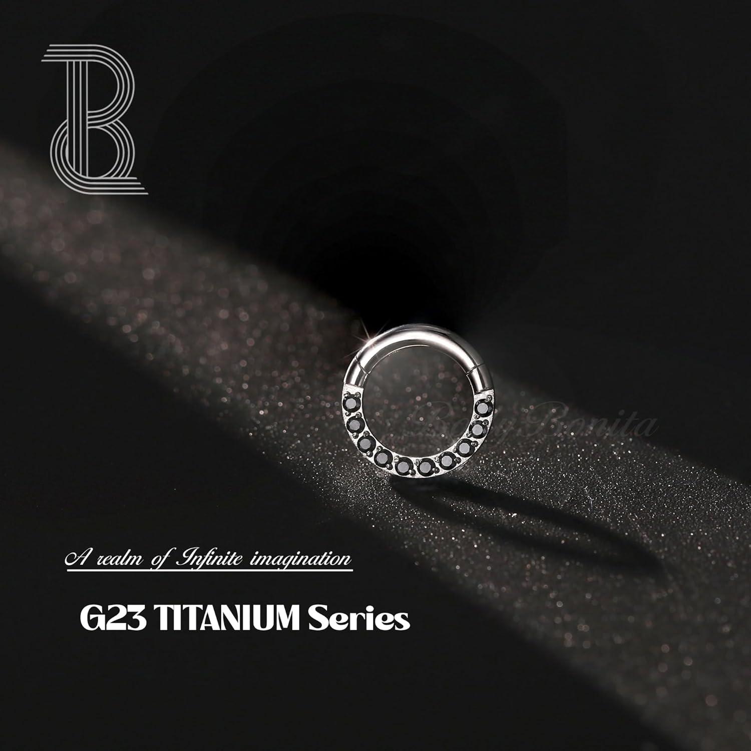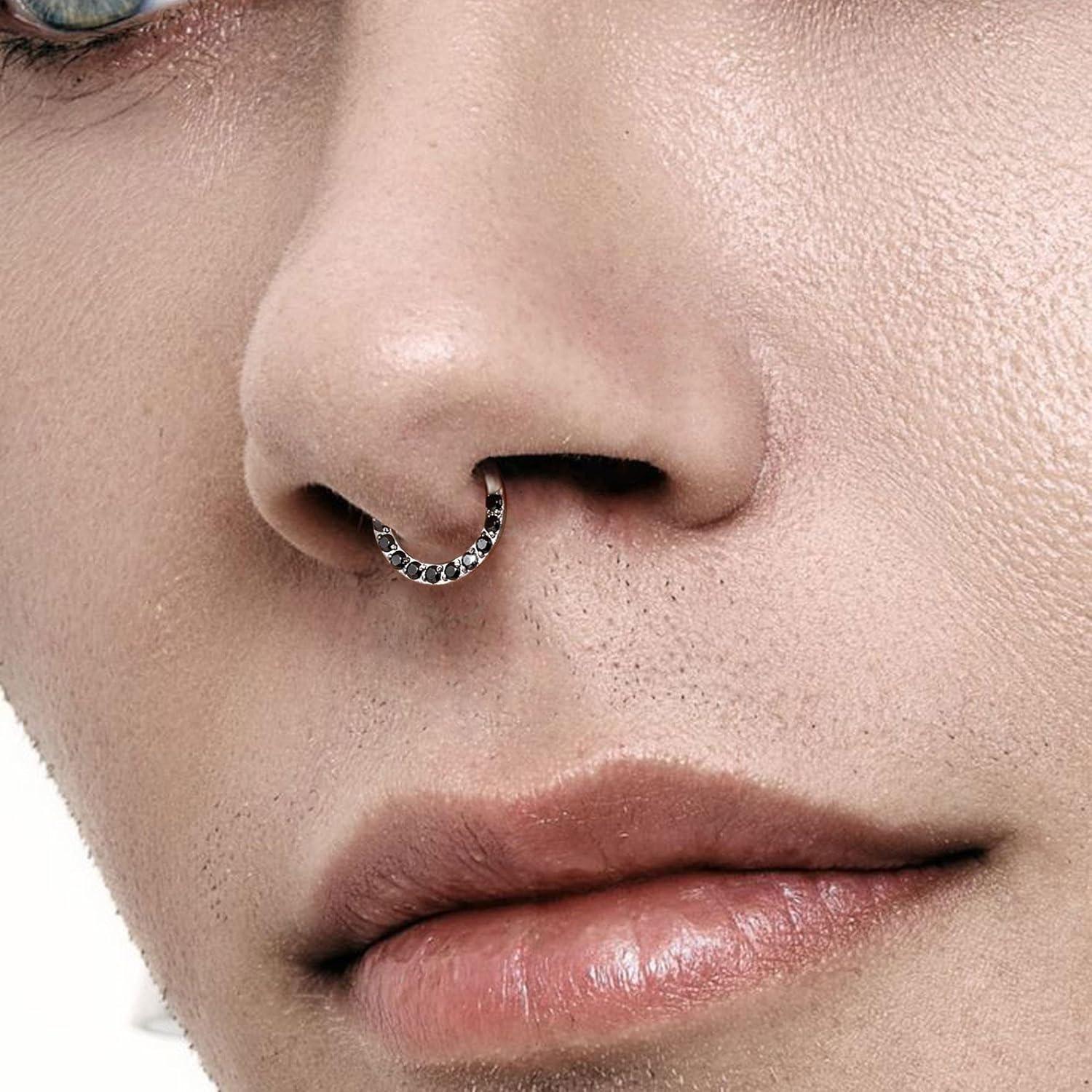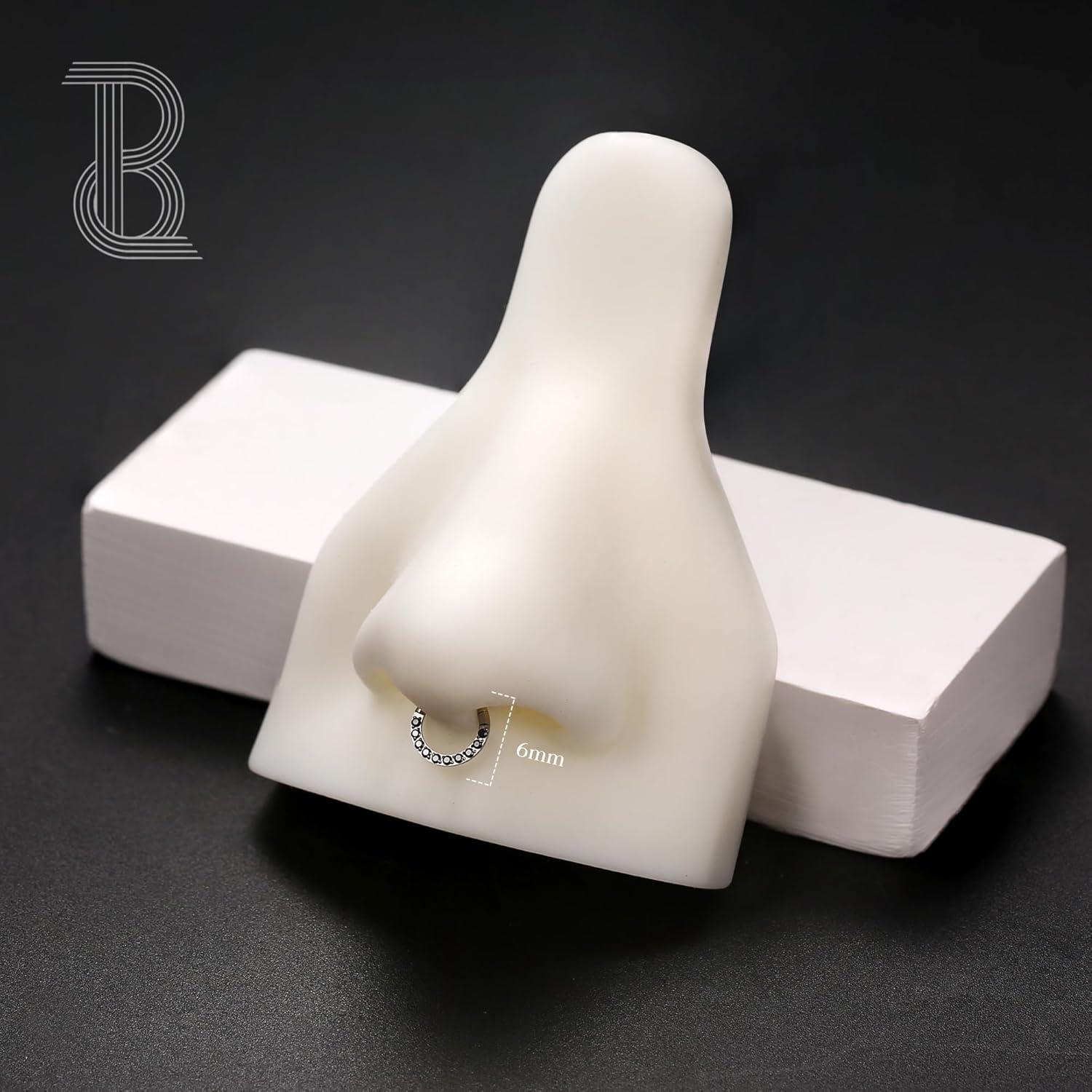 BodyBonita 16G 6mm Hinged Septum Rings – G23 Titanium Nose Rings Hoops Clicker Septum Jewelry Black CZ Nose Piercings Helix Tragus Rook Daith Earrings for Women Men Silver(Silver-Black CZ)
