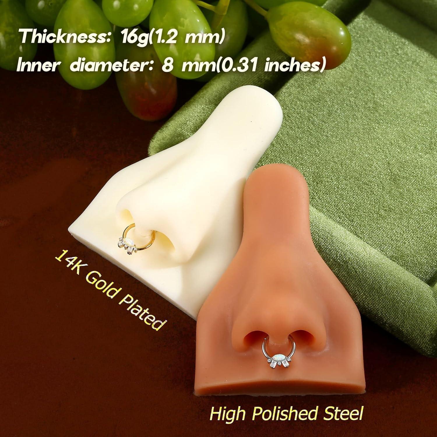 BodyBonita 16G Opal Septum Rings CZ, 316L Surgical Steel Septum Jewelry, Nose Rings Hoops Clicker, Helix Tragus Rook Daith Piercings for Women Men Silver/Gold 8 mm(Gold-CZ Opal)