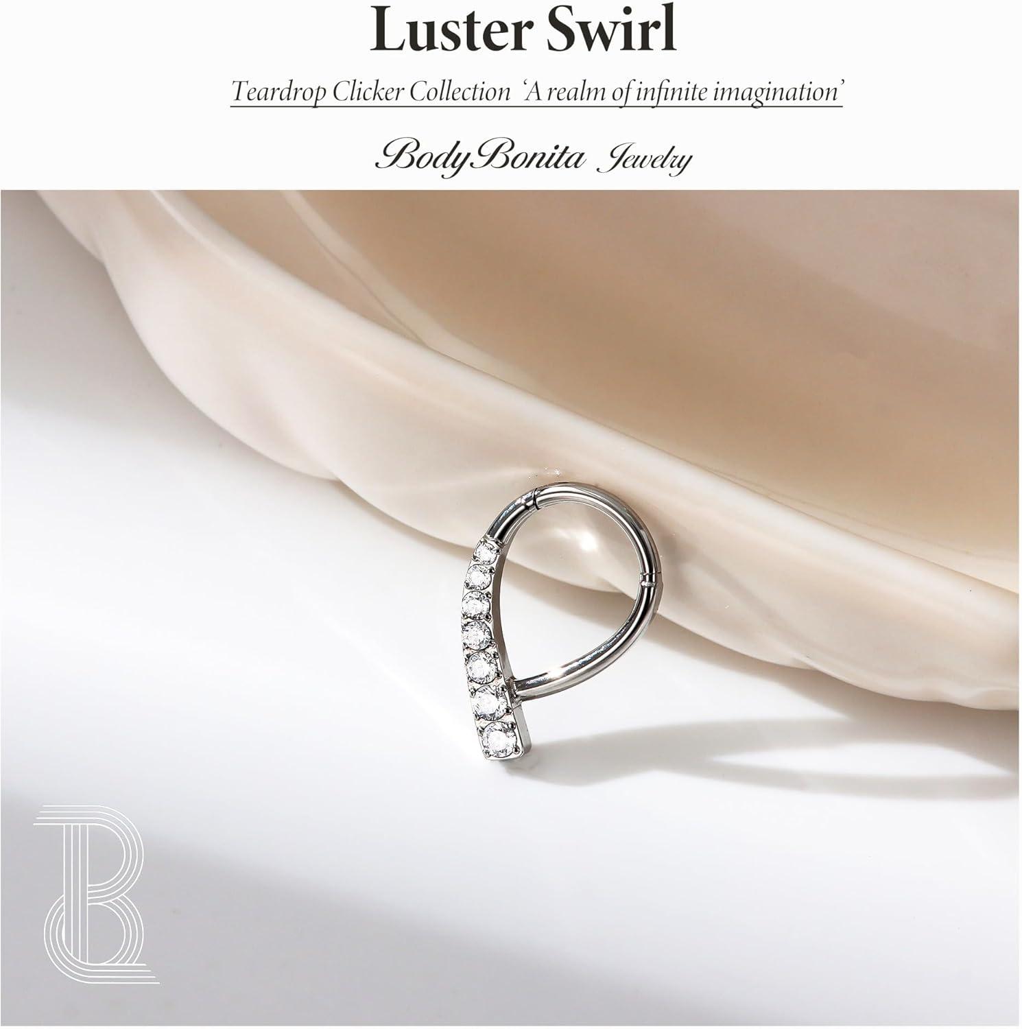 BodyBonita 16G Septum Ring – 316L Surgical Steel Teardrop Nose Rings Hoops Clear CZ Nose Piercings Daith Piercing Jewelry Tragus Helix Rook Cartilage Earrings for Women 8mm(Silver-Collar)