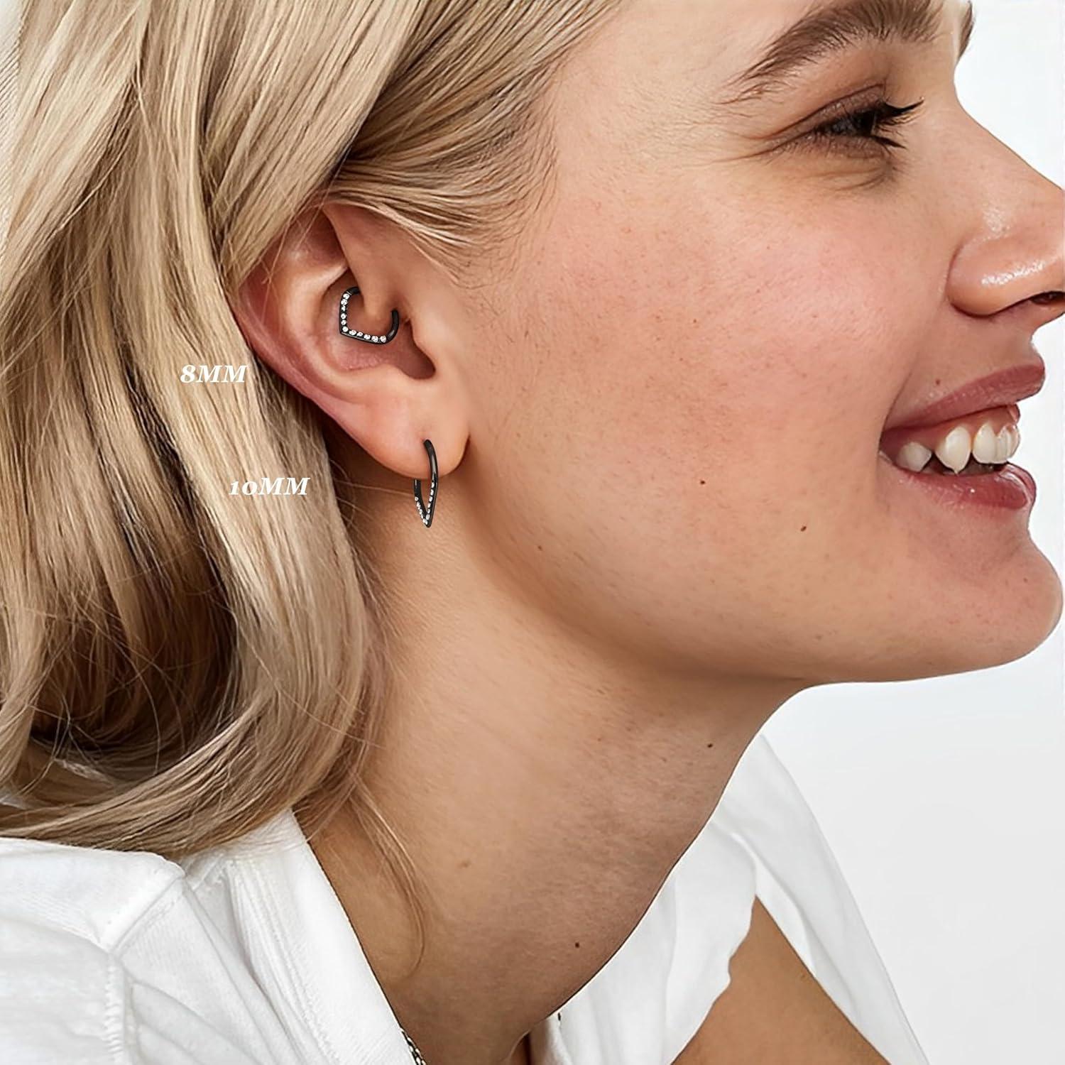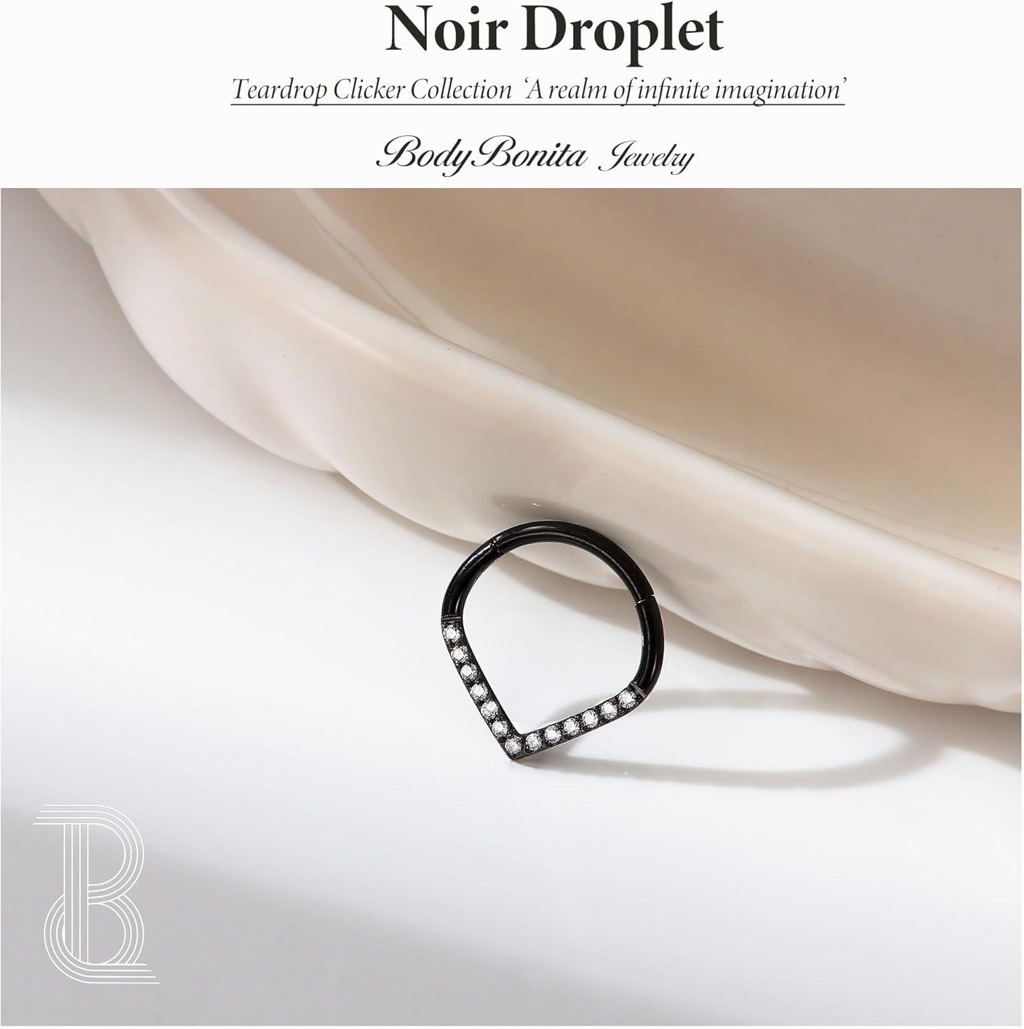 BodyBonita 16G Septum Rings – 316L Surgical Steel Teardrop Hinged Nose Rings Hoops Seamless Septum Jewelry CZ Nose Piercings Helix Tragus Rook Daith Piercing Men Silver/Gold Plated/Black 8mm 10mm(Black Clear CZ(5A))