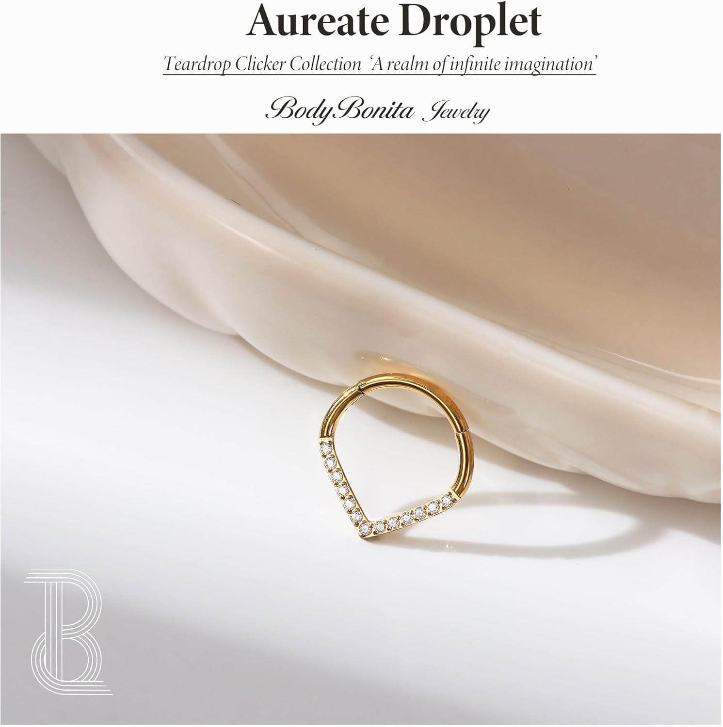 BodyBonita 16G Septum Rings – 316L Surgical Steel Teardrop Hinged Nose Rings Hoops Seamless Septum Jewelry CZ Nose Piercings Helix Tragus Rook Daith Piercing Men Silver/Gold Plated/Black 8mm 10mm(Gold Clear CZ(5A))