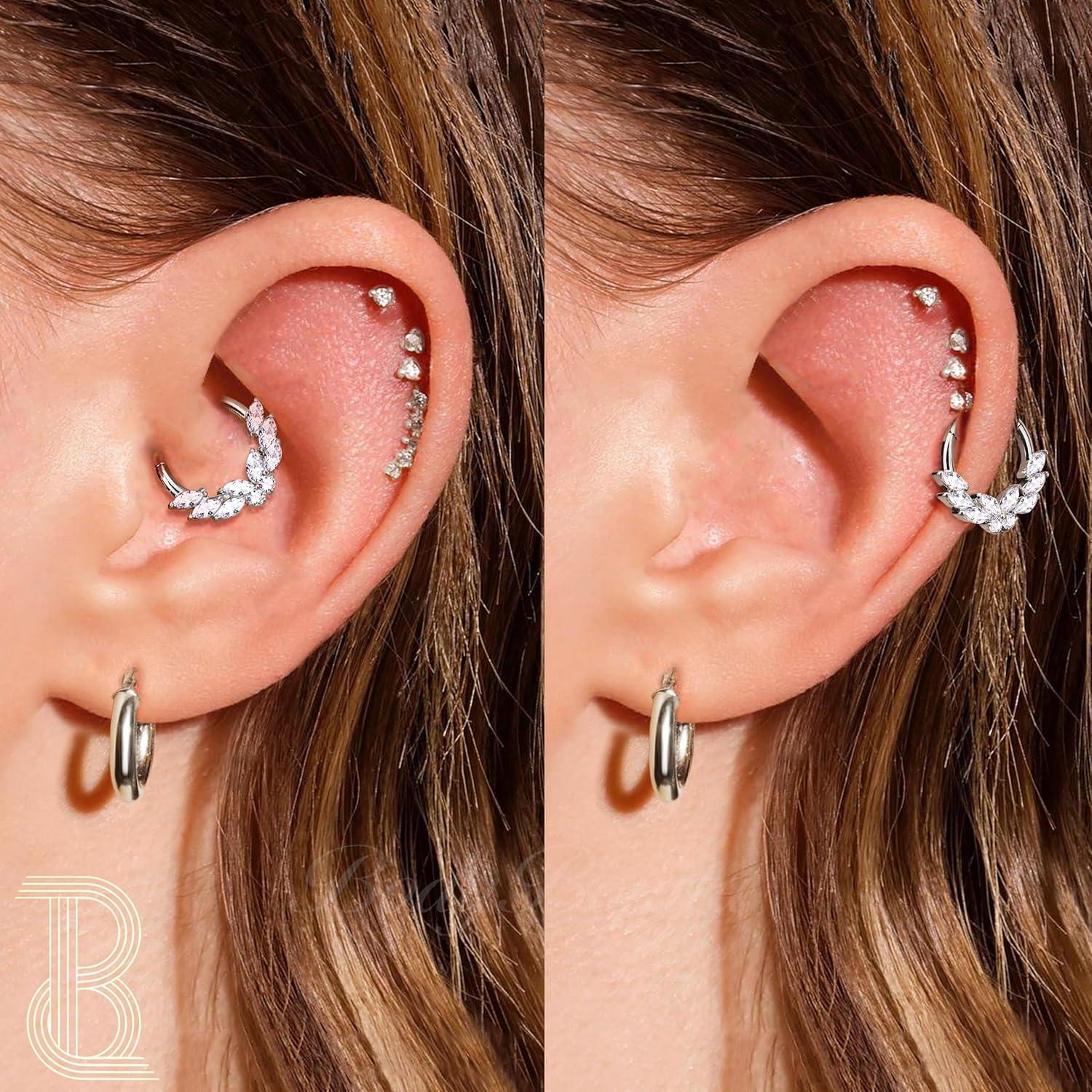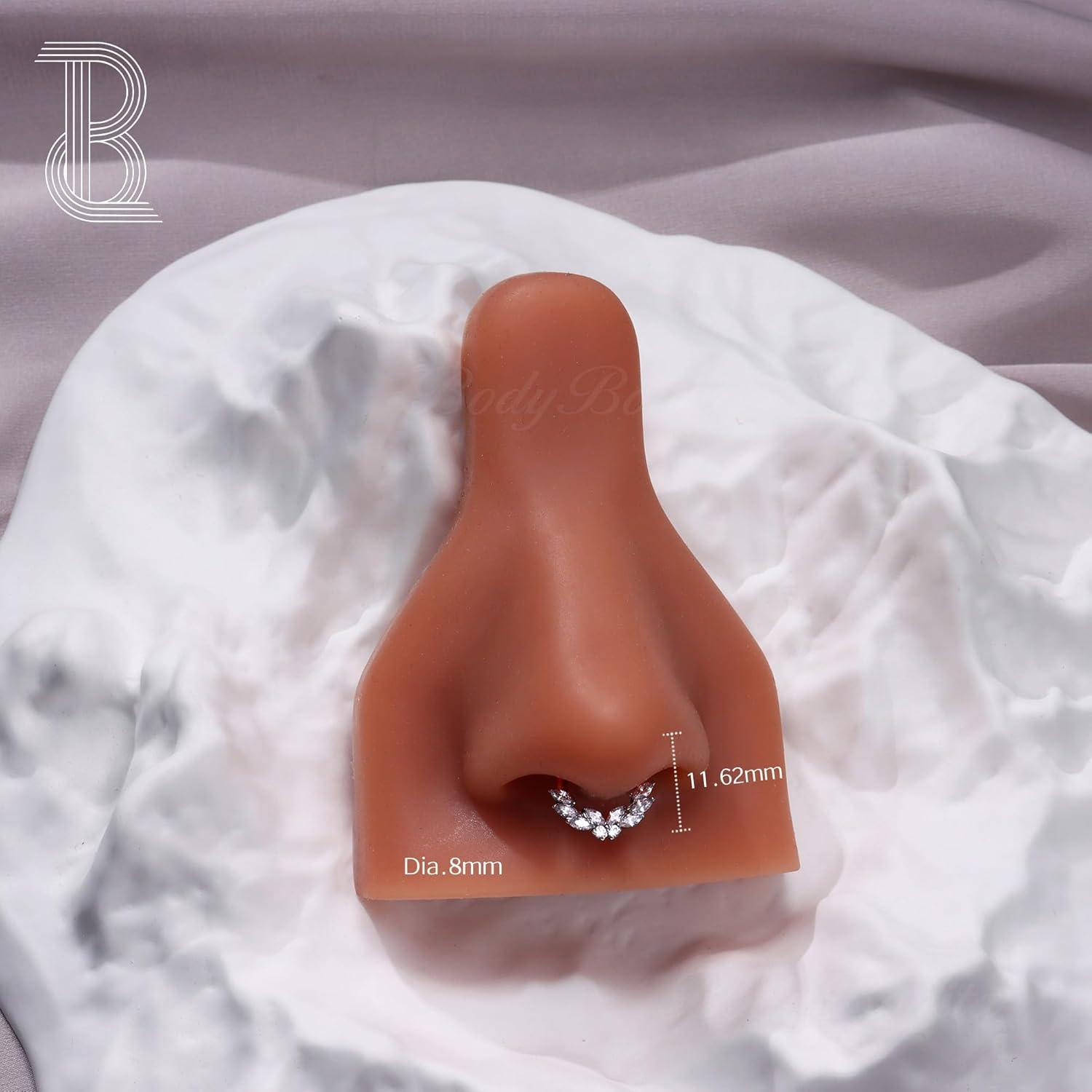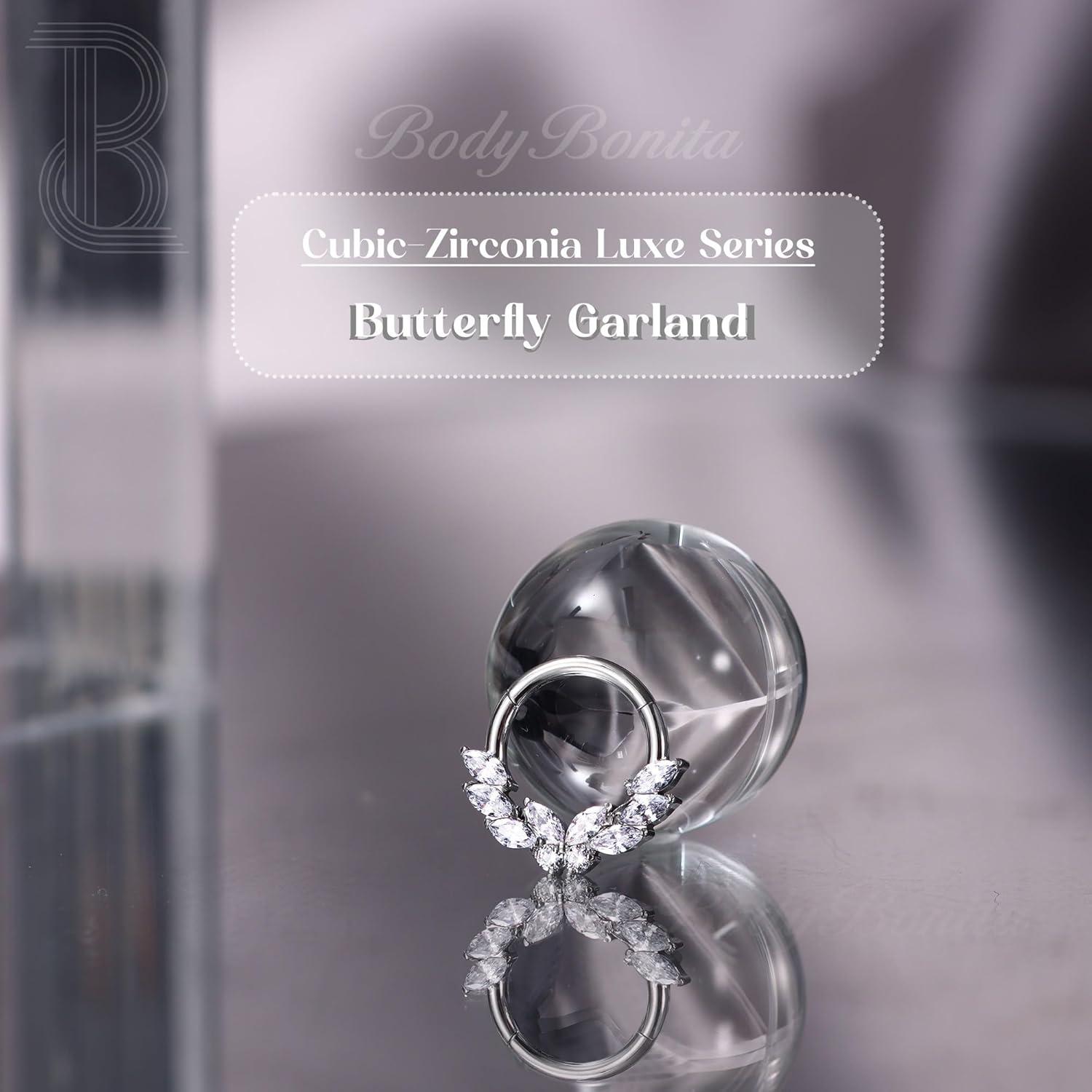BodyBonita 16G Septum Rings Jewelry – Cubic Zirconia Luxe 316L Stainless Steel Hinged Nose Rings Hoops for Women Conch Piercing Jewelry Tragus Daith Helix Earring 14K Gold Plated/Silver 8 mm/10 mm(Butterfly Garland-Silver)