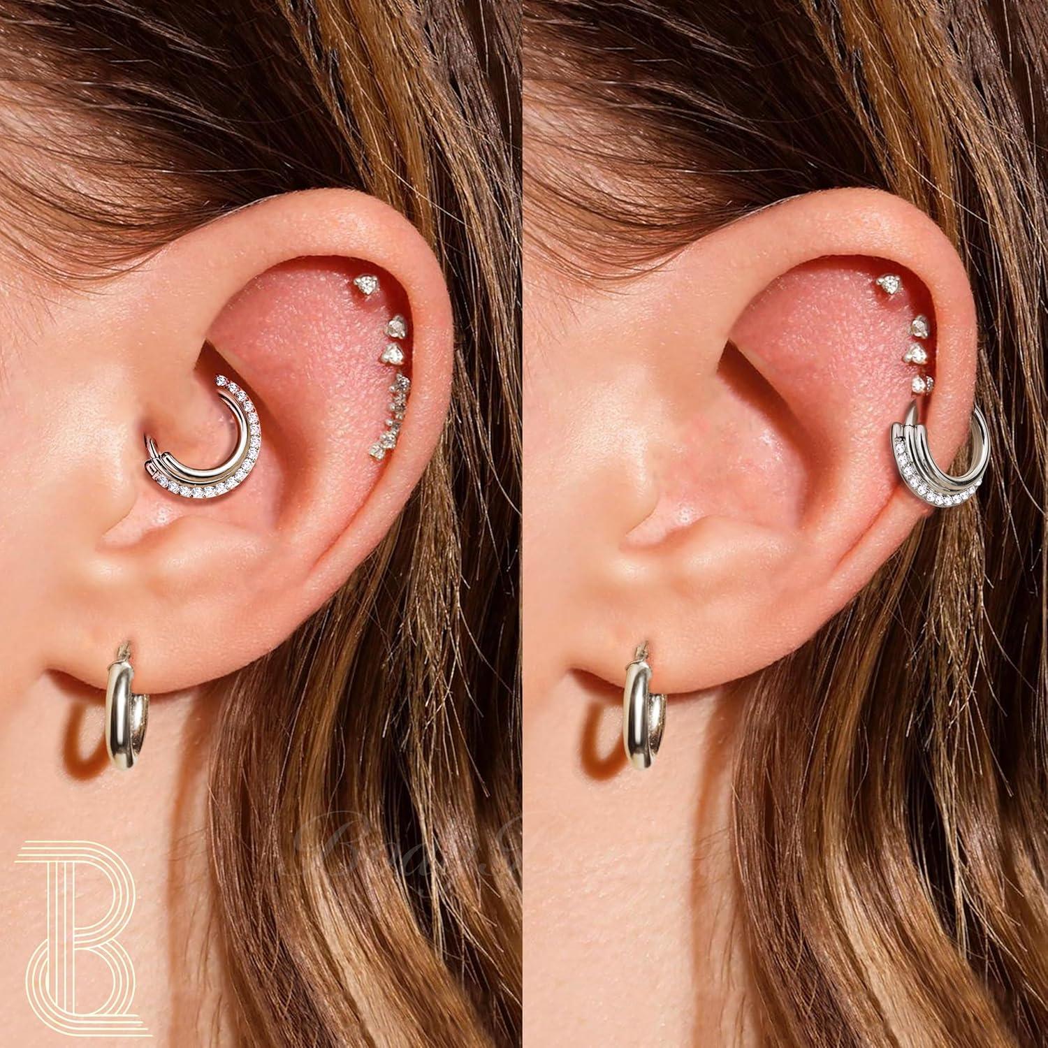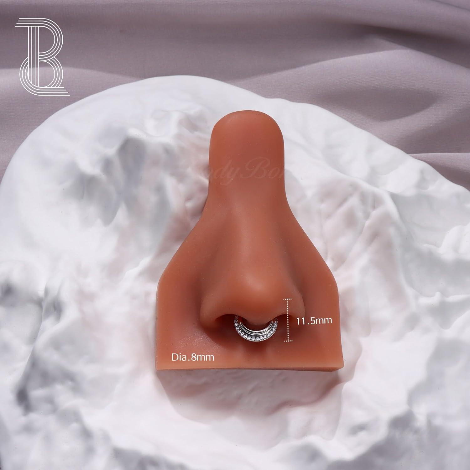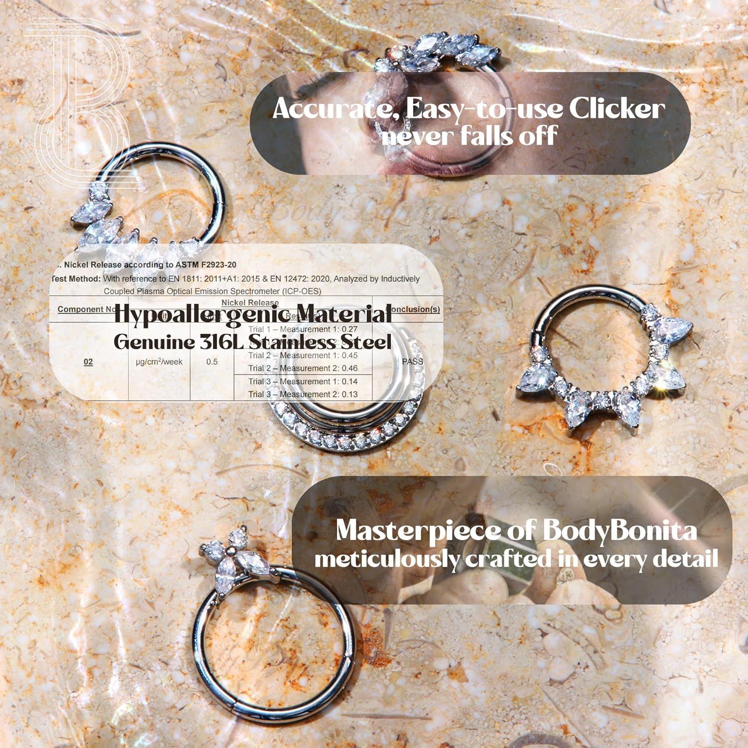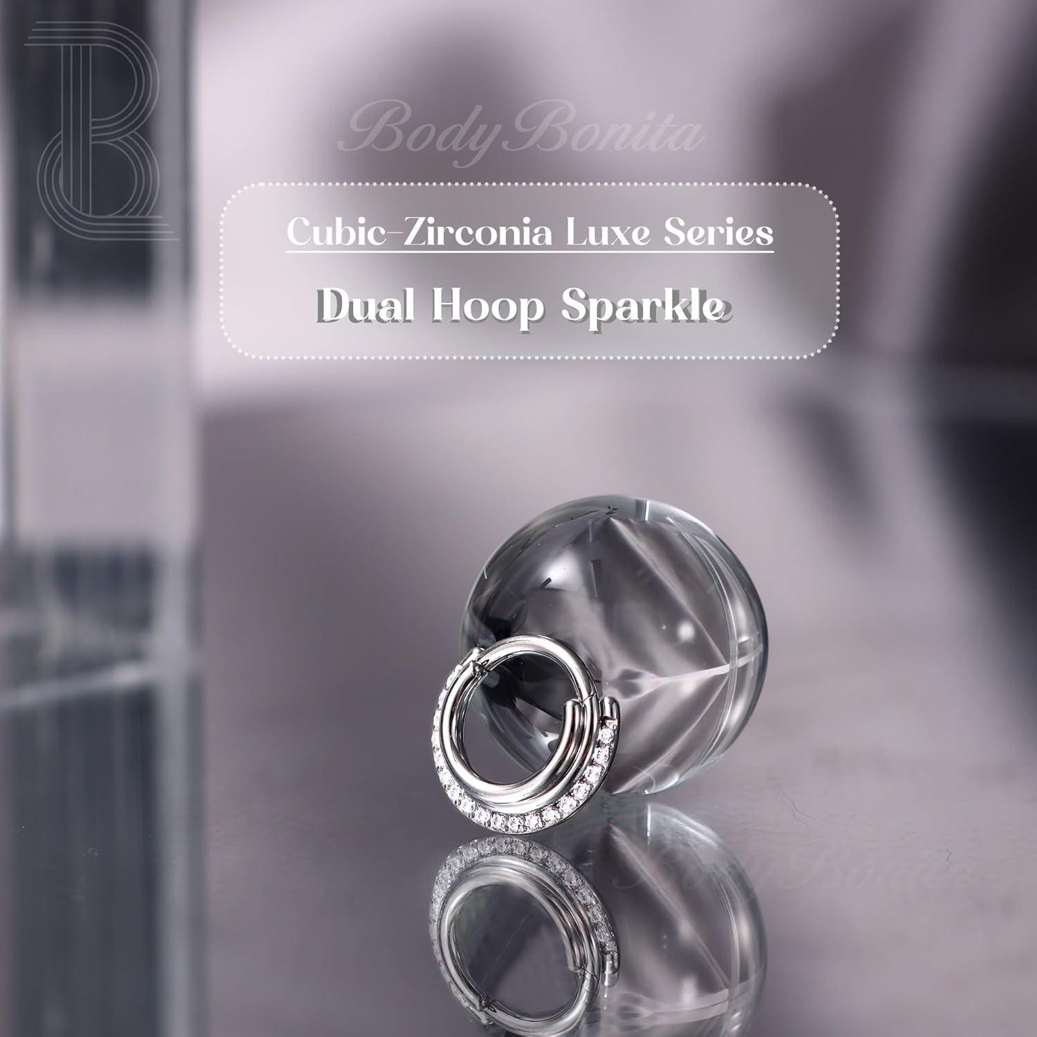 BodyBonita 16G Septum Rings Jewelry – Cubic Zirconia Luxe 316L Stainless Steel Hinged Nose Rings Hoops for Women Conch Piercing Jewelry Tragus Daith Helix Earring 14K Gold Plated/Silver 8 mm/10 mm(Dual Hoop Sparkle-Silver)