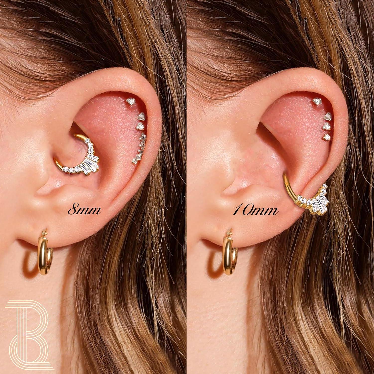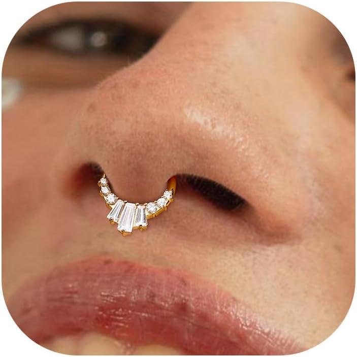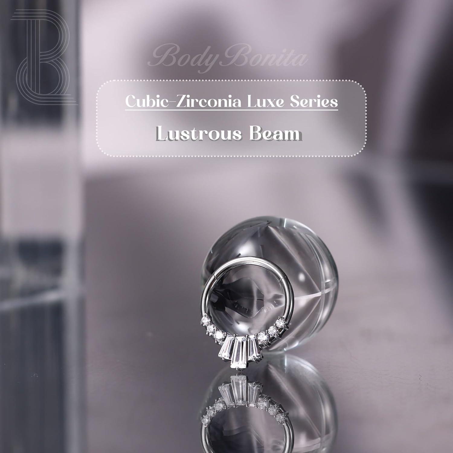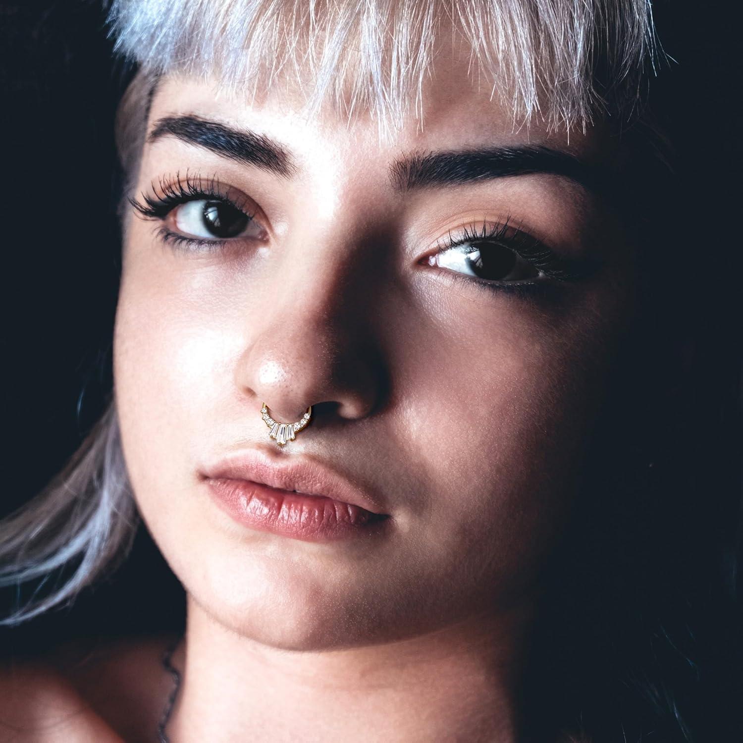 BodyBonita 16G Septum Rings Jewelry – Cubic Zirconia Luxe 316L Stainless Steel Hinged Nose Rings Hoops for Women Conch Piercing Jewelry Tragus Daith Helix Earring 14K Gold Plated/Silver 8 mm/10 mm(Lustrous Beam-Gold/Silver)
