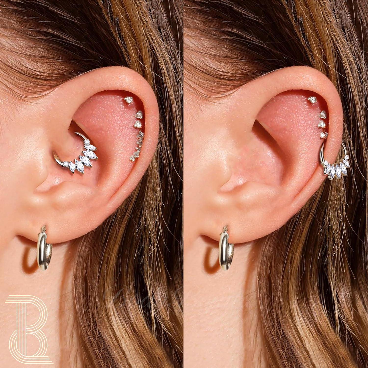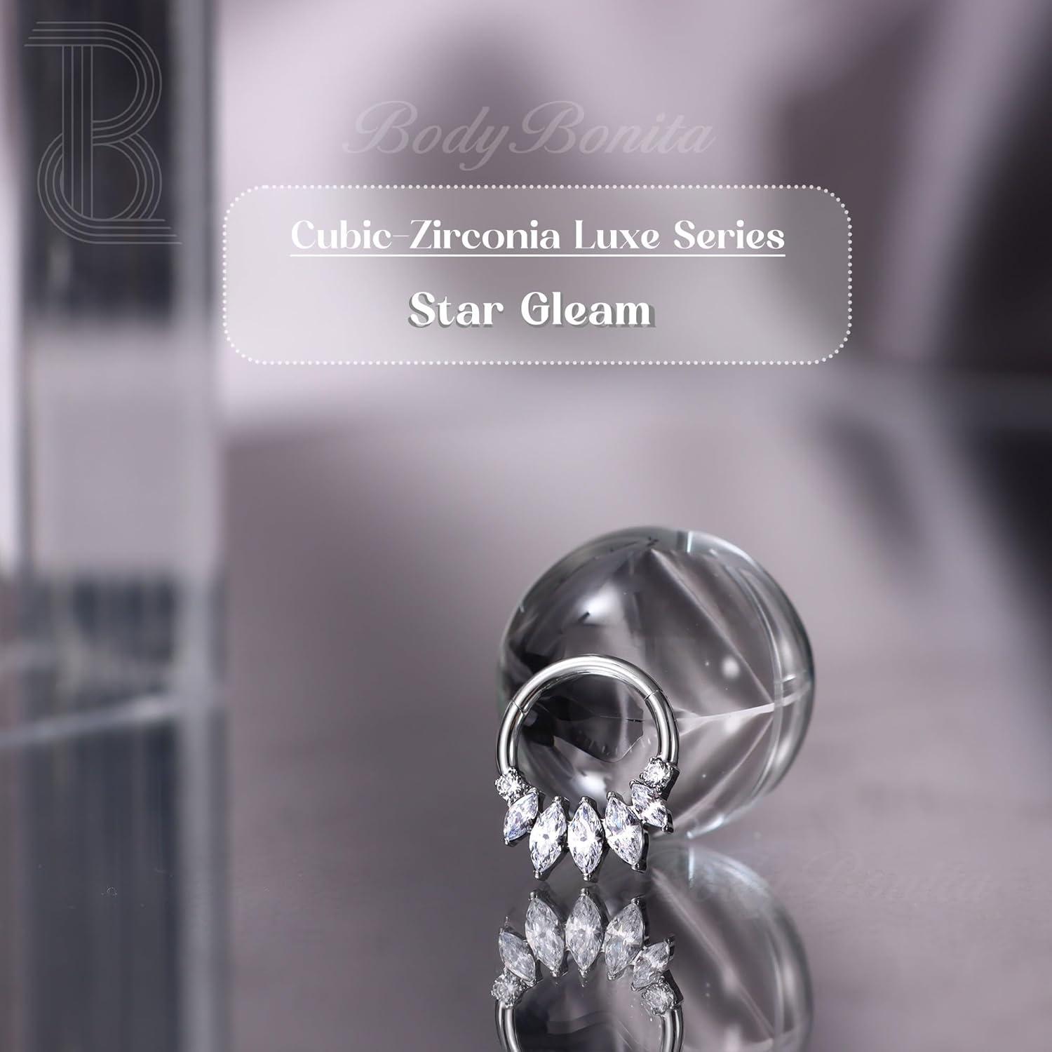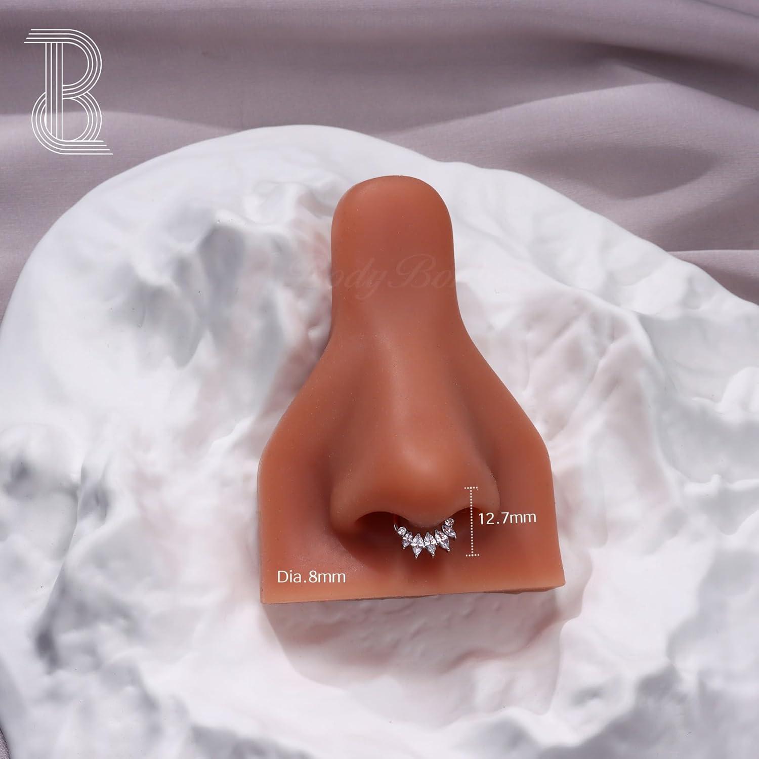 BodyBonita 16G Septum Rings Jewelry – Cubic Zirconia Luxe 316L Stainless Steel Hinged Nose Rings Hoops for Women Conch Piercing Jewelry Tragus Daith Helix Earring 14K Gold Plated/Silver 8 mm/10 mm(Star Gleam-Silver)