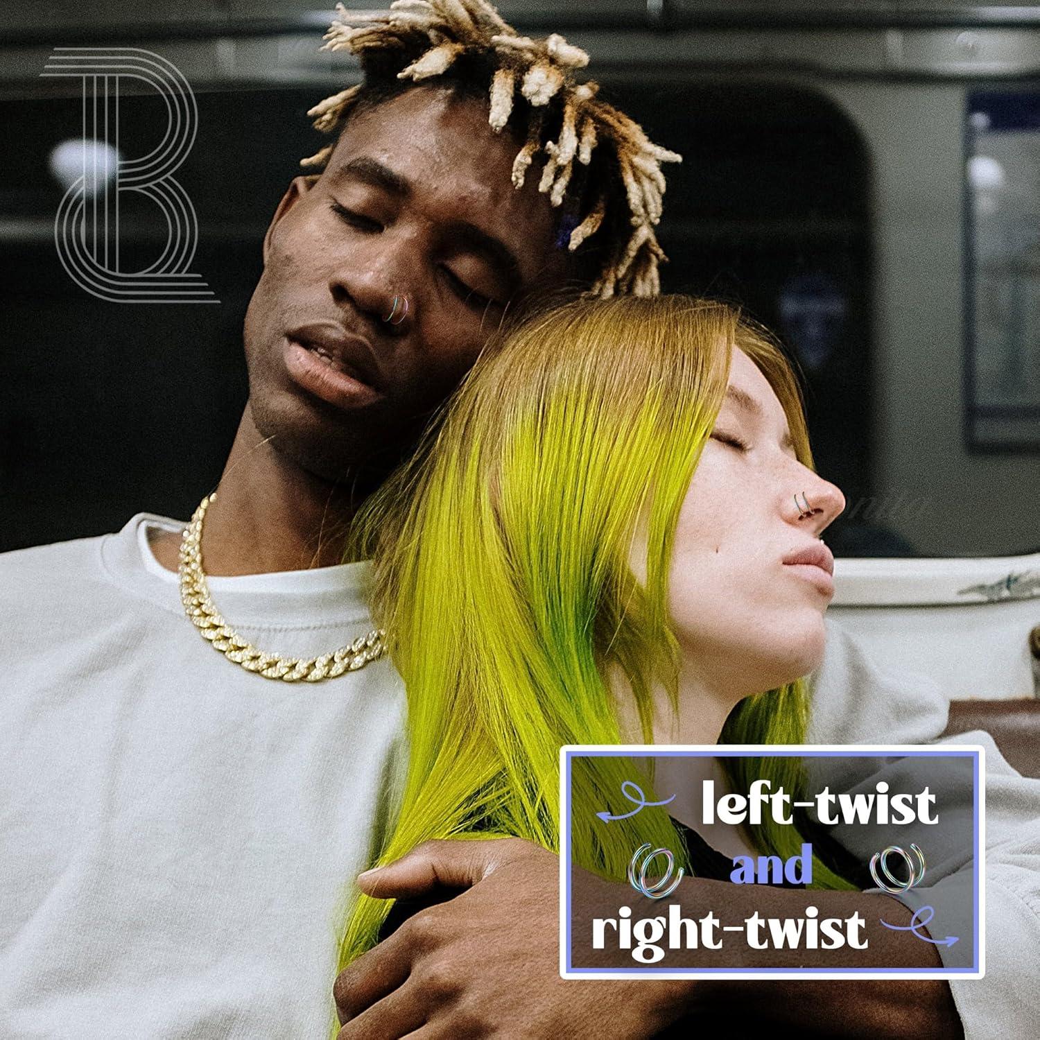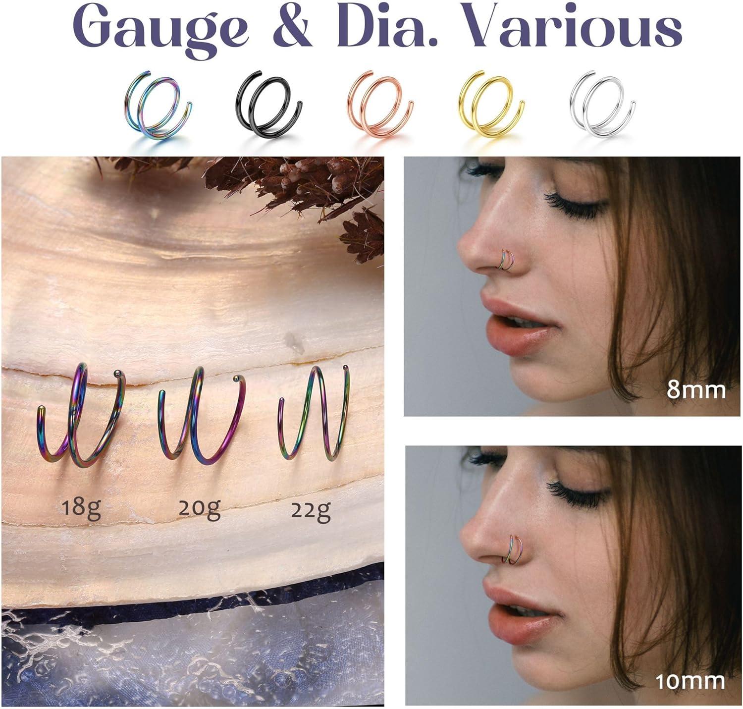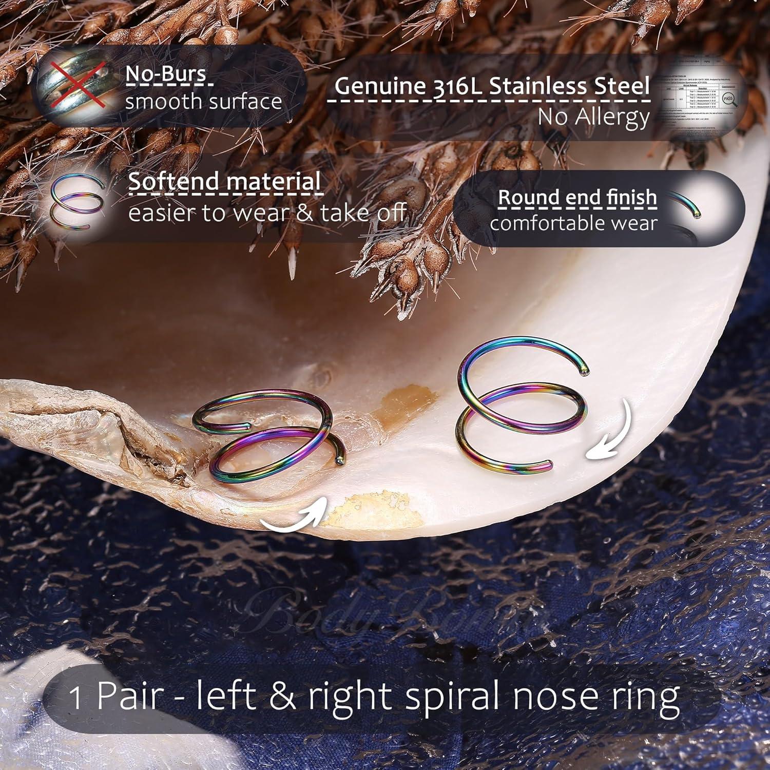 BodyBonita 2-8Pcs Softened 316L Stainless Steel Double Hoop Nose Ring for Single Piercing 22G 20G 18G Bendable Twist Spiral Nose Rings Hoops for Women 8mm 10 mm(1 pair-Rainbow)
