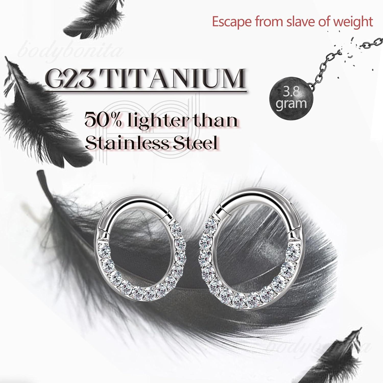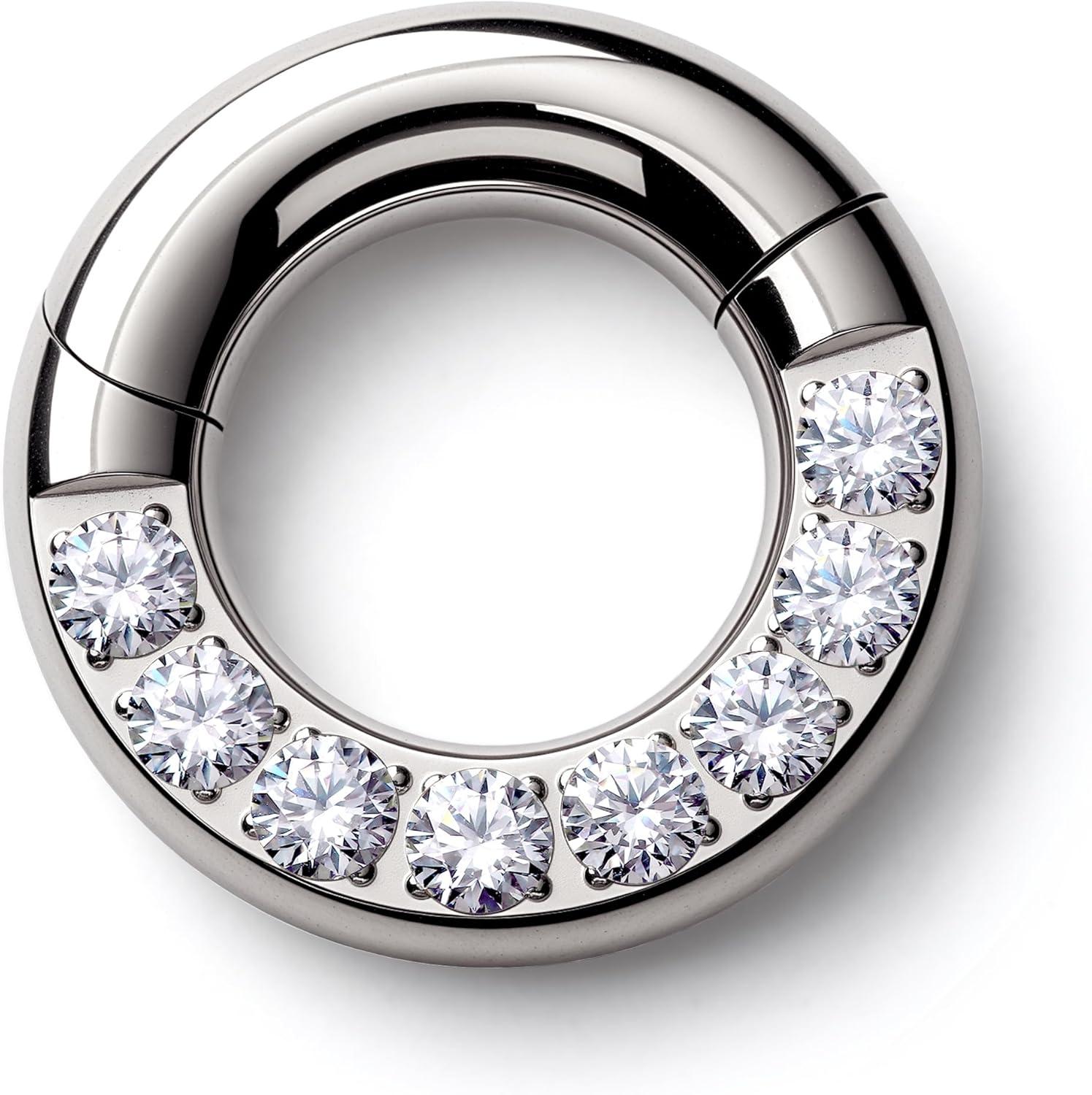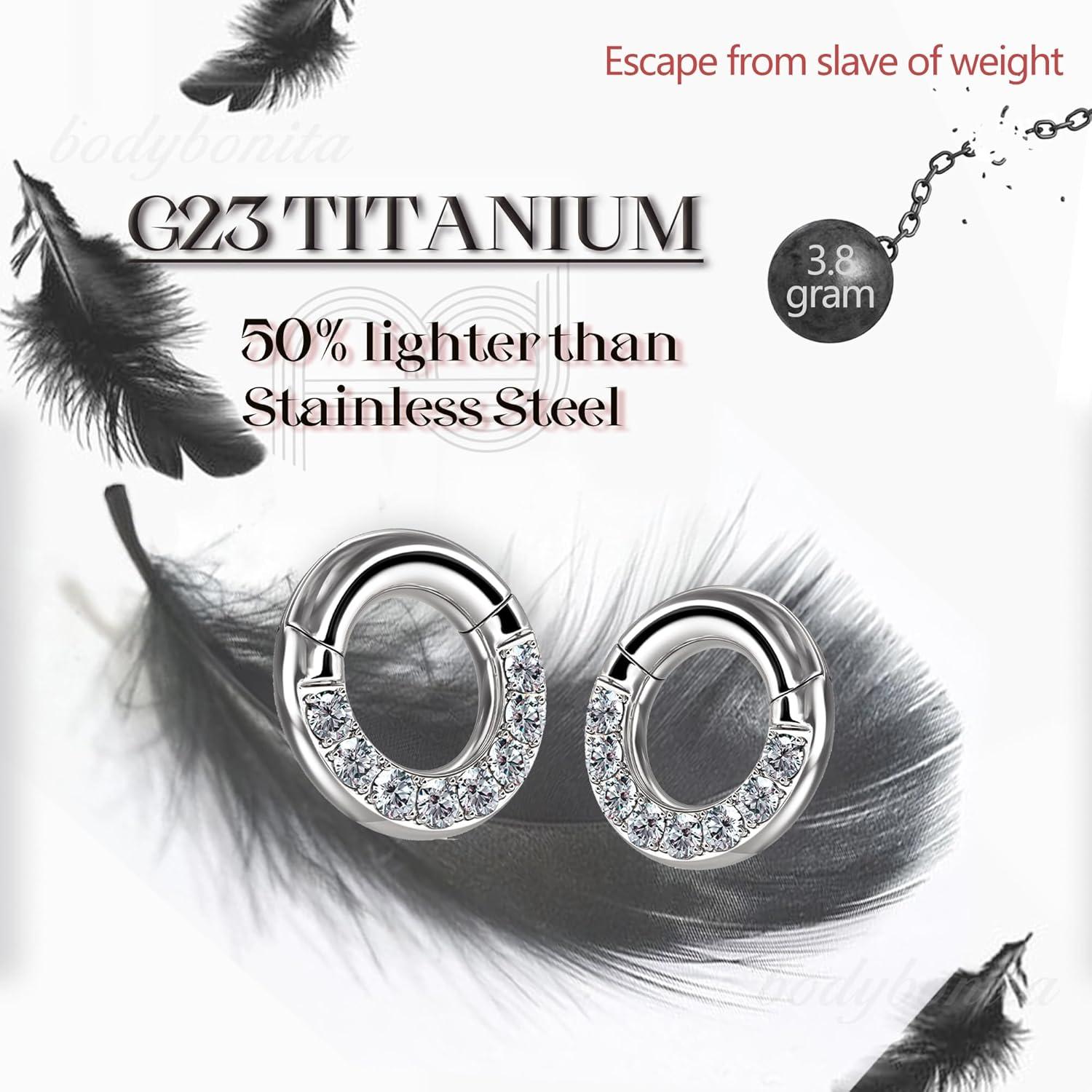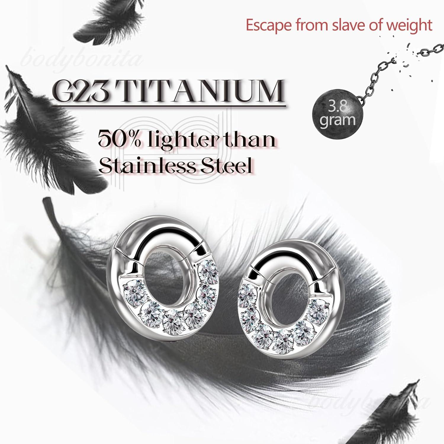 BodyBonita G23 Titanium 0G 2G 4G 6G 8G 10G 12G 14G CZ Septum Rings PA Nose Hoops Clicker Ear Weights for Stretched Ear Piercing Jewelry 10mm 12mm Silver/Gold/Black(Silver)