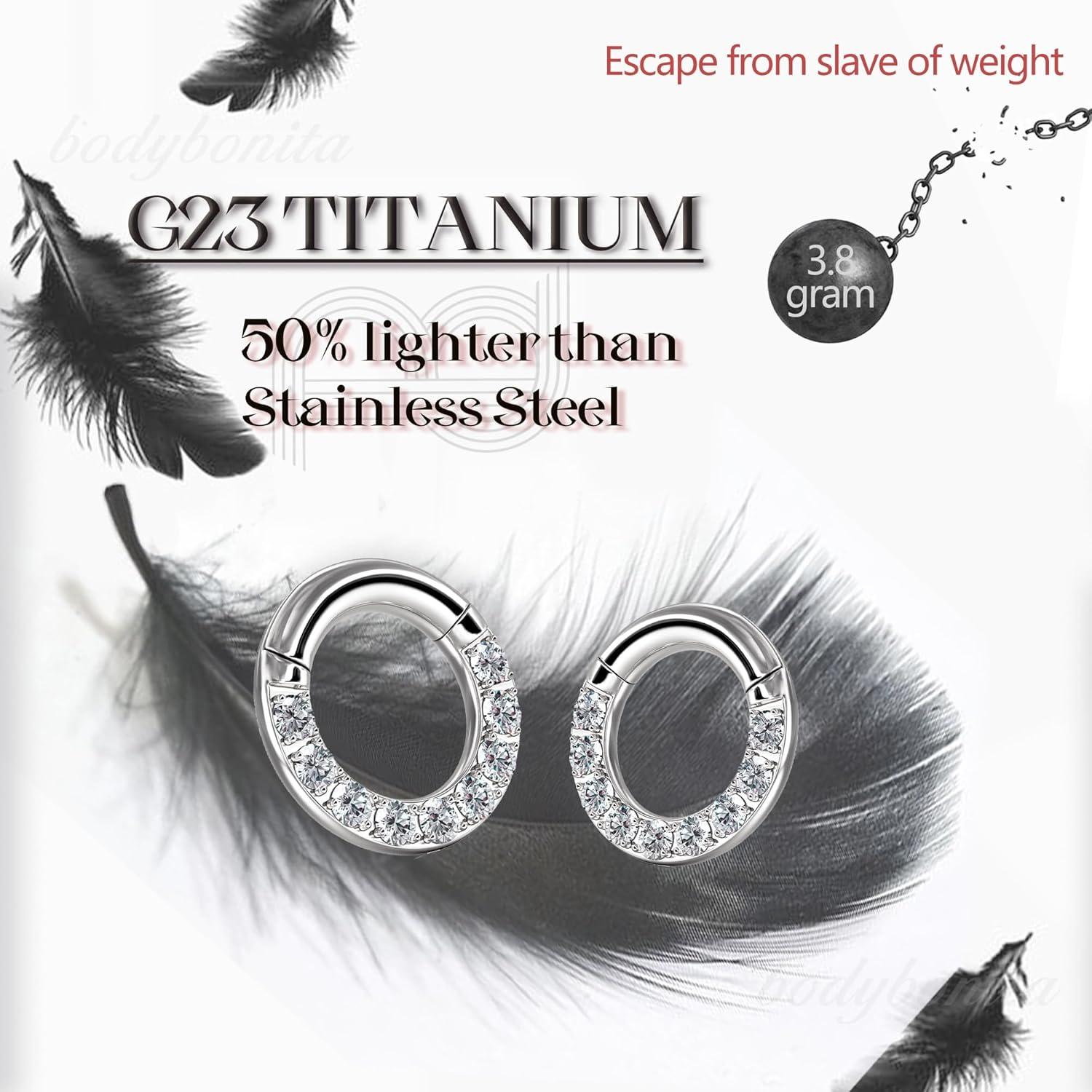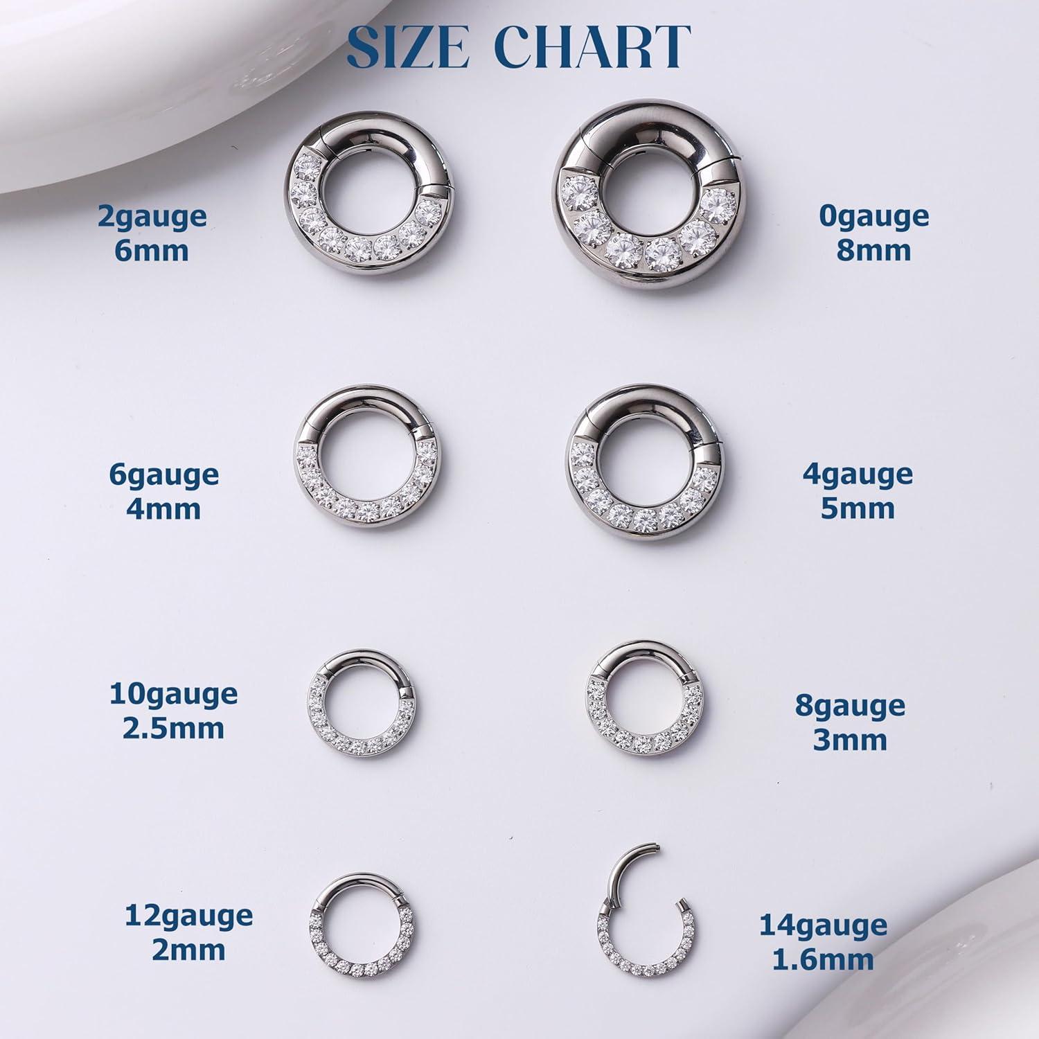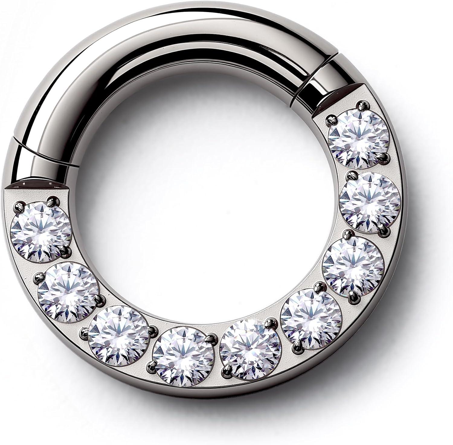 BodyBonita G23 Titanium 0G 2G 4G 6G 8G 10G 12G 14G CZ Septum Rings PA Nose Hoops Clicker Ear Weights for Stretched Ear Piercing Jewelry 10mm 12mm Silver/Gold/Black(Silver)