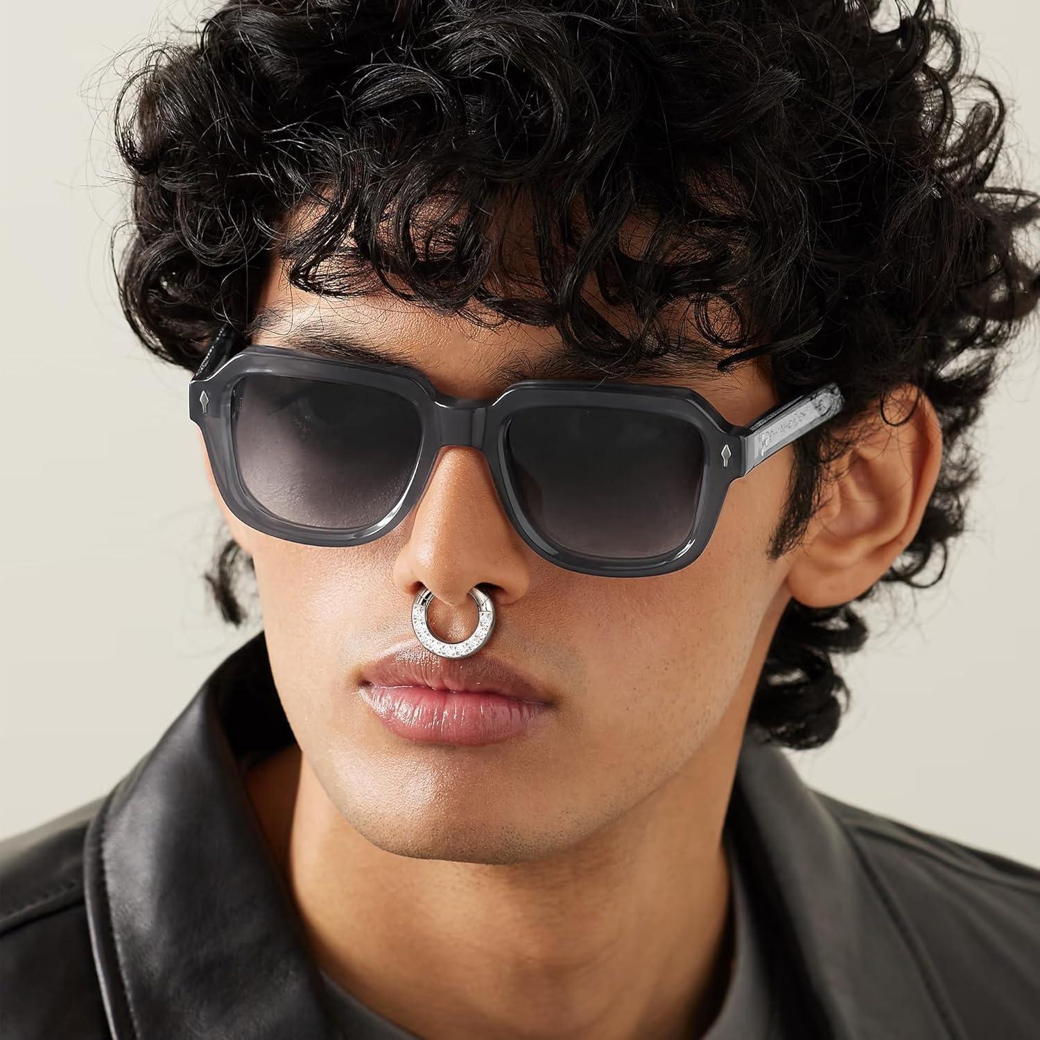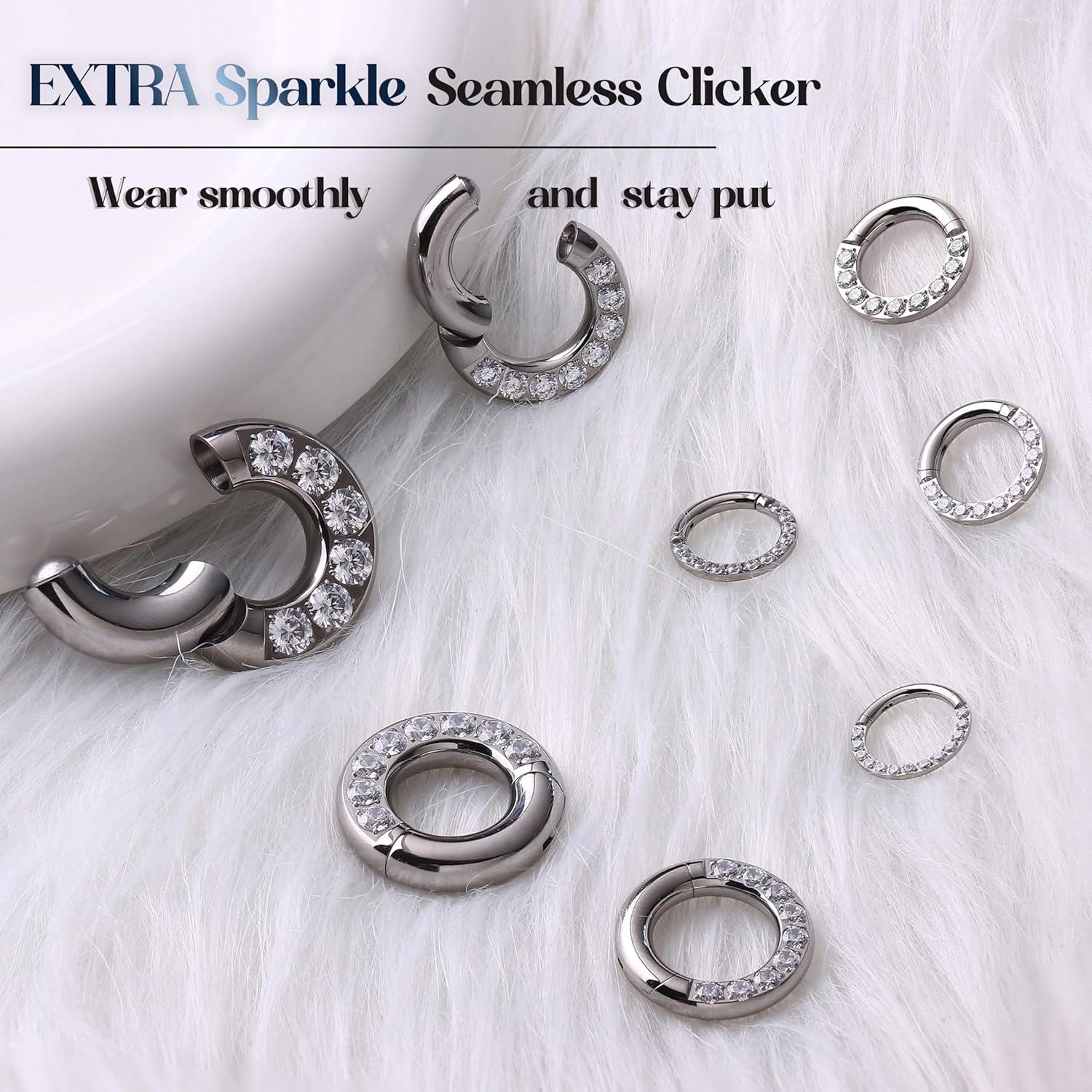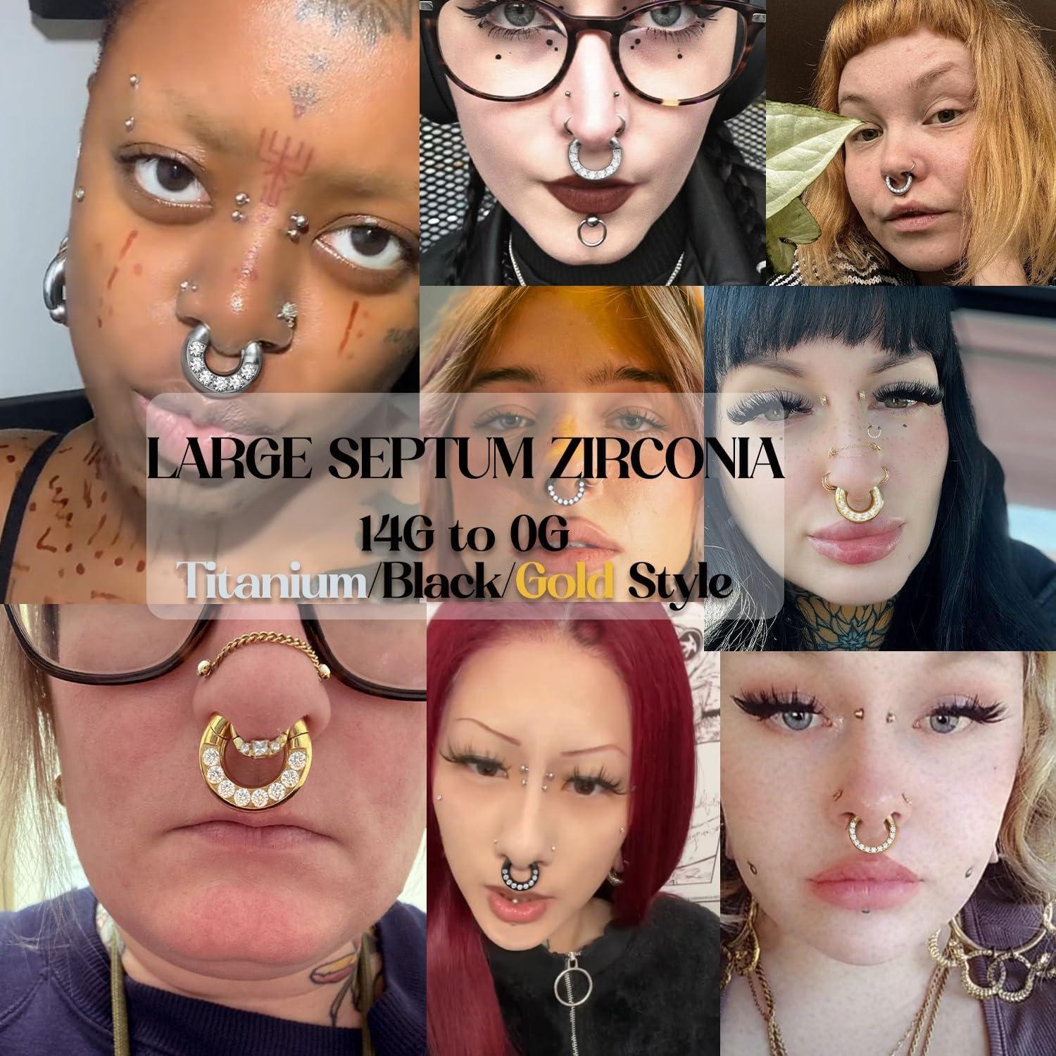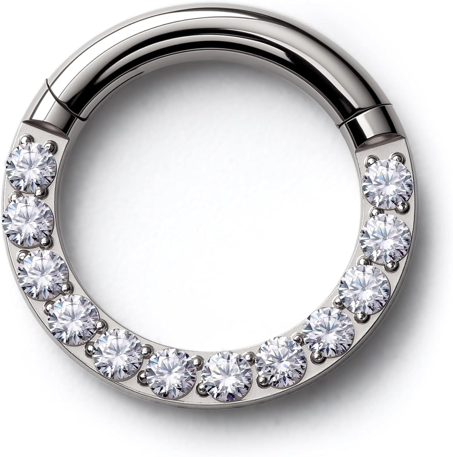 BodyBonita G23 Titanium 0G 2G 4G 6G 8G 10G 12G 14G CZ Septum Rings PA Nose Hoops Clicker Ear Weights for Stretched Ear Piercing Jewelry 10mm 12mm Silver/Gold/Black(Silver)