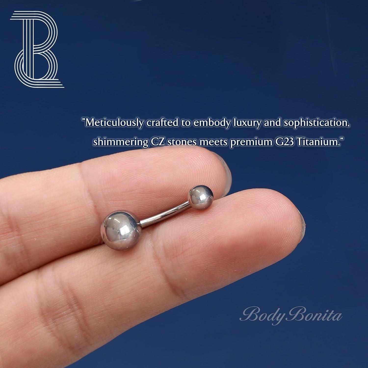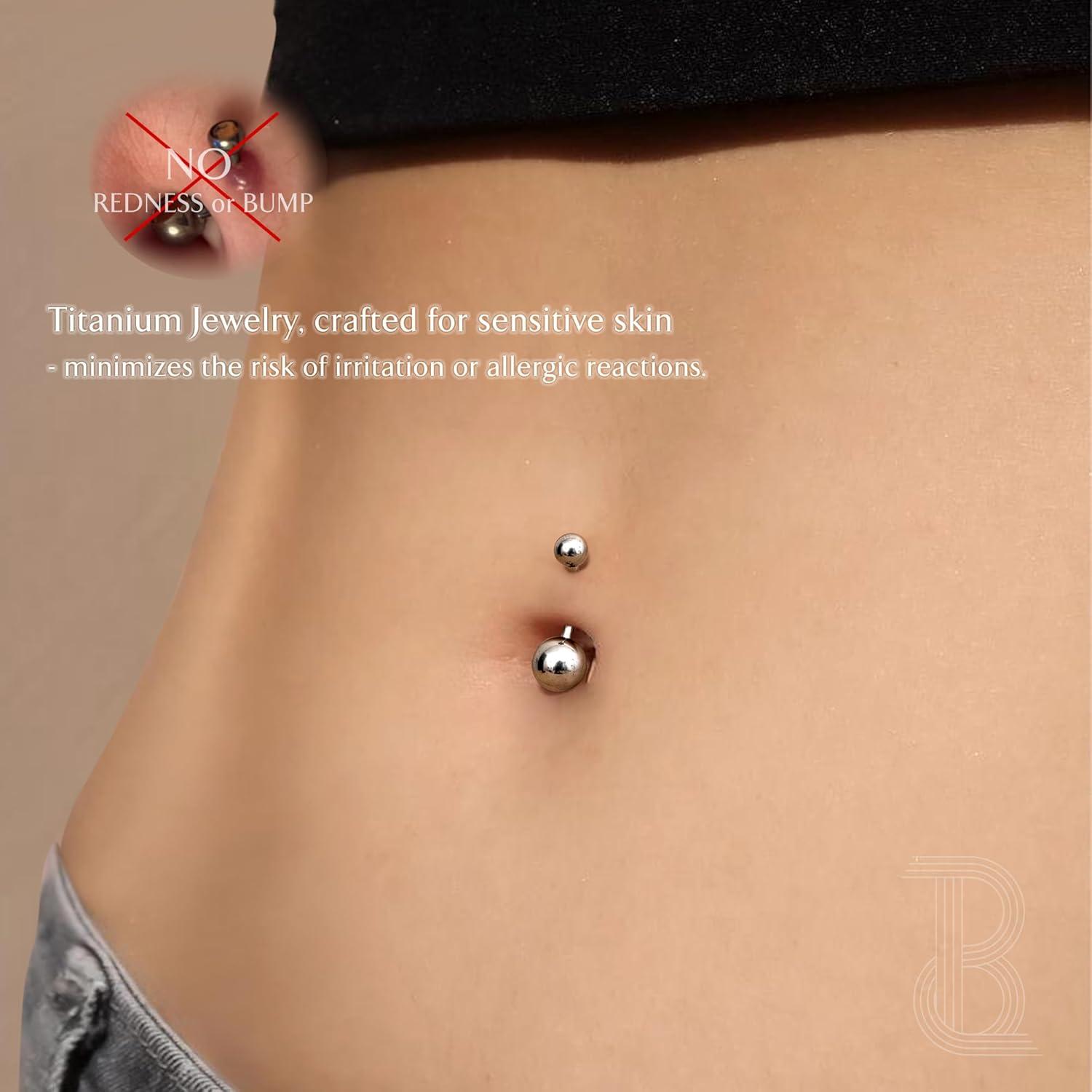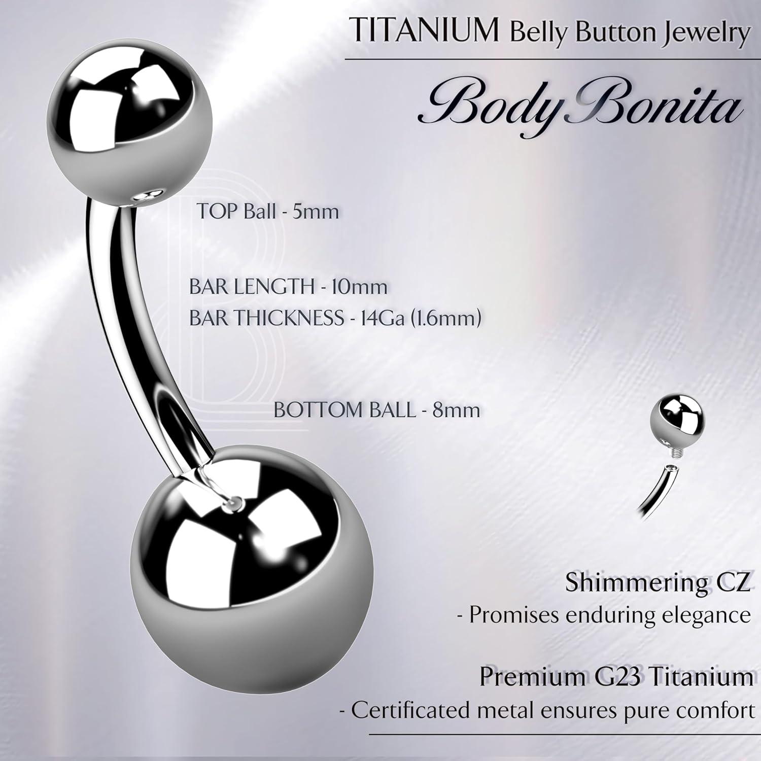 BodyBonita G23 Titanium Belly Button Rings – 14G Internally Threaded 14mm Belly Ring Round Square Star Teardrop CZ Navel Rings for Women(Ball-B)