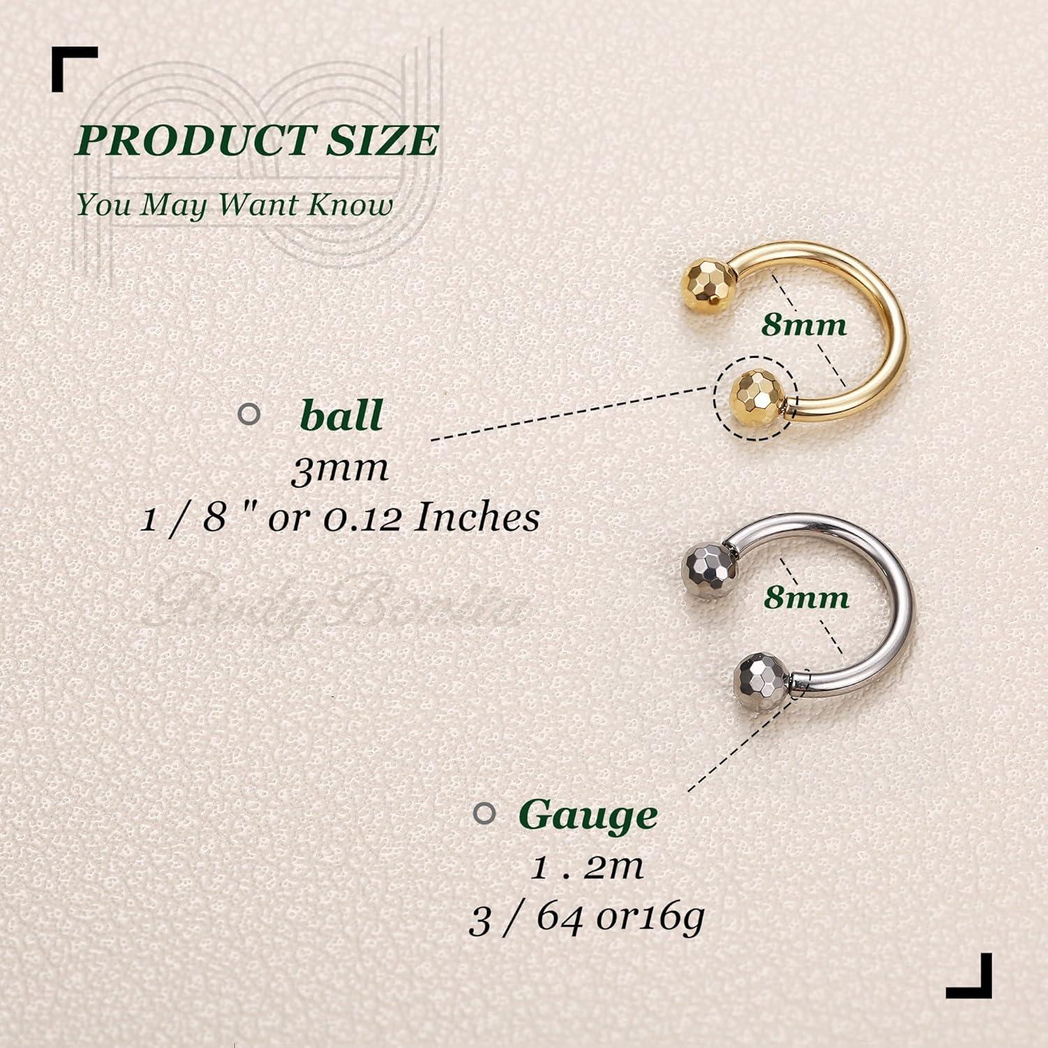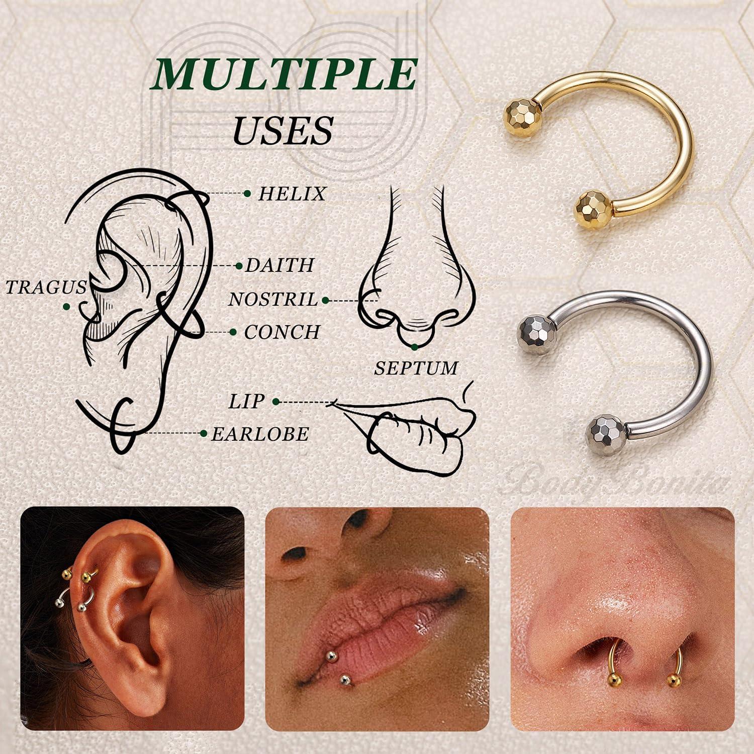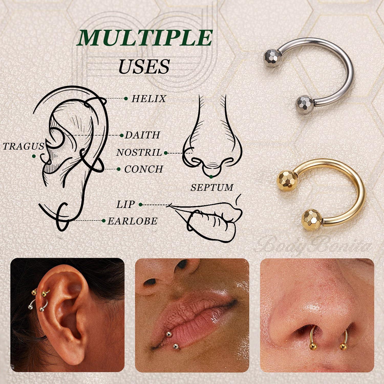 BodyBonita G23 Titanium Horseshoe Septum Rings – 2/3pcs Nose Rings Circular Barbell Spikes Septum Jewelry Nose Piercing Jewelry Conch Helix Rook Lip Cartilage Earring Men Gold Plated/Silver/Black(Gold and Silver-2pcs)