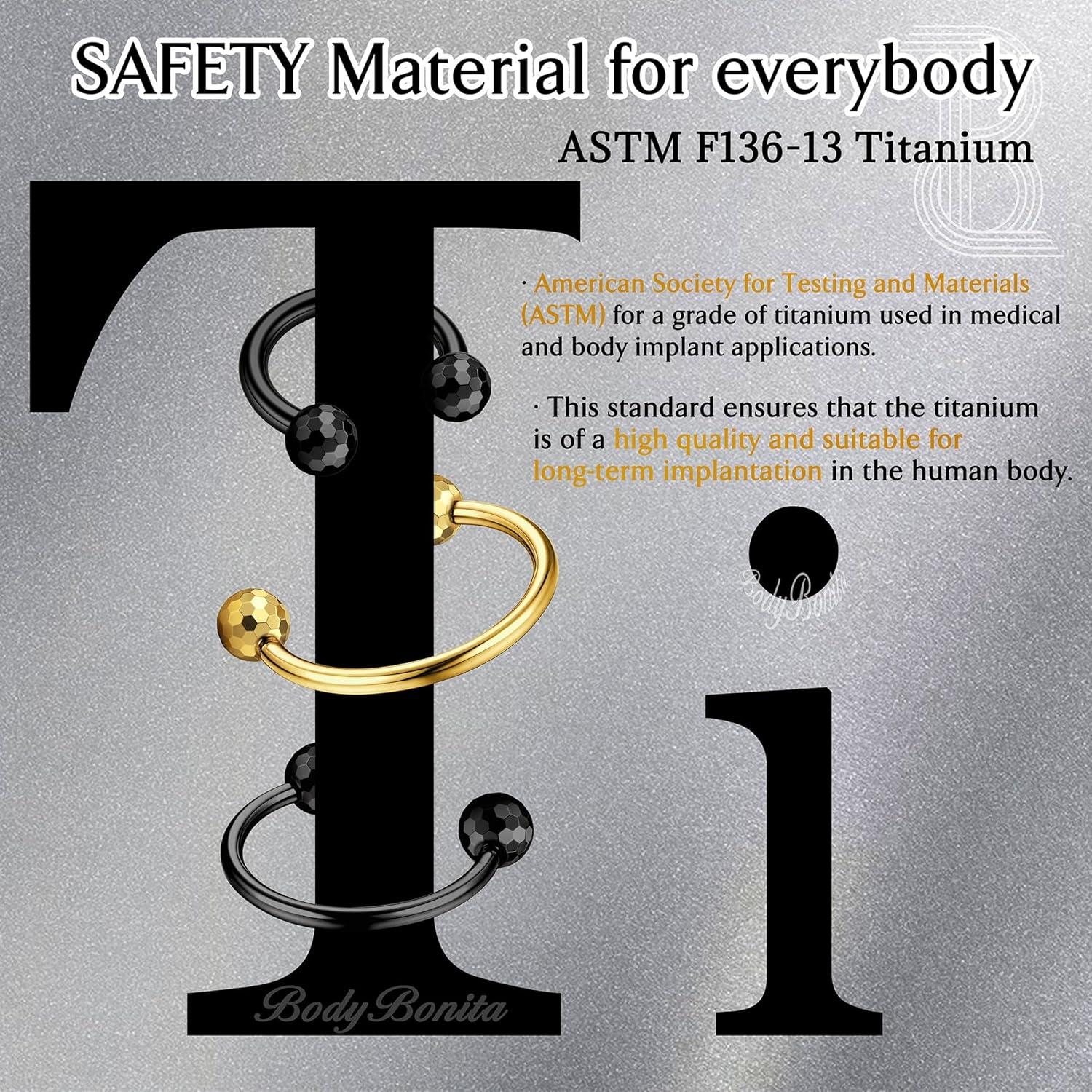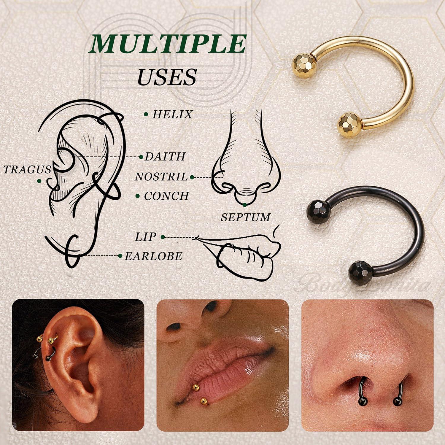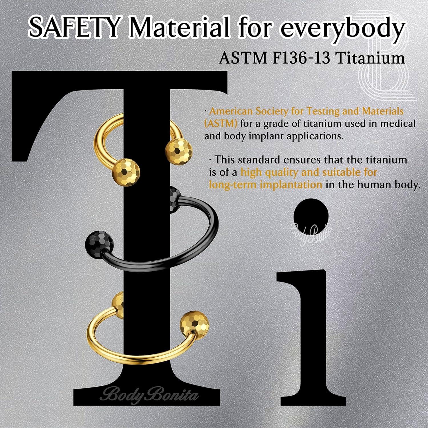 BodyBonita G23 Titanium Horseshoe Septum Rings – 2/3pcs Nose Rings Circular Barbell Spikes Septum Jewelry Nose Piercing Jewelry Conch Helix Rook Lip Cartilage Earring Men Gold Plated/Silver/Black(Gold and Black-2pcs)
