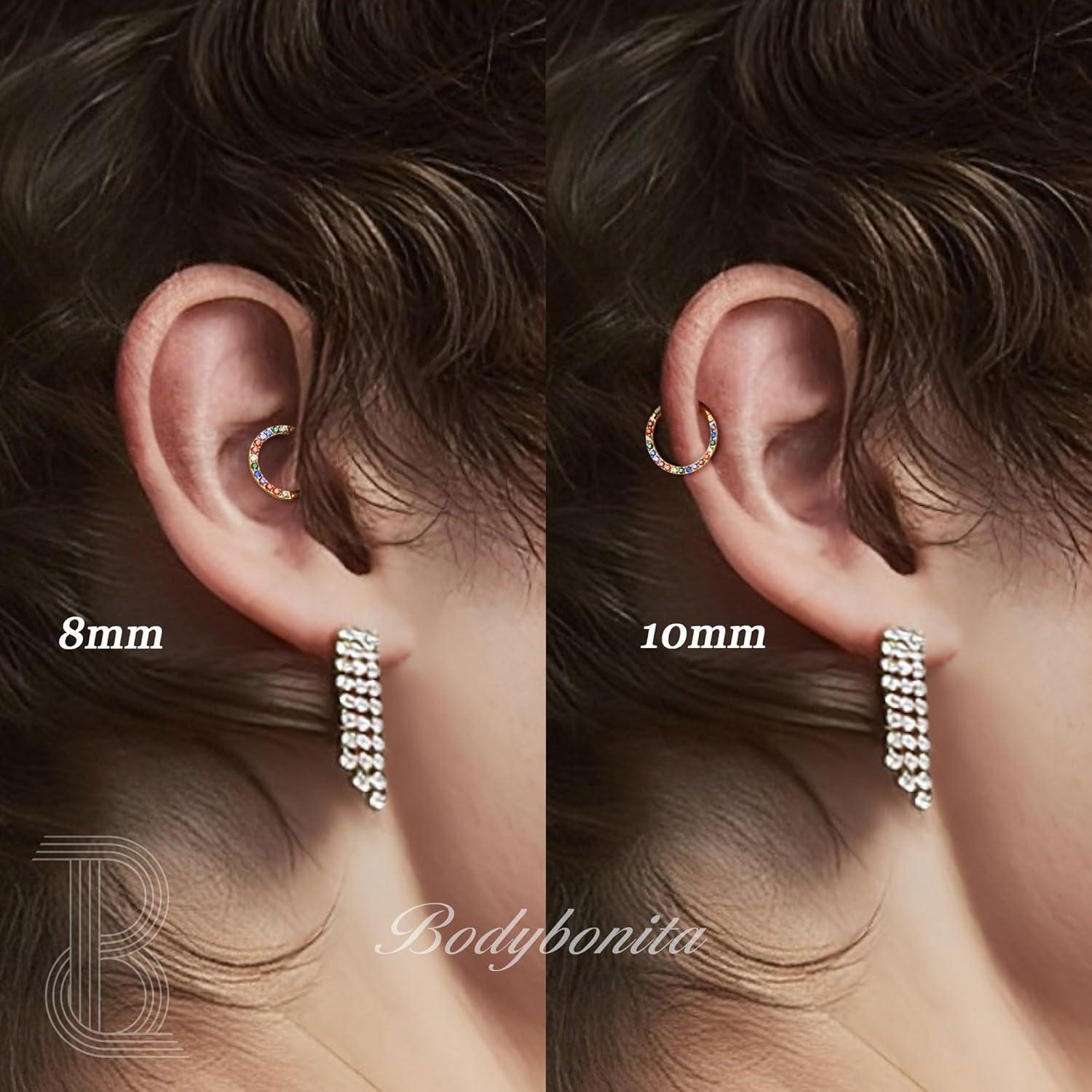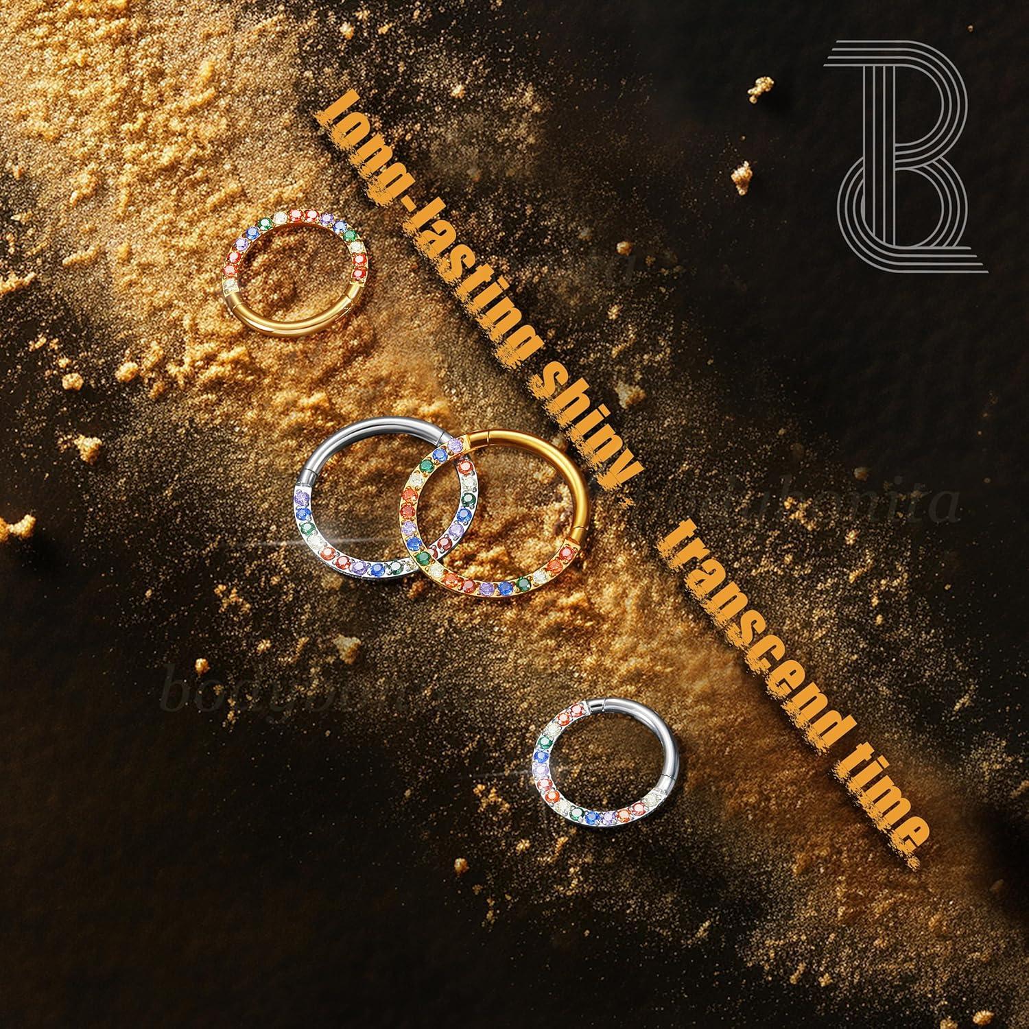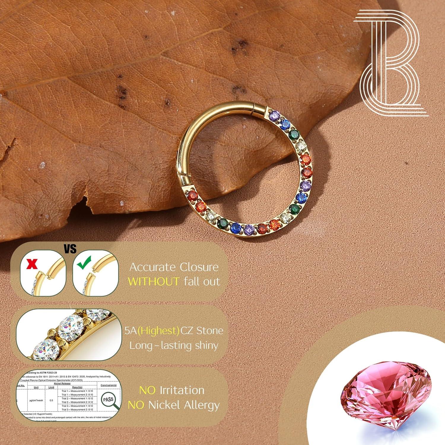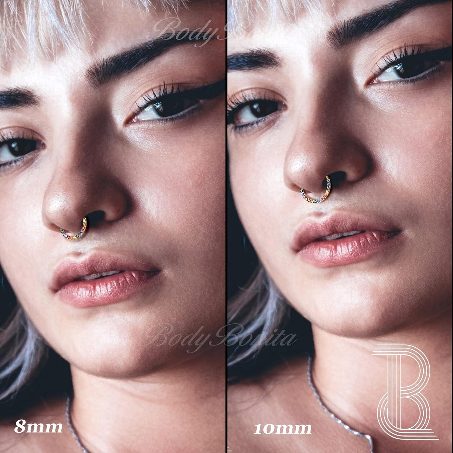 BodyBonita Hinged CZ Septum Rings – 316L Surgical Steel Nose Rings Hoops for Women 20G/18G/16G Cartilage Earrings Conch Piercing Jewelry Helix Rook Tragus Lobe Daith Snug Belly Button Ring 6mm-10mm(Gold Rainbow CZ(5A) 16G/18G)