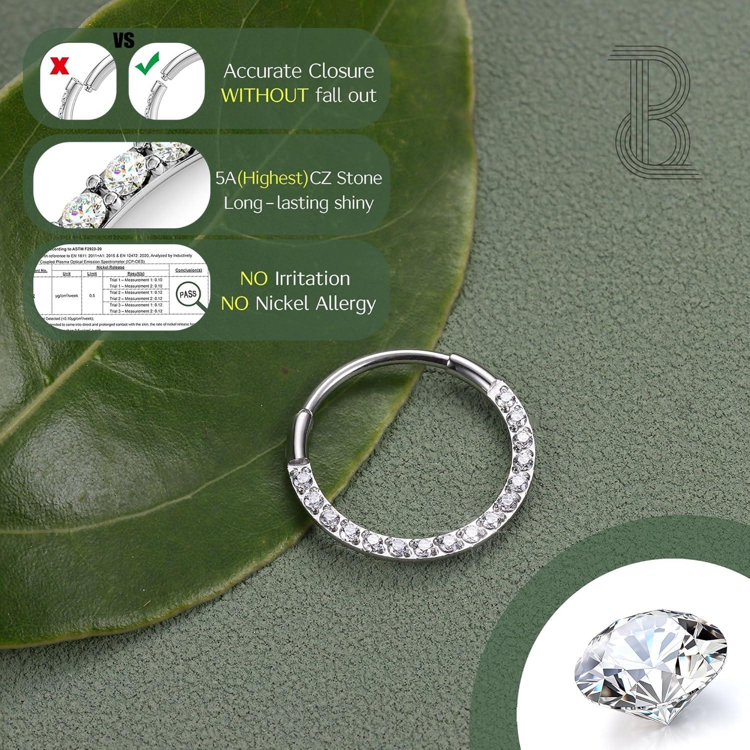 Be the first to review “BodyBonita Hinged CZ Septum Rings – 316L Surgical Steel Nose Rings Hoops for Women 20G/18G/16G Cartilage Earrings Conch Piercing Jewelry Helix Rook Tragus Lobe Daith Snug Belly Button Ring 6mm-10mm(Silver Clear CZ(5A) 20G)”
