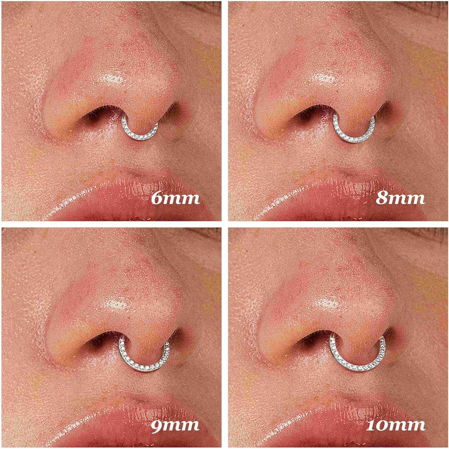 BodyBonita Hinged CZ Septum Rings – 316L Surgical Steel Nose Rings Hoops for Women 20G/18G/16G Cartilage Earrings Conch Piercing Jewelry Helix Rook Tragus Lobe Daith Snug Belly Button Ring 6mm-10mm(Silver Clear CZ(5A) 20G)