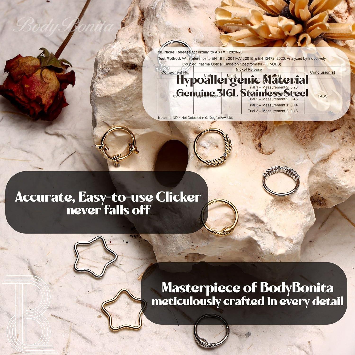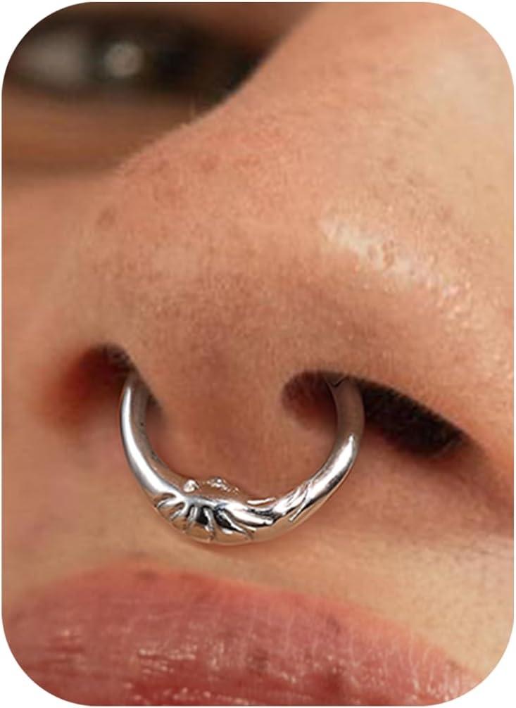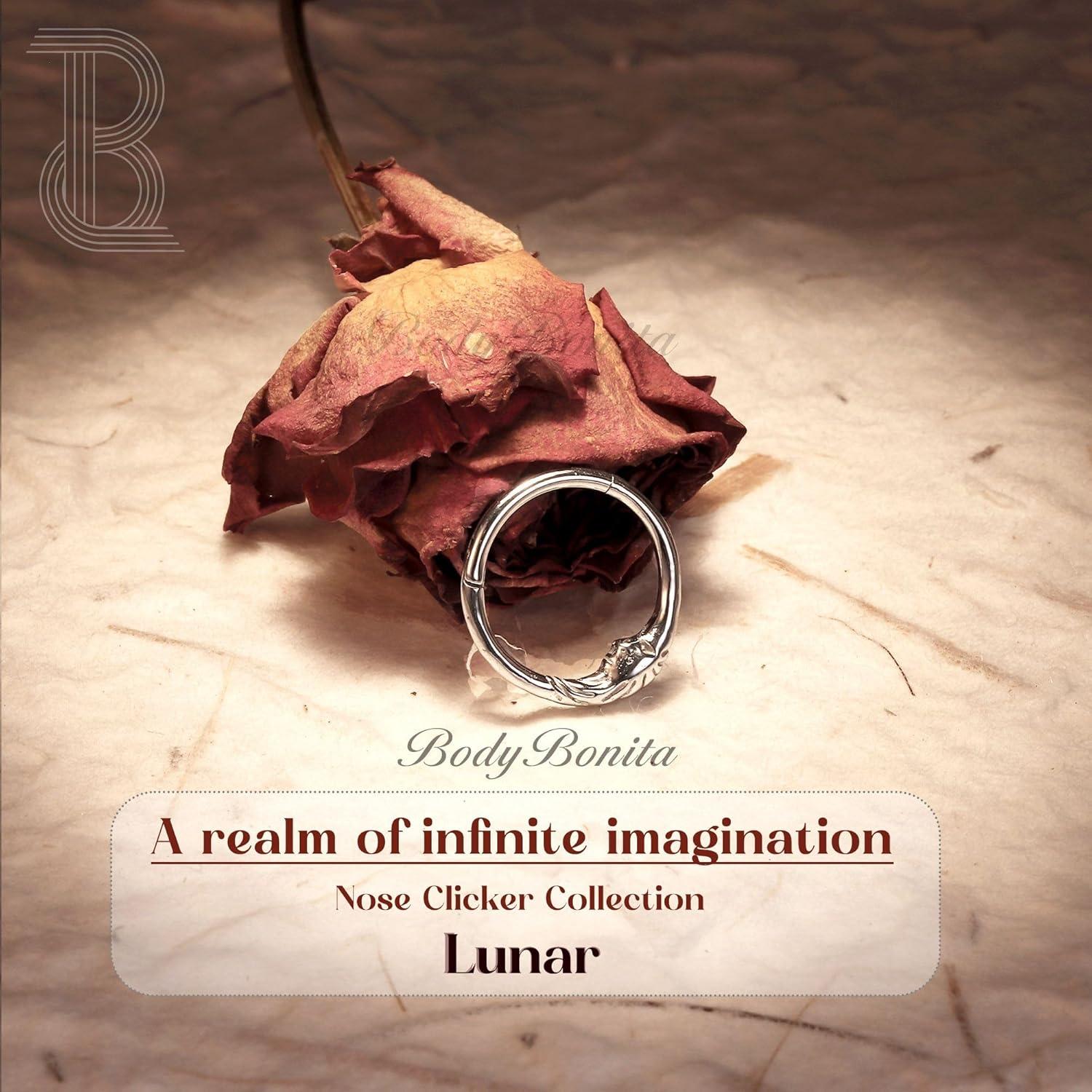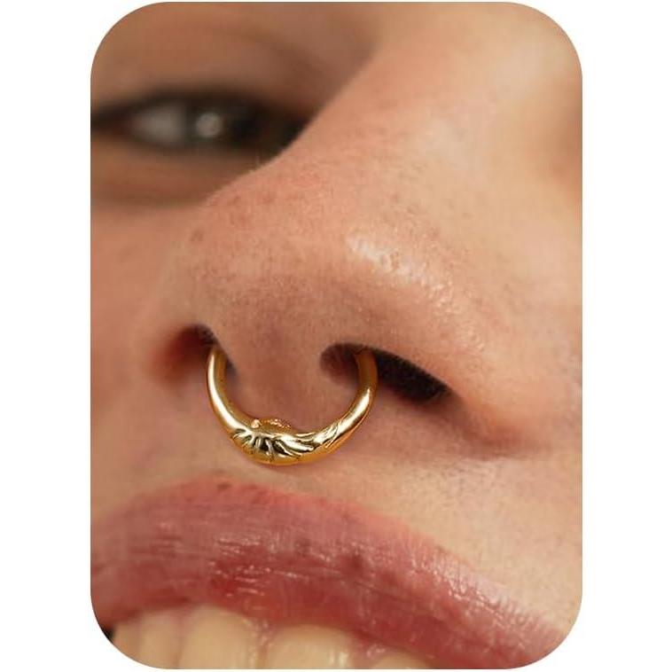 BodyBonita Septum Rings 16G – 316L Stainless Steel Nose Rings Hoops for Women Septum Piercing Jewelry 8mm 10mm(Lunar-Gold/Silver)