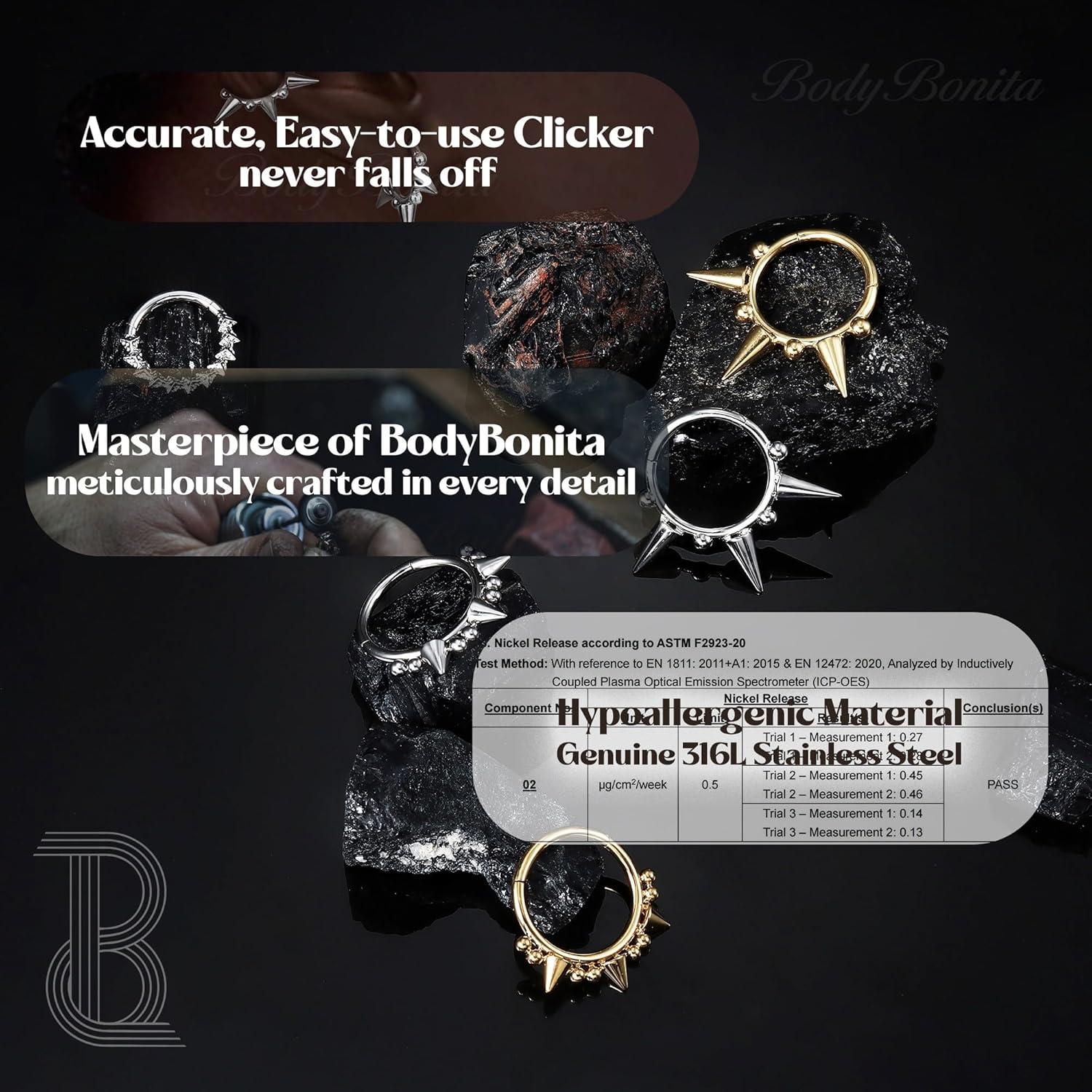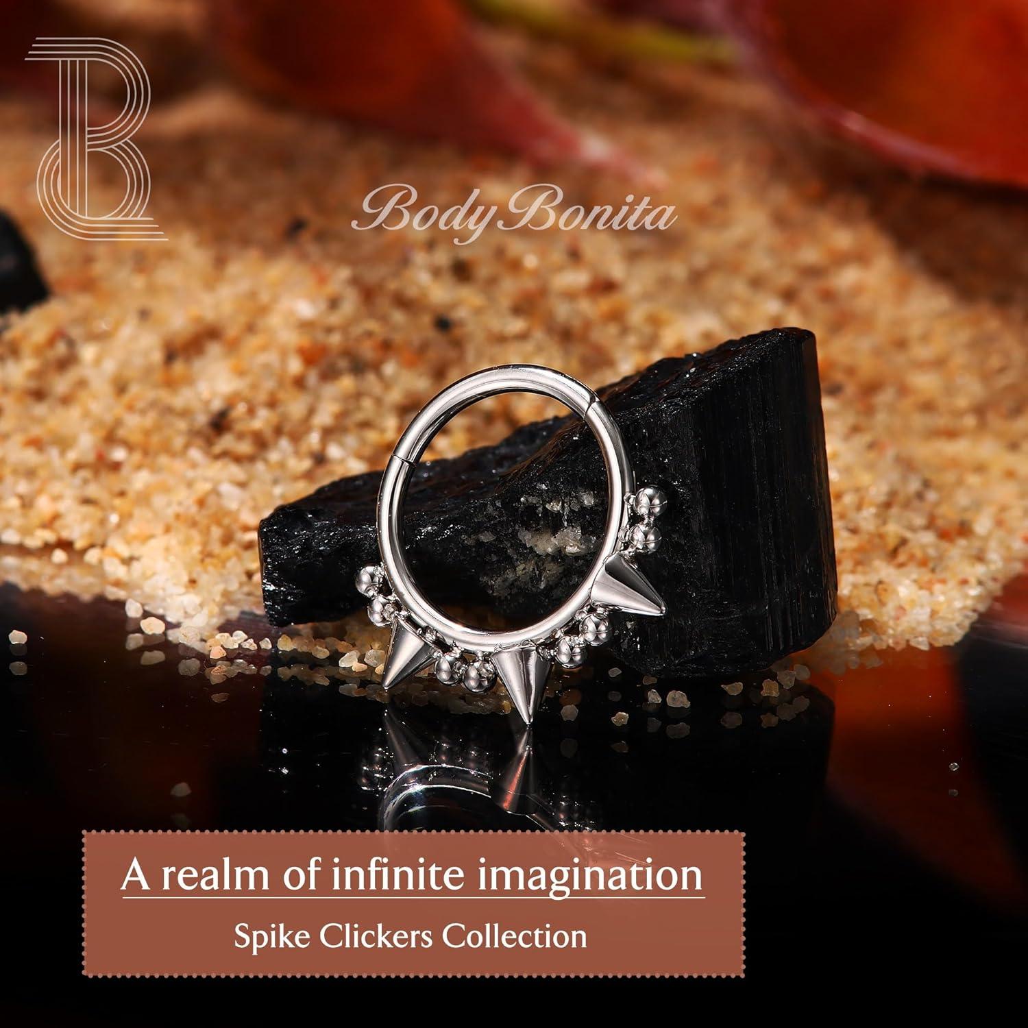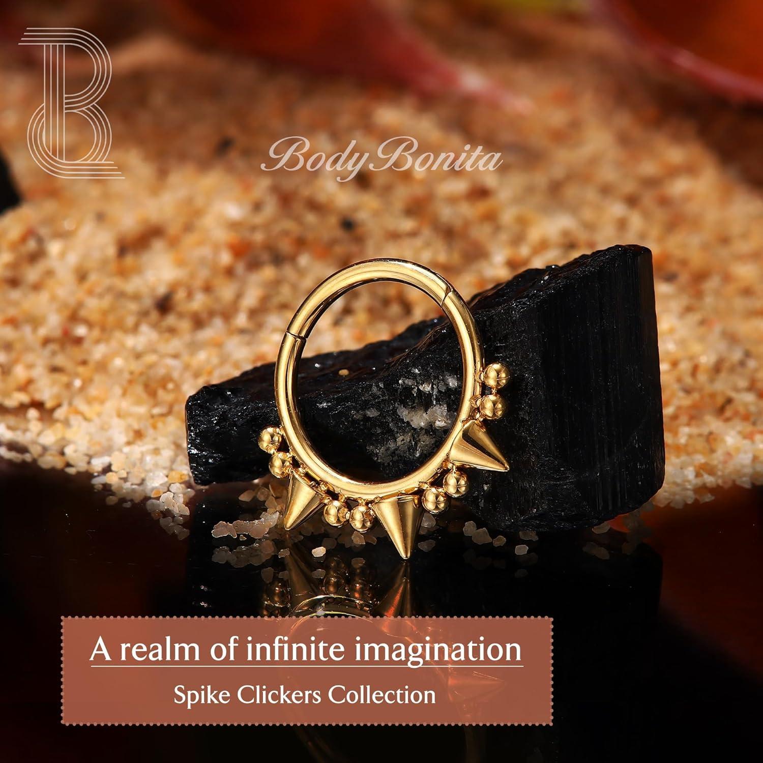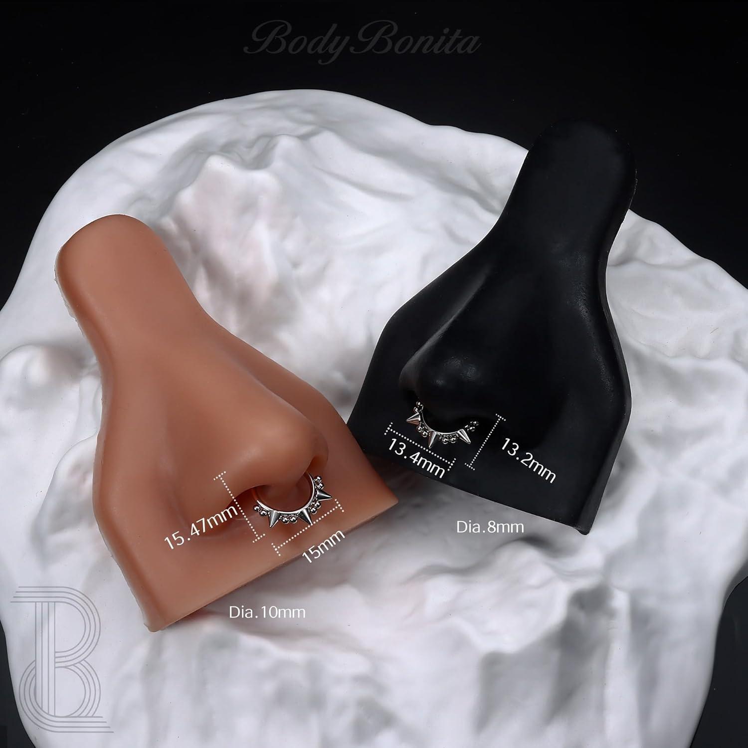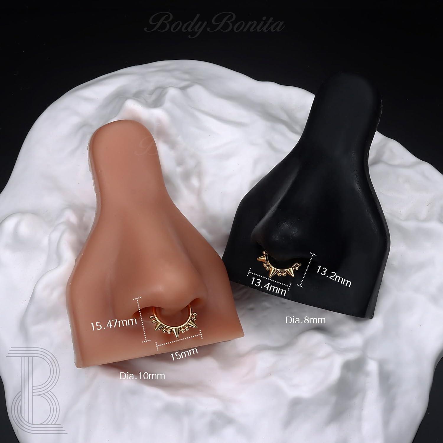 BodyBonita Spike 16G Septum Rings – 316L Stainless Steel Nose Rings Hoops for Women Men Helix Piercing Jewelry Tragus Daith Conch Cartilage Hoop Earring 14K Gold Plated/Silver 8 mm/10 mm(Style 10-Silver/Gold)