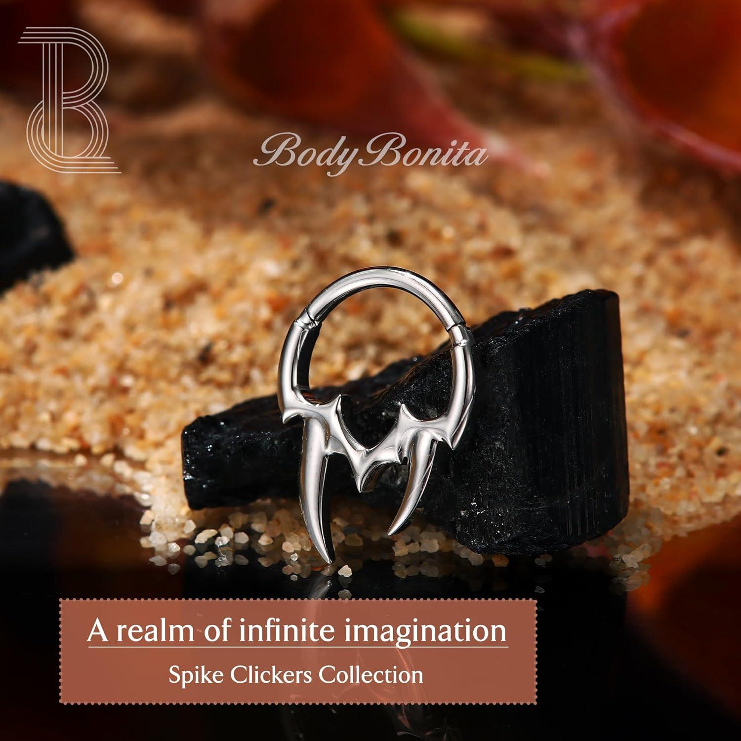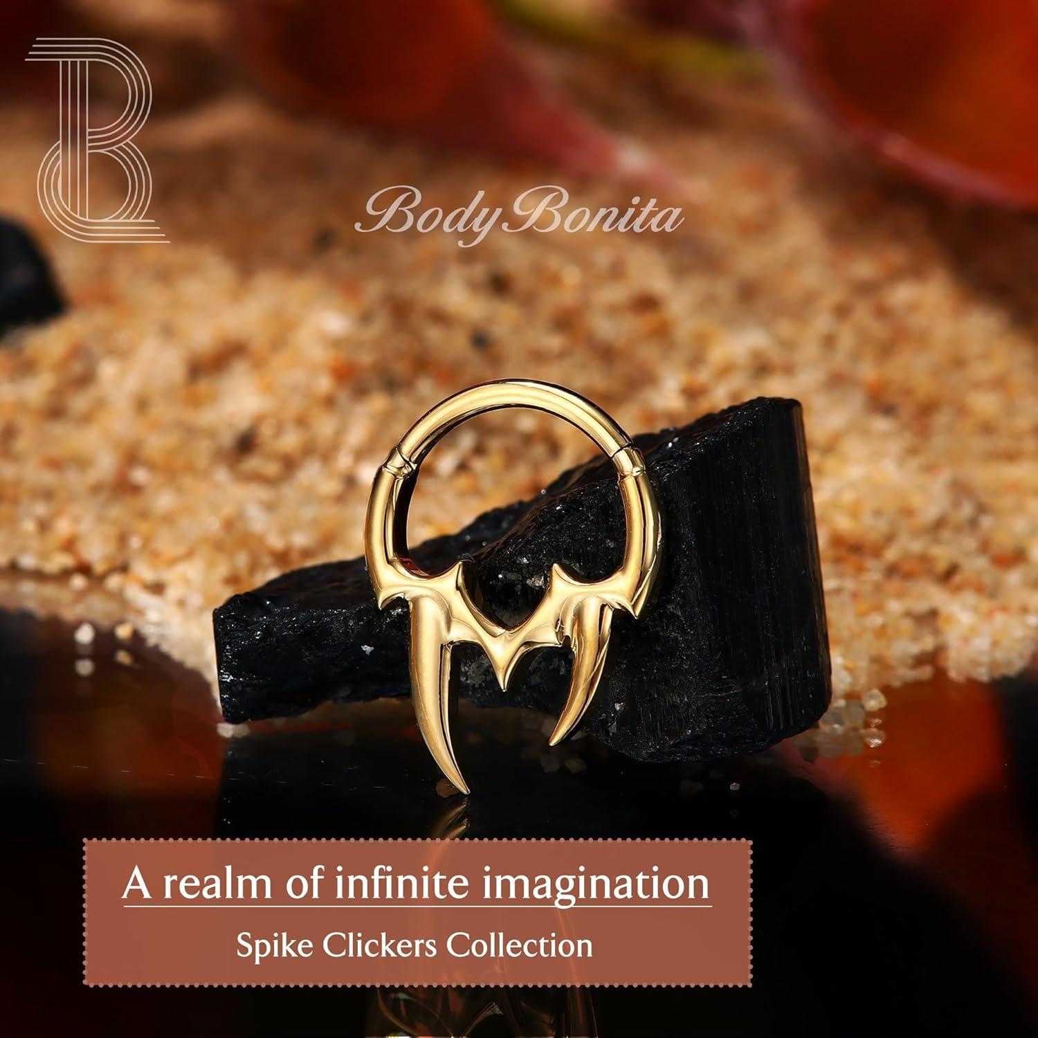 BodyBonita Spike 16G Septum Rings – 316L Stainless Steel Nose Rings Hoops for Women Men Helix Piercing Jewelry Tragus Daith Conch Cartilage Hoop Earring 14K Gold Plated/Silver 8 mm/10 mm(Style 2-Silver/Gold)