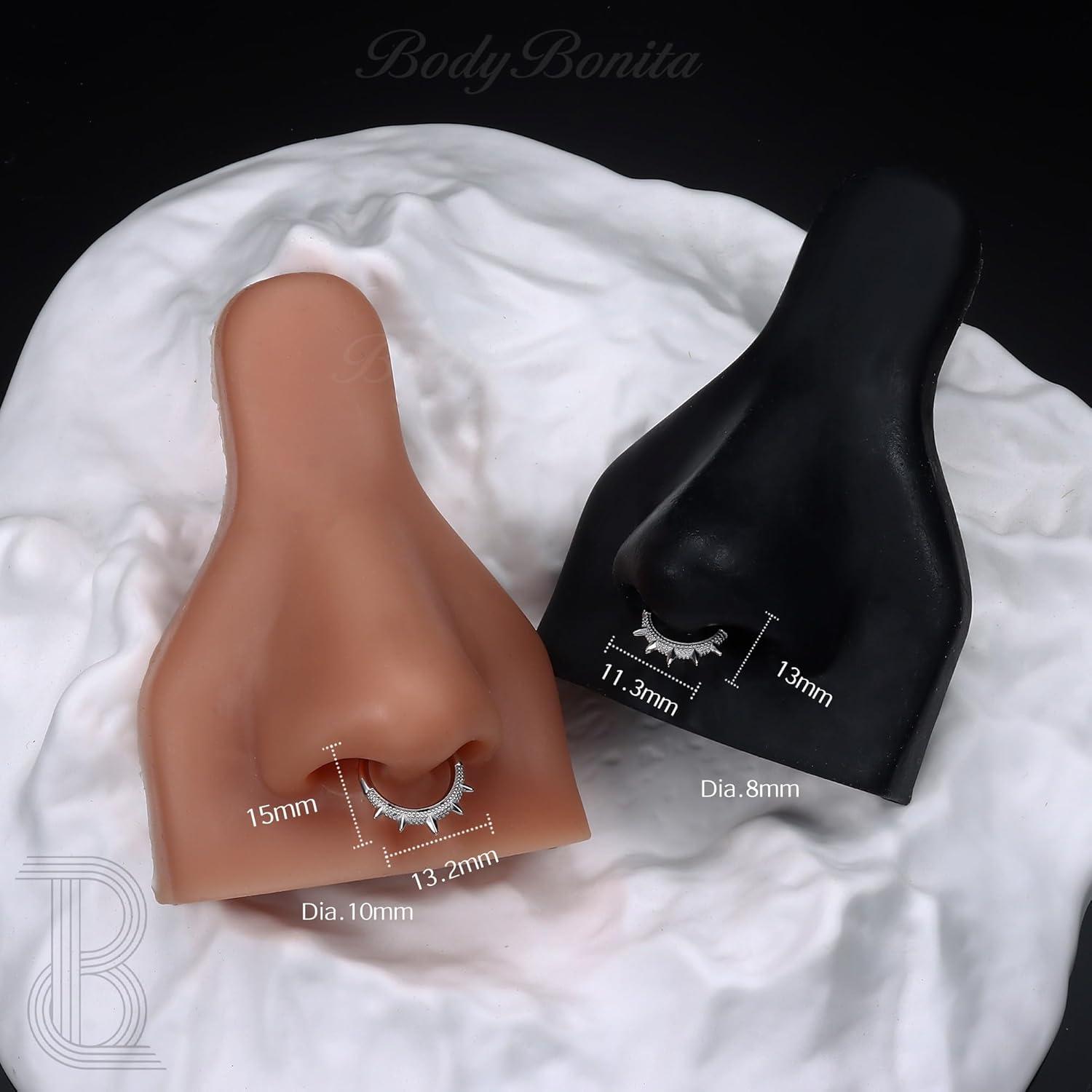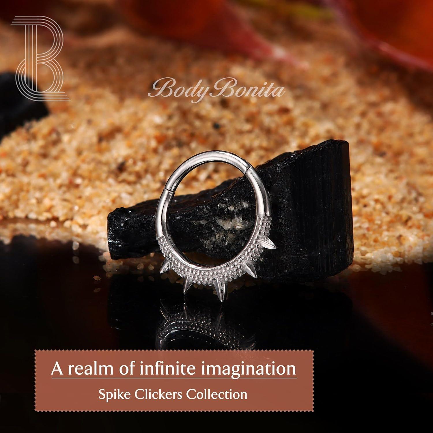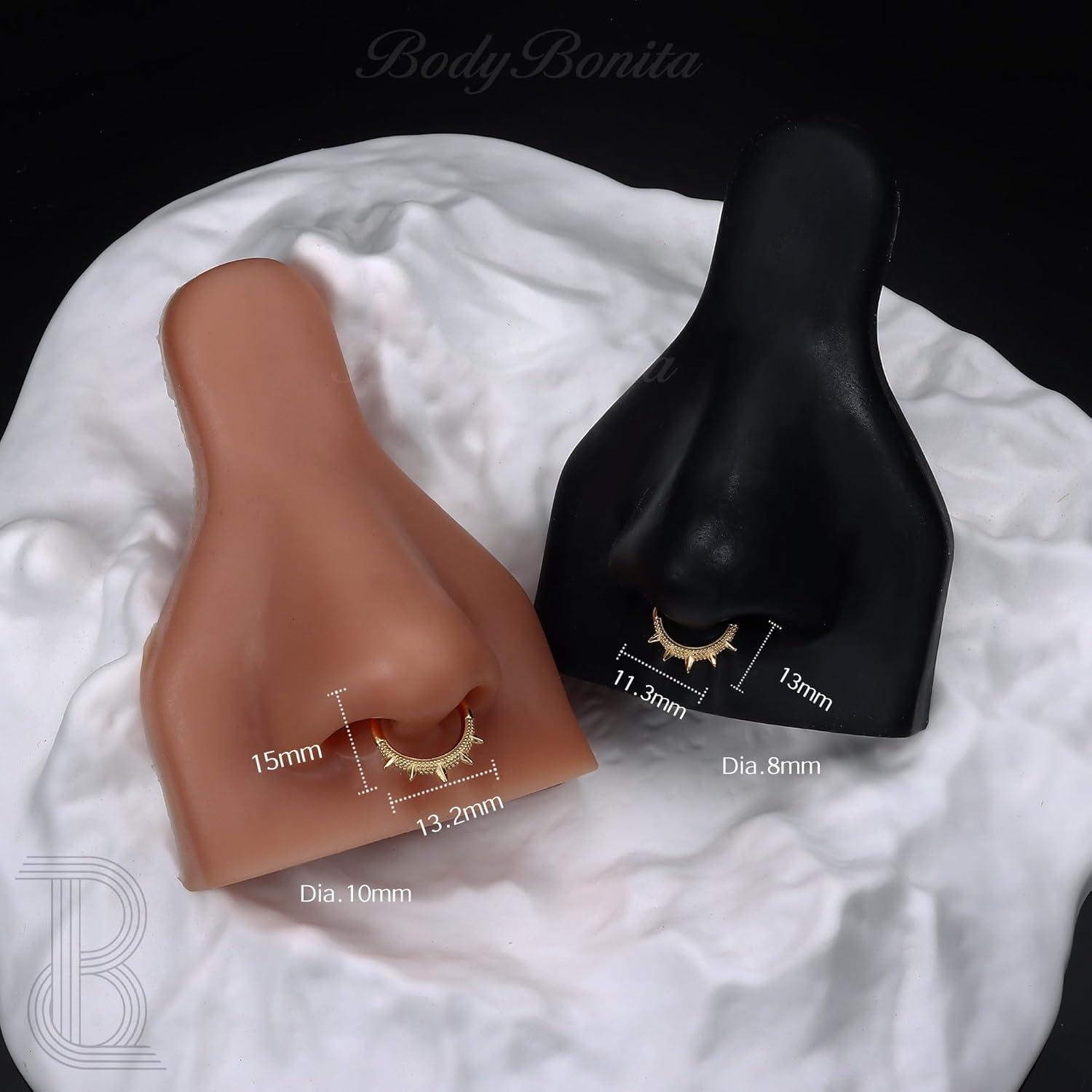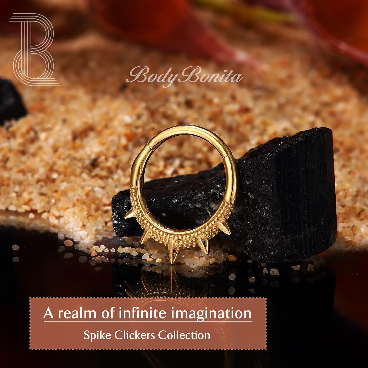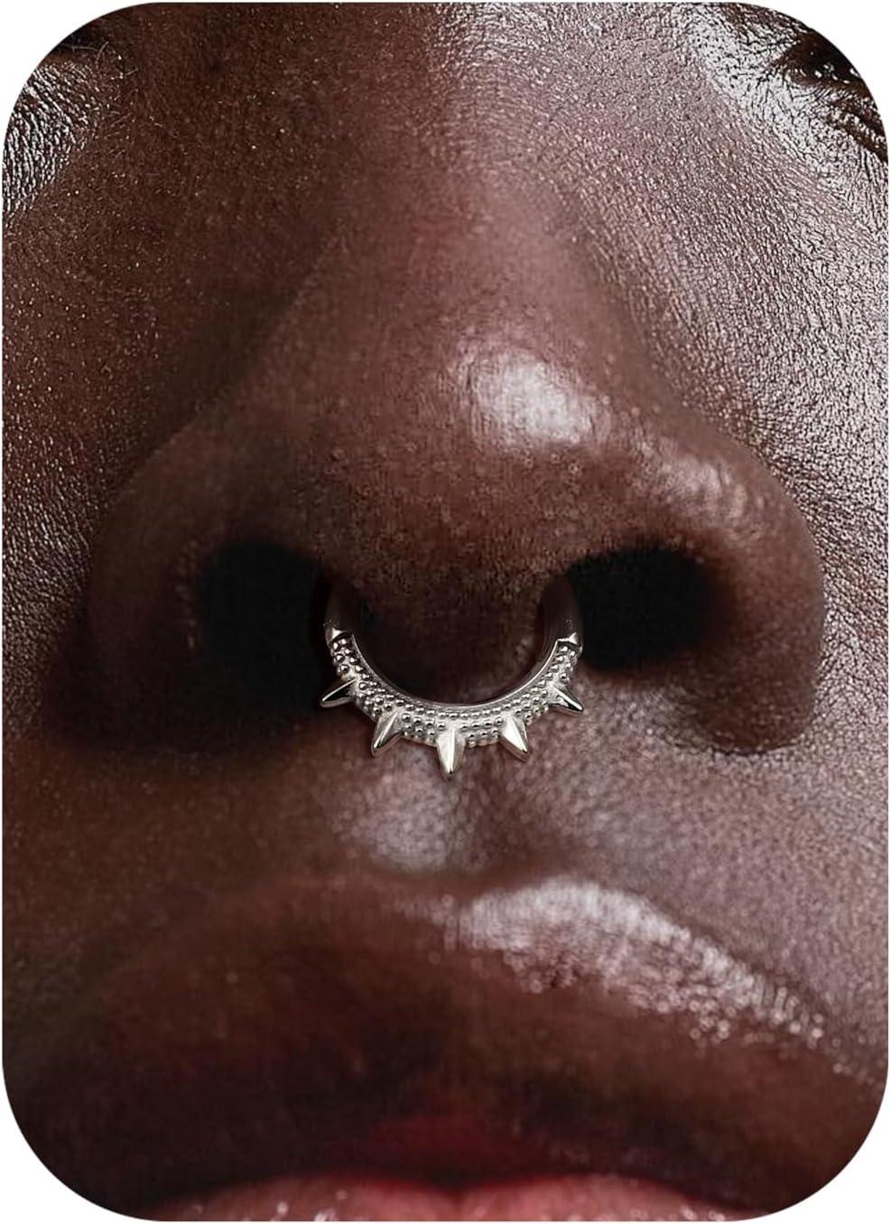 BodyBonita Spike 16G Septum Rings – 316L Stainless Steel Nose Rings Hoops for Women Men Helix Piercing Jewelry Tragus Daith Conch Cartilage Hoop Earring 14K Gold Plated/Silver 8 mm/10 mm(Style 3-Silver/Gold)