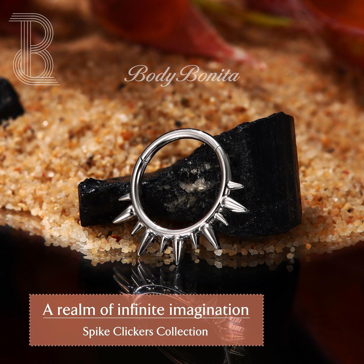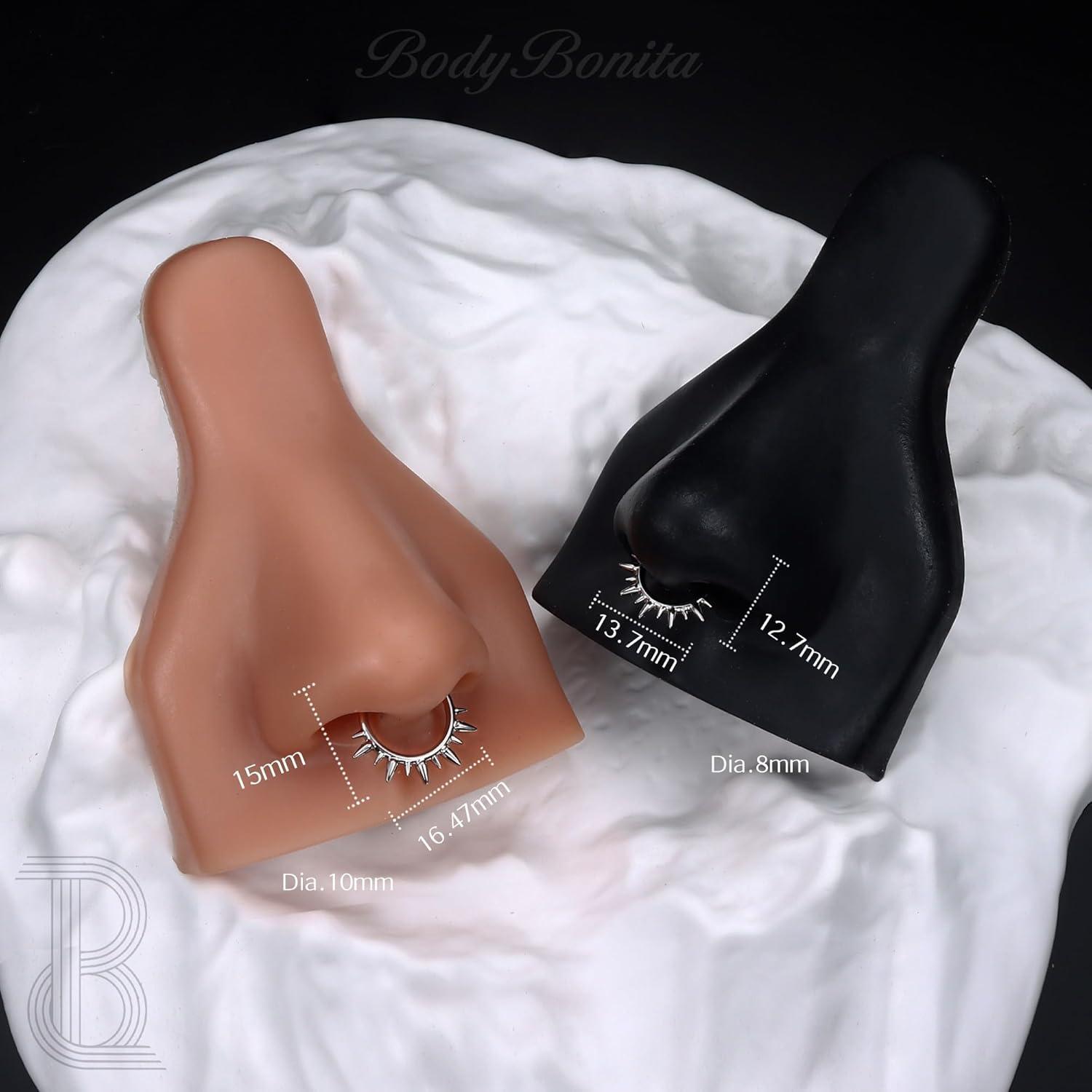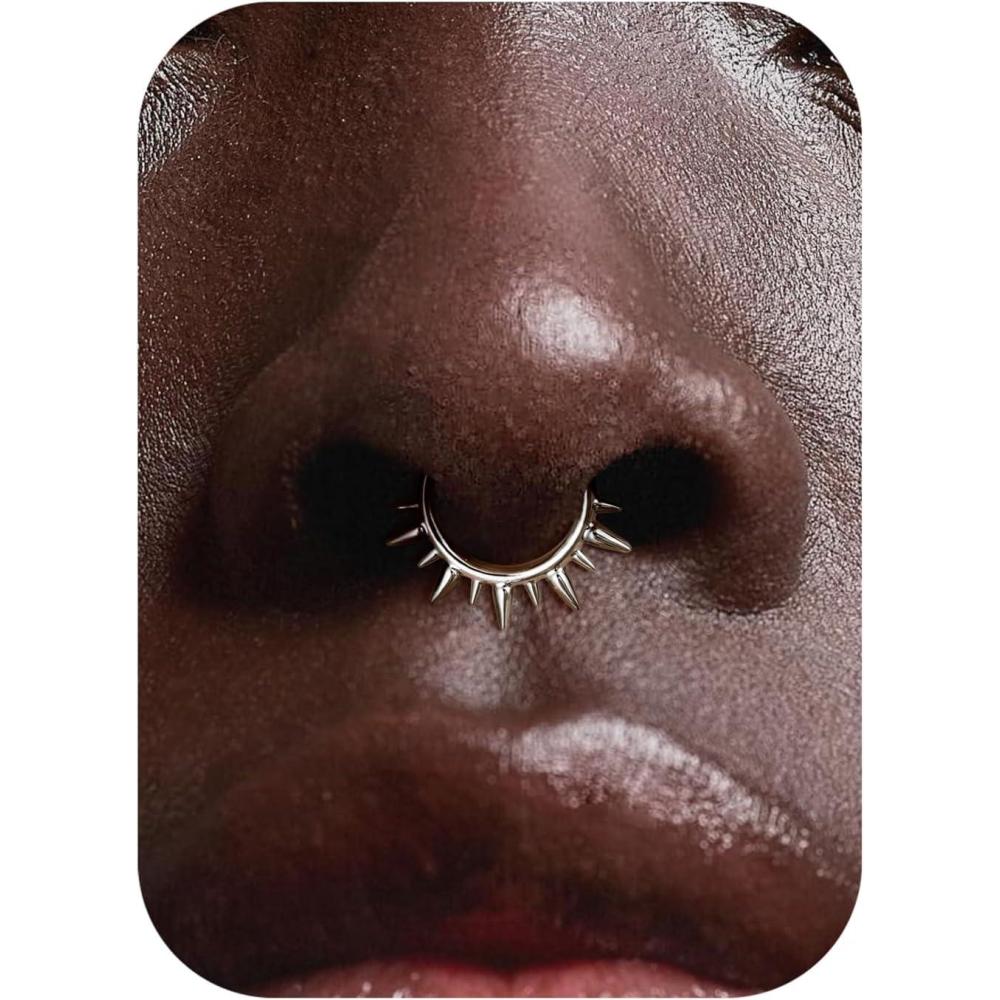 BodyBonita Spike 16G Septum Rings – 316L Stainless Steel Nose Rings Hoops for Women Men Helix Piercing Jewelry Tragus Daith Conch Cartilage Hoop Earring 14K Gold Plated/Silver 8 mm/10 mm(Style 6-Silver)
