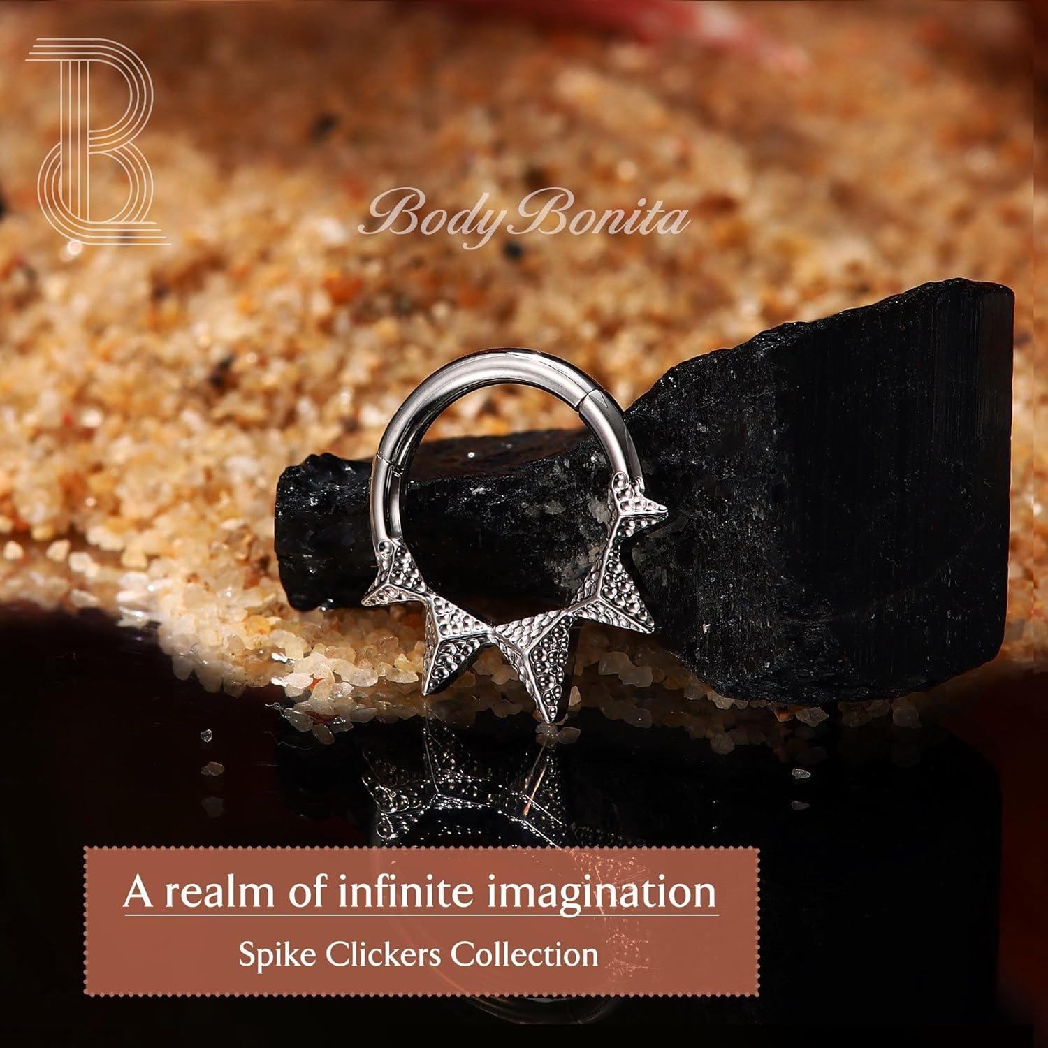 BodyBonita Spike 16G Septum Rings – 316L Stainless Steel Nose Rings Hoops for Women Men Helix Piercing Jewelry Tragus Daith Conch Cartilage Hoop Earring 14K Gold Plated/Silver 8 mm/10 mm(Style 8-Silver)