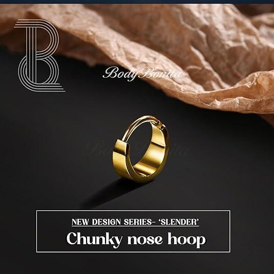 BodyBonita Titanium Septum Rings 16G – G23 Titanium Nose Ring Hoops for Men Women Septum Piercing Jewelry 8 mm 10 mm(Gold-Slender)