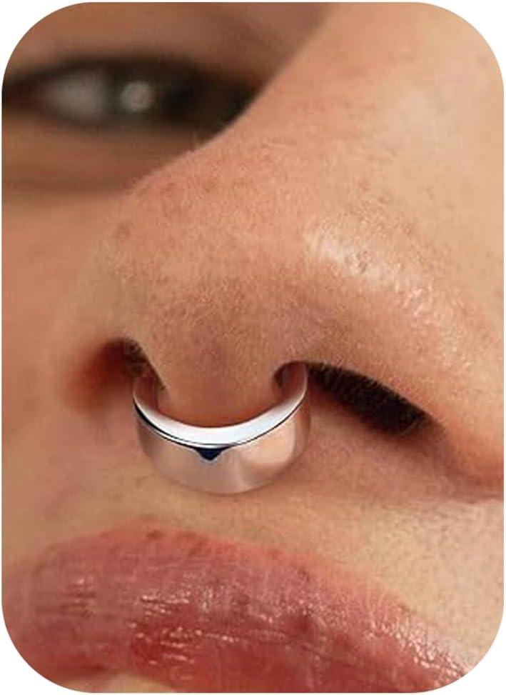 BodyBonita Titanium Septum Rings 16G – G23 Titanium Nose Ring Hoops for Men Women Septum Piercing Jewelry 8 mm 10 mm(Silver-Slender)