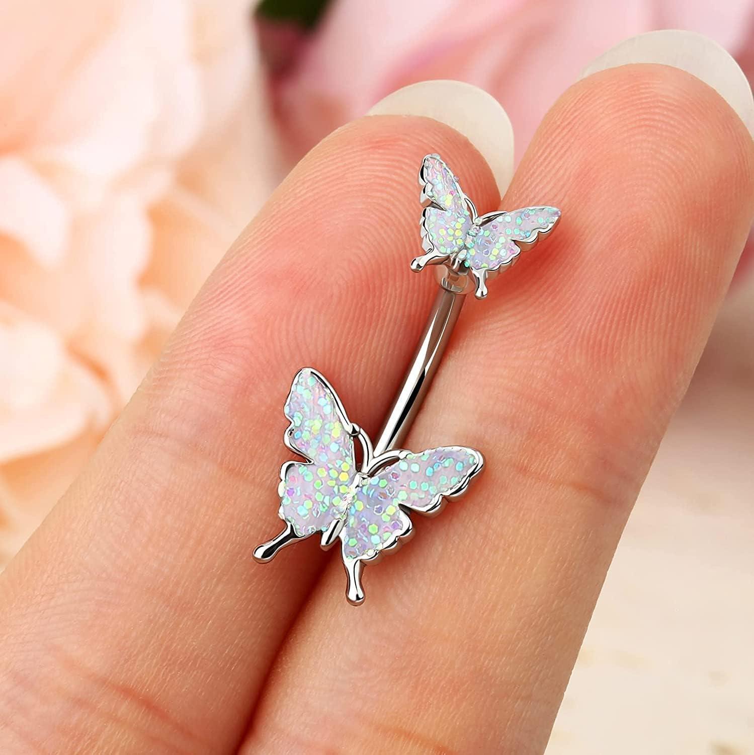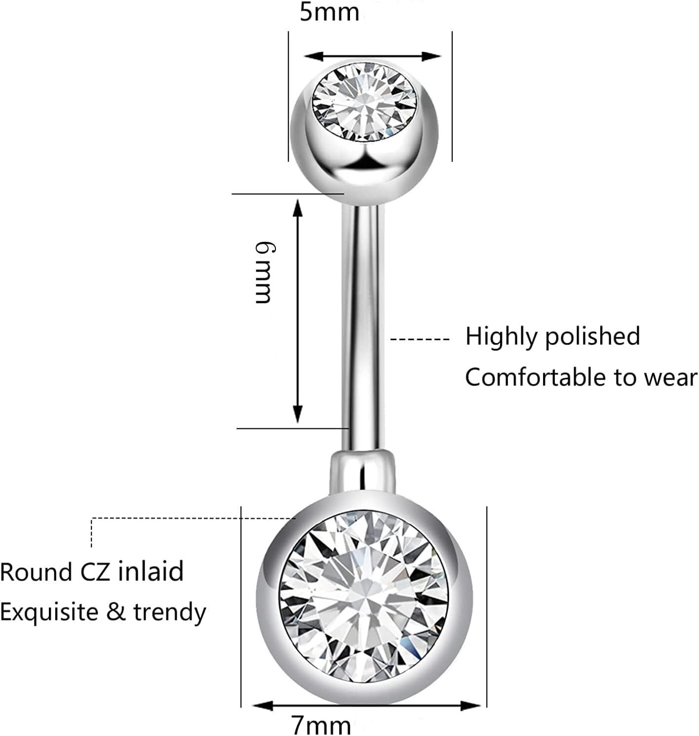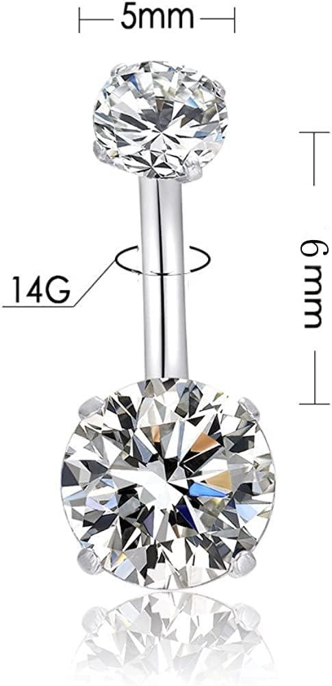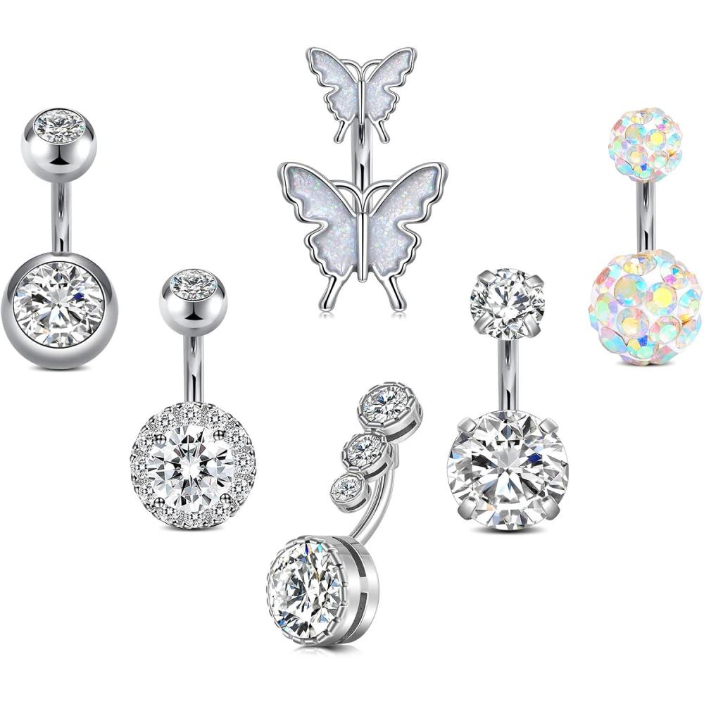 Incaton 14G 6mm Short Bar Belly Button Ring Stainless Steel Belly Rings Butterfly Round Cubic Zirconia Navel Barbell Body Piercing