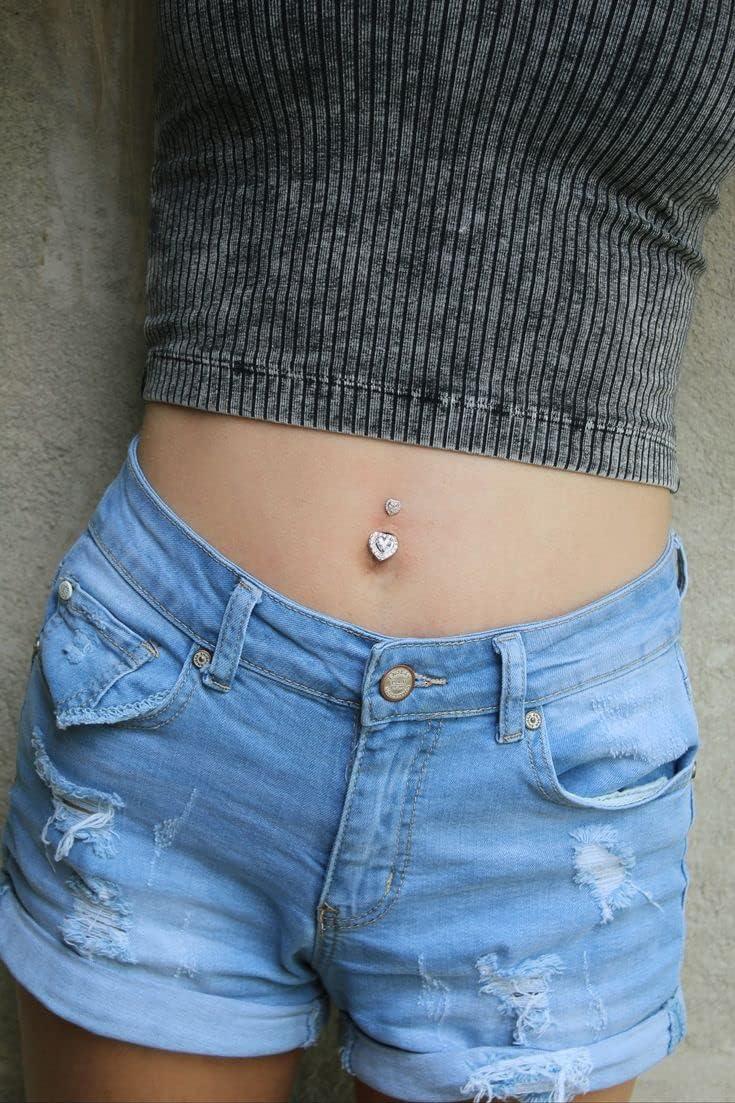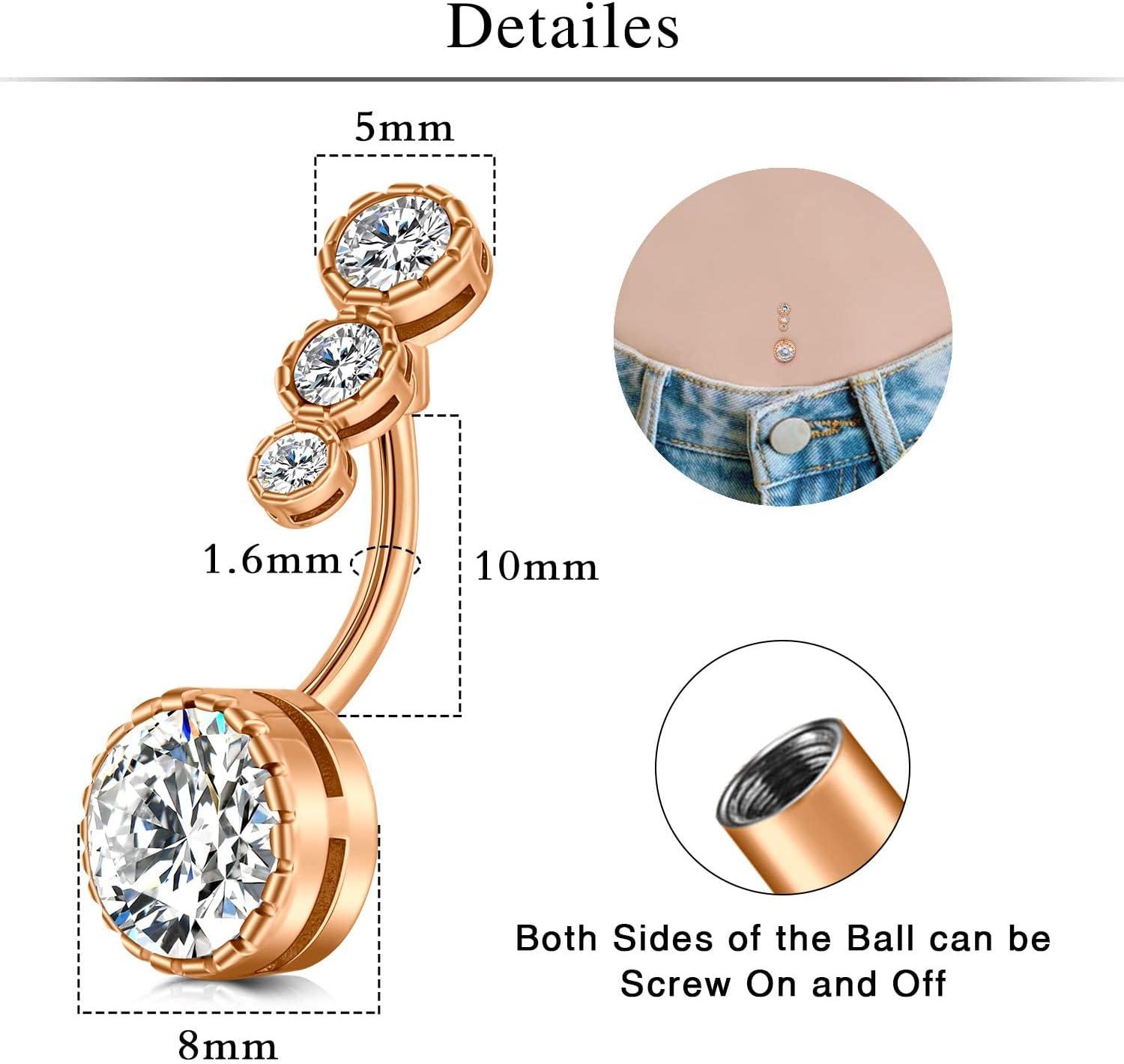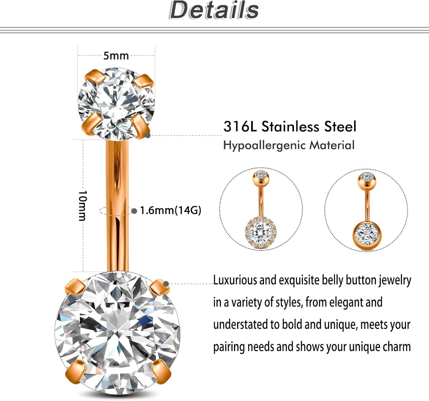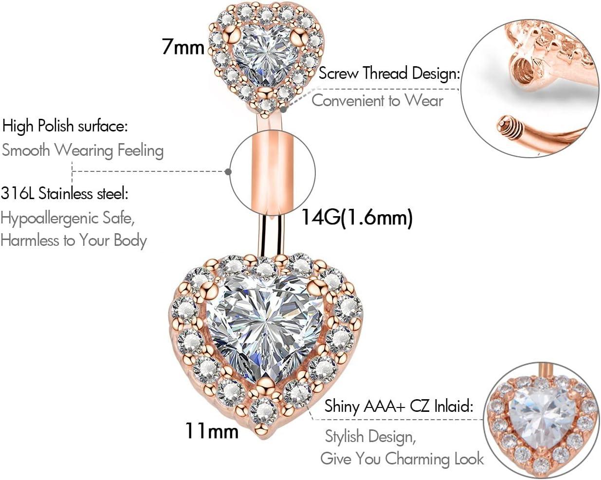 Incaton 14G Belly Button Rings, Stainless Steel Heart Diamond 6mm/10mm Bar Belly Rings For Women, Hypoallergenic Short Bar Navel Piercings(Rose Gold 10mm)