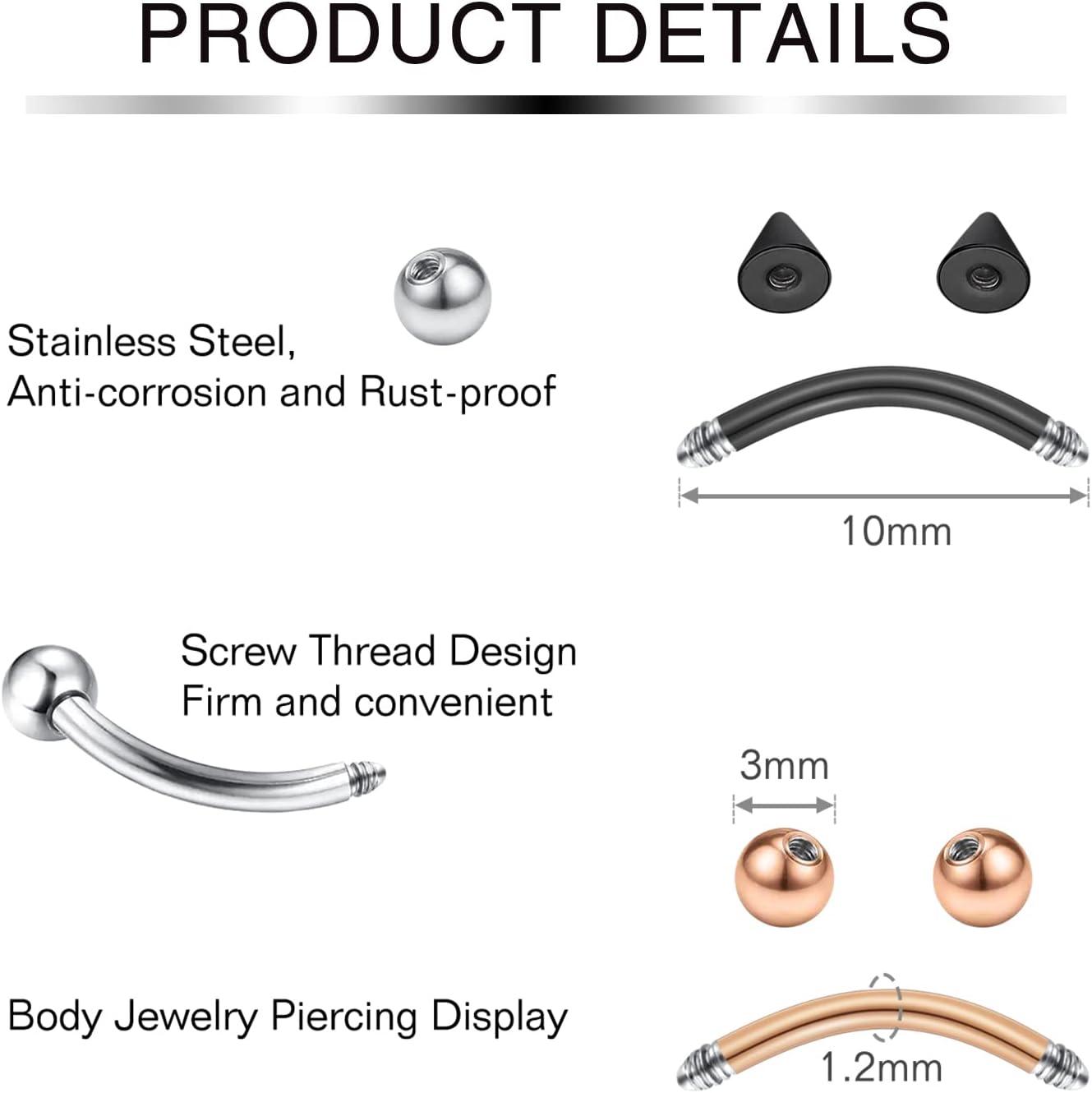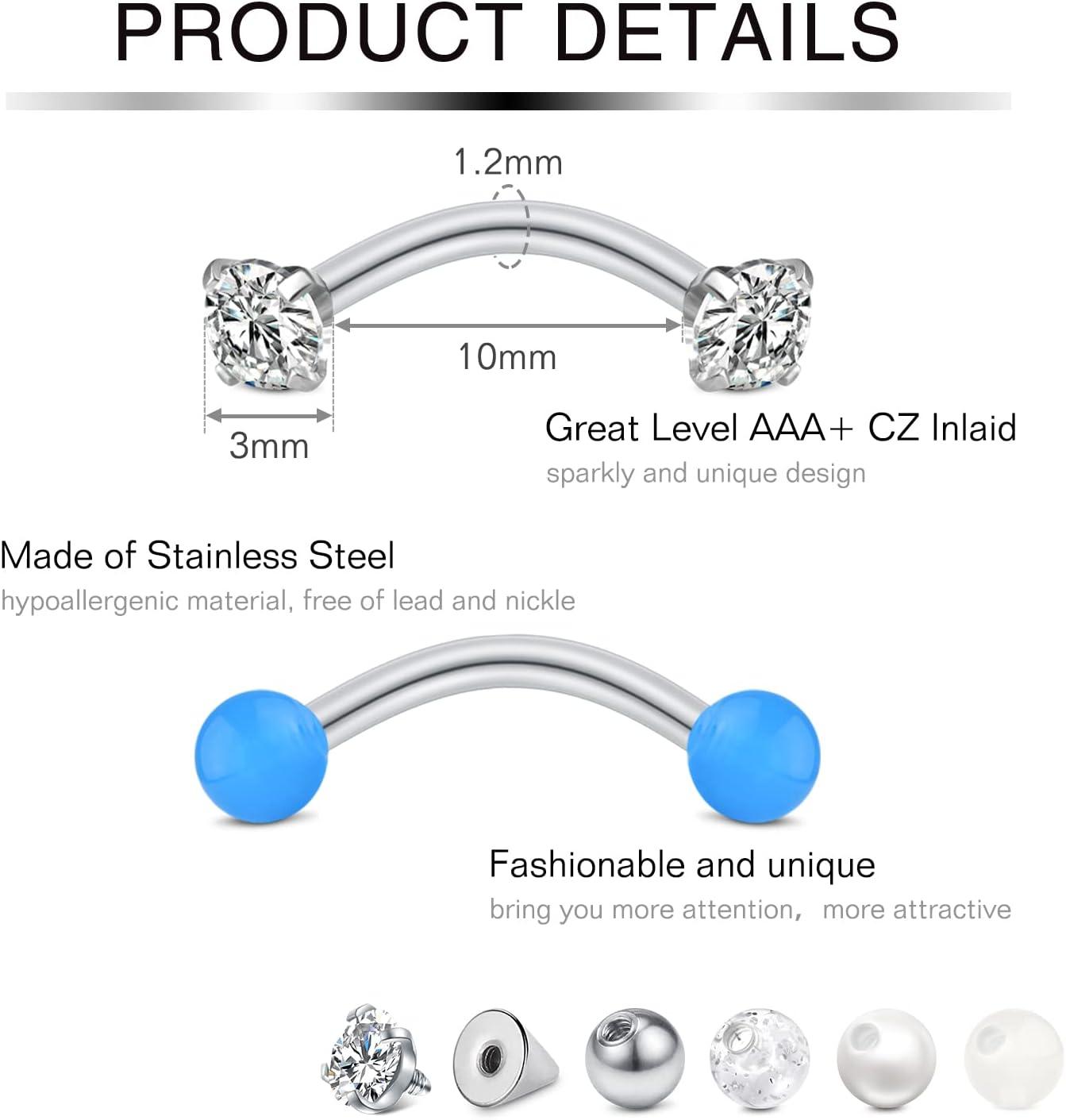 Incaton 30Pcs 16G Curved Barbell Eyebrow Rings Piercing Surgical Steel Daith Rook Earring Piercing Jewelry for Women Men 10mm