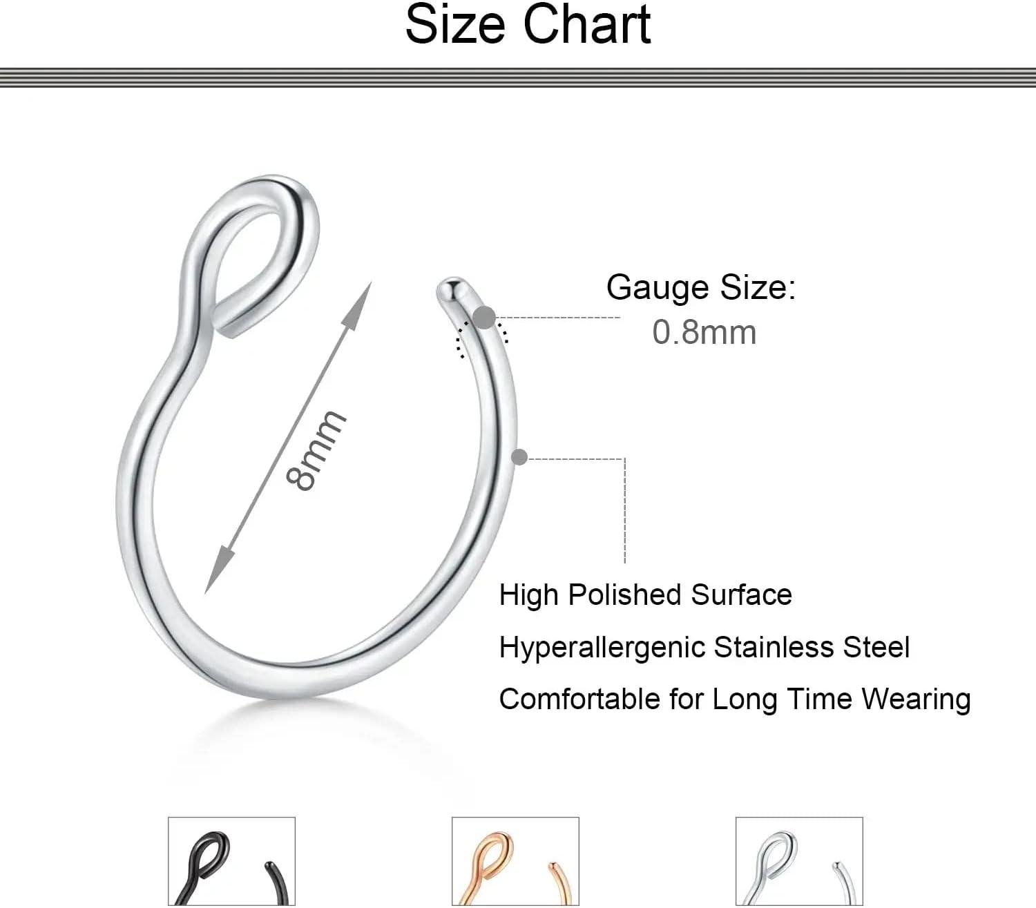 Incaton Fake Nose Ring Magnetic Nose Stud Fake Nose Ring Hoop Fake Nose Ring Stud Double Fake Noe Rings for Women Men