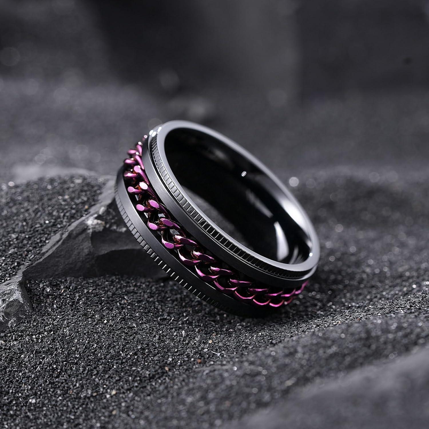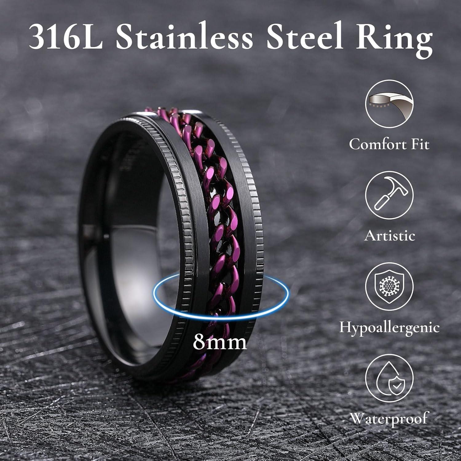 King Will 316L Stainless Steel Fidget Ring for Men Women-8mm Width with Stylish Chain Inlay Spinner Ring Stress Relief, Durable Wedding Band Comfort Fit Size 4-16(A-Black-Purple)