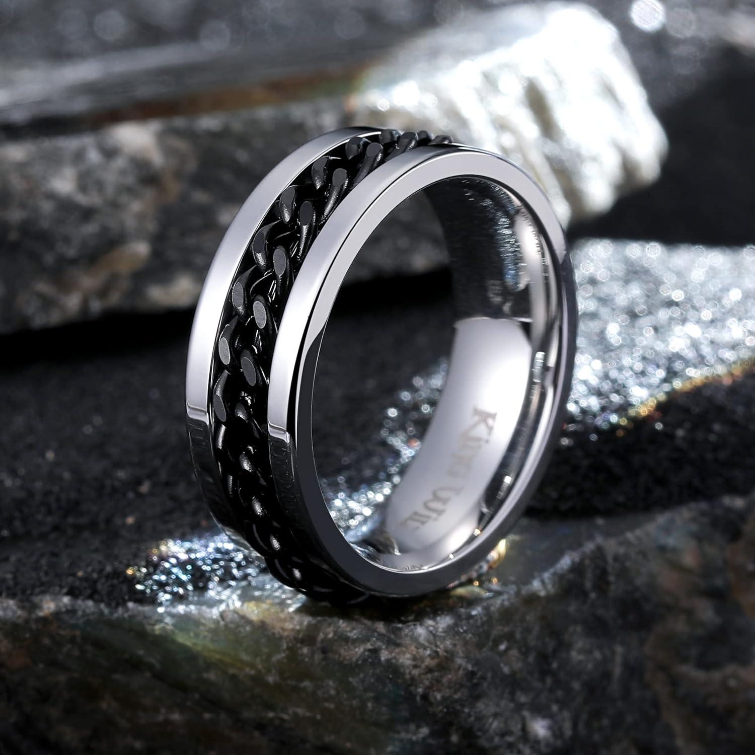 King Will 316L Stainless Steel Fidget Ring for Men Women-8mm Width with Stylish Chain Inlay Spinner Ring Stress Relief, Durable Wedding Band Comfort Fit Size 4-16(B-Sliver Plated-Black)