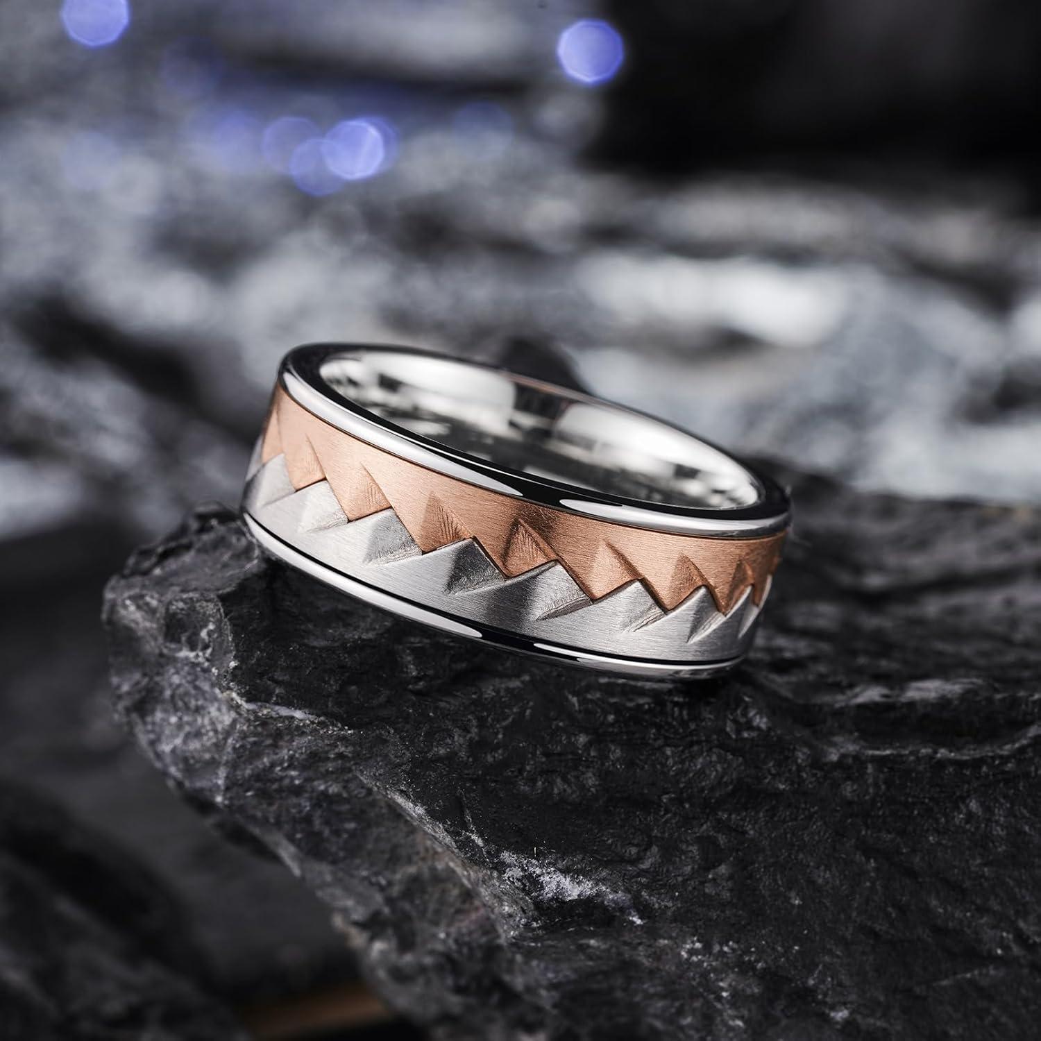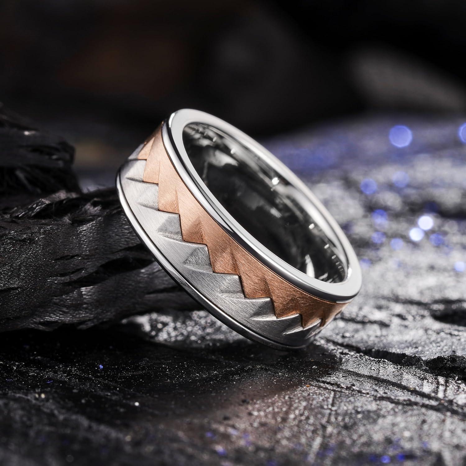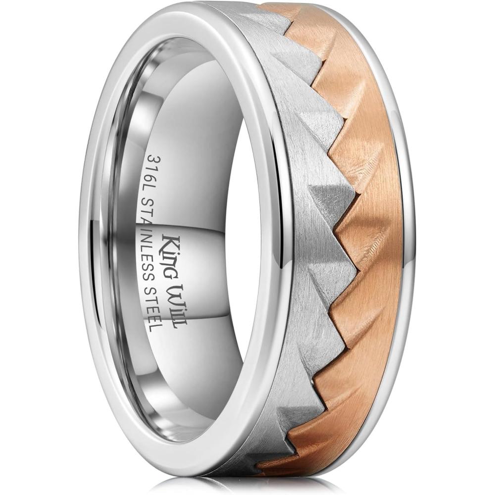 King Will 316L Stainless Steel Men’s Wedding Band – 6/8 mm Dual-Tone Wedding Ring Polished Finish with Gold/Black Steel Plating, Fashionable and Durable Stainless Steel Men’s Ring Size 7-14(Silver & Rose Gold)