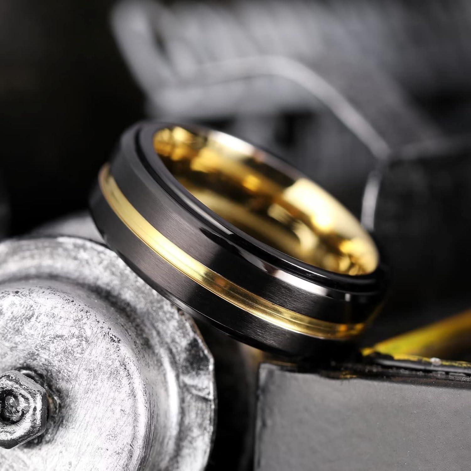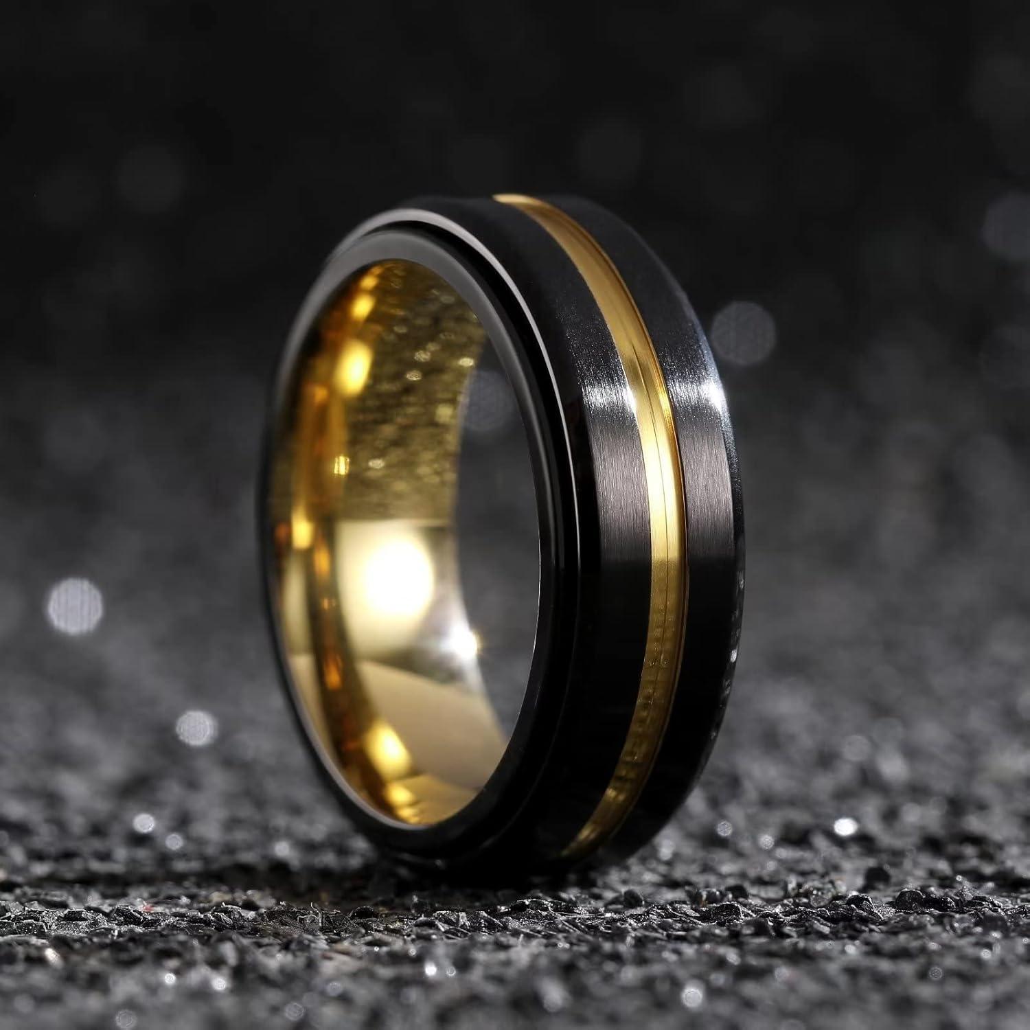 King Will 316L Stainless Steel Spinner Ring for Men Women-8mm Black/Silver/Gold Stress Anxiety Relief Fidget Ring Multiple Styles Wedding Band Comfort Fit Size 4-16(D-Grooved-Black & Gold)