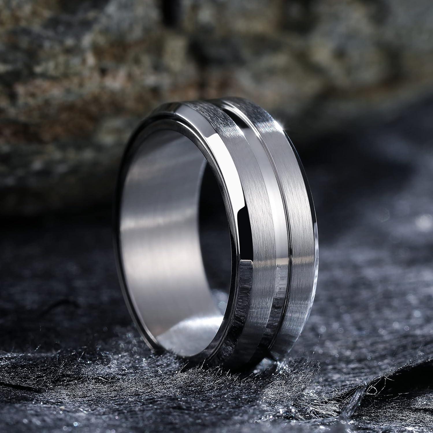 King Will 316L Stainless Steel Spinner Ring for Men Women-8mm Black/Silver/Gold Stress Anxiety Relief Fidget Ring Multiple Styles Wedding Band Comfort Fit Size 4-16(D-Grooved Silver)