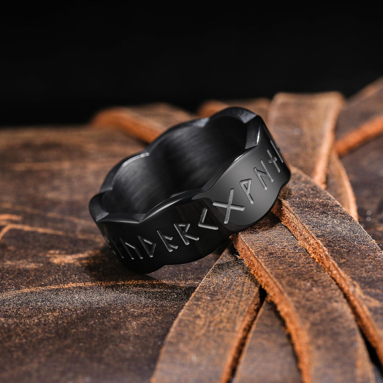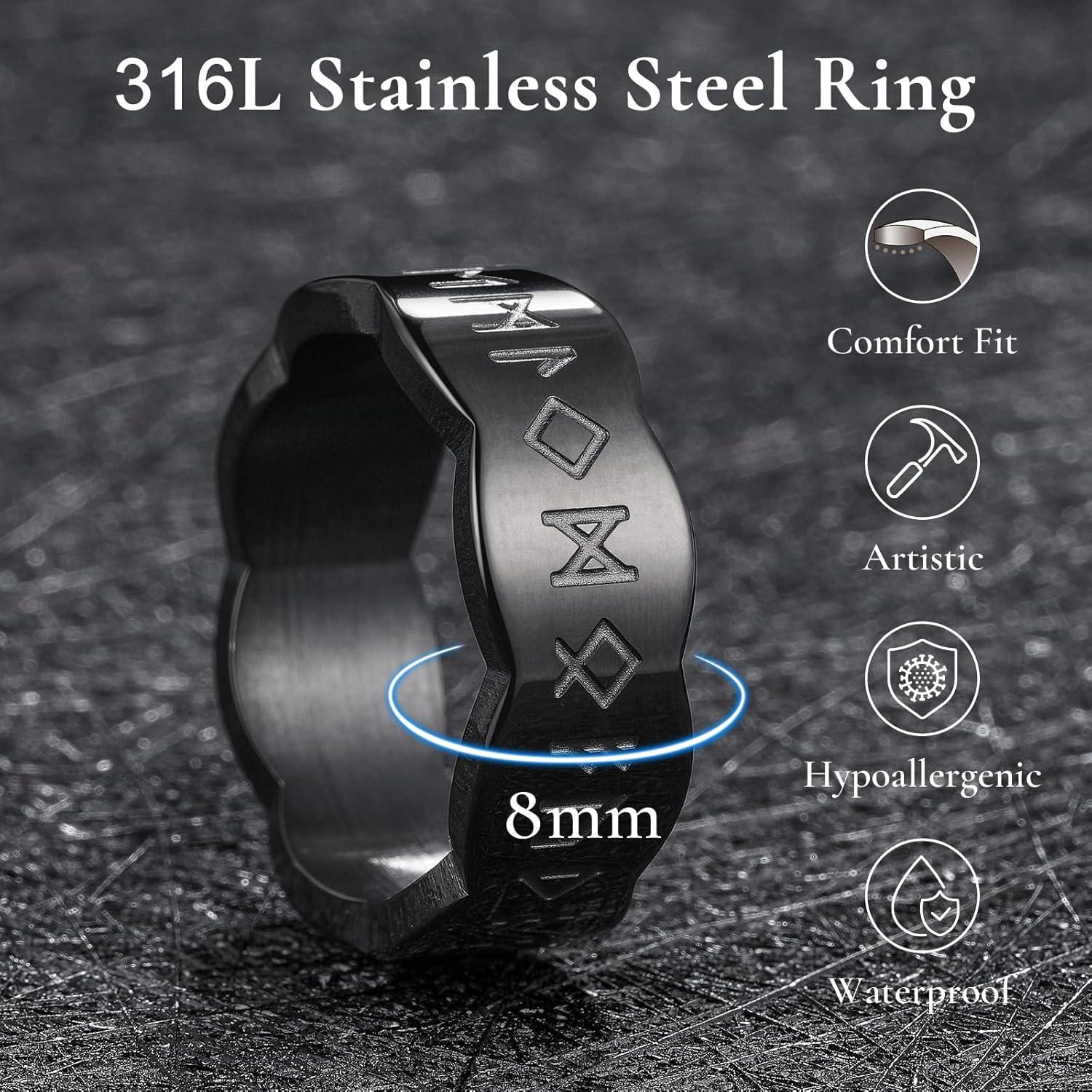 King Will 316L Stainless Steel Spinner Wedding Band for Men Women-8mm Width Fidget Spinner Ring in Brown/Black/Sliver with Viking Runes Pattern, Stress Relief Ring Comfort Fit Size 7-13(B-Black)