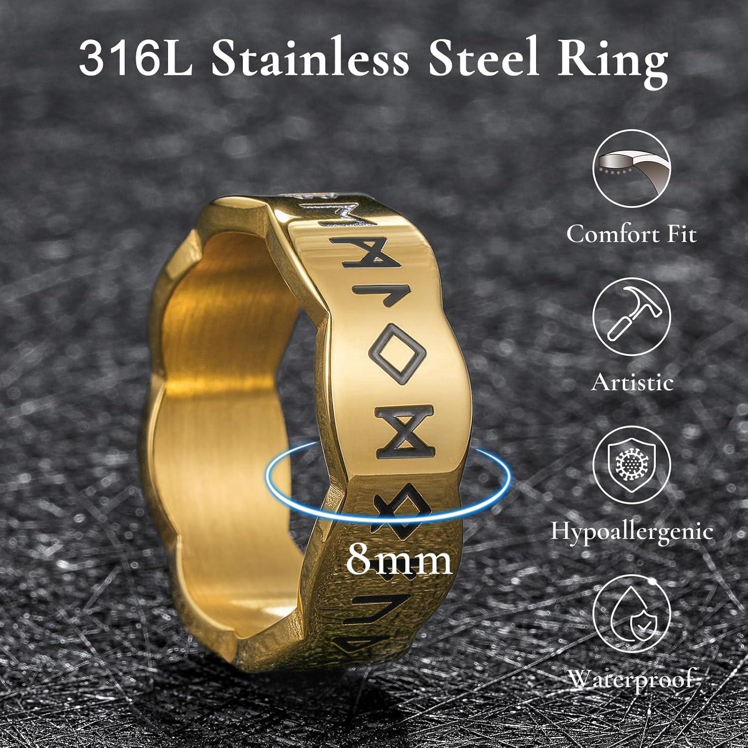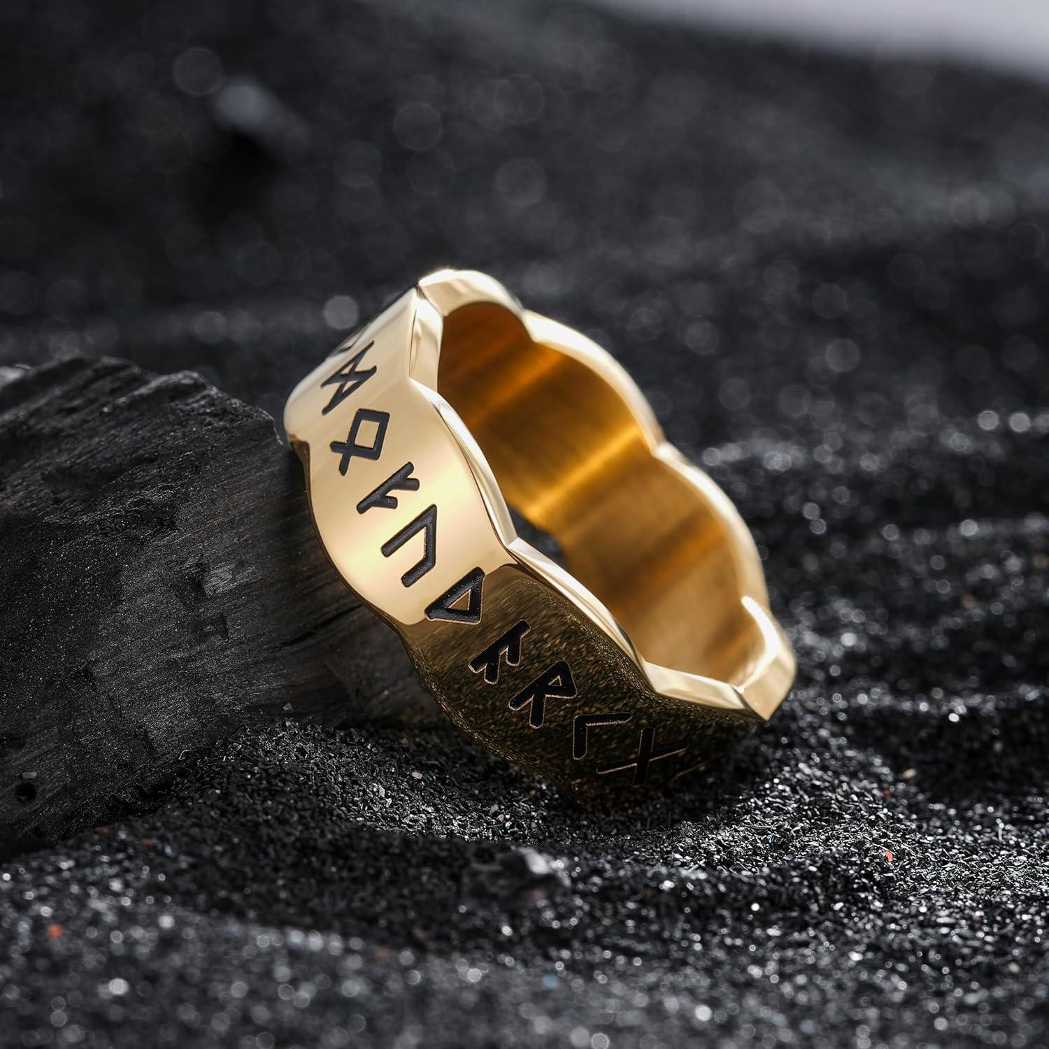 King Will 316L Stainless Steel Spinner Wedding Band for Men Women-8mm Width Fidget Spinner Ring in Brown/Black/Sliver with Viking Runes Pattern, Stress Relief Ring Comfort Fit Size 7-13(B-Gold Plated)