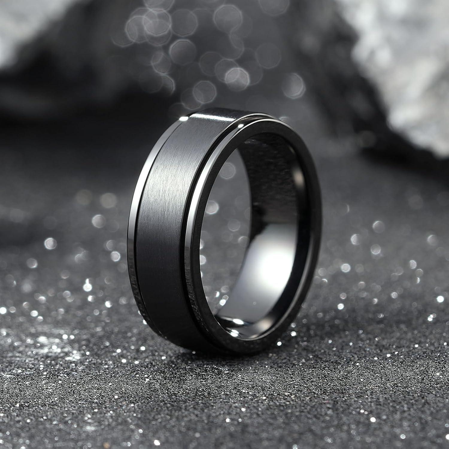 King Will 316L Stainless Steel Spinner Weding Ring for Men Women-8mm Black Stress Relief Fidget Ring Brushed Spinner Wedding Band Comfort Fit Size 7.5
