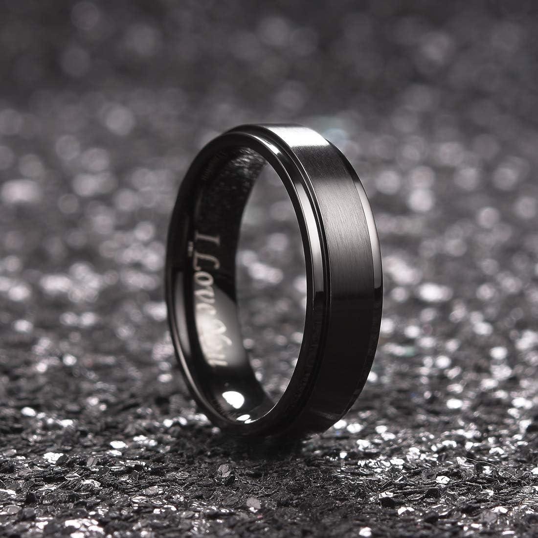 King Will 316L Stainless Steel Wedding Ring for Men Women, 2mm-8mm Width Black/Silver/Gold Wdding Band Laser I Love You Multic Style,Comfort Fit Size 4-16(Black 6mm Step)