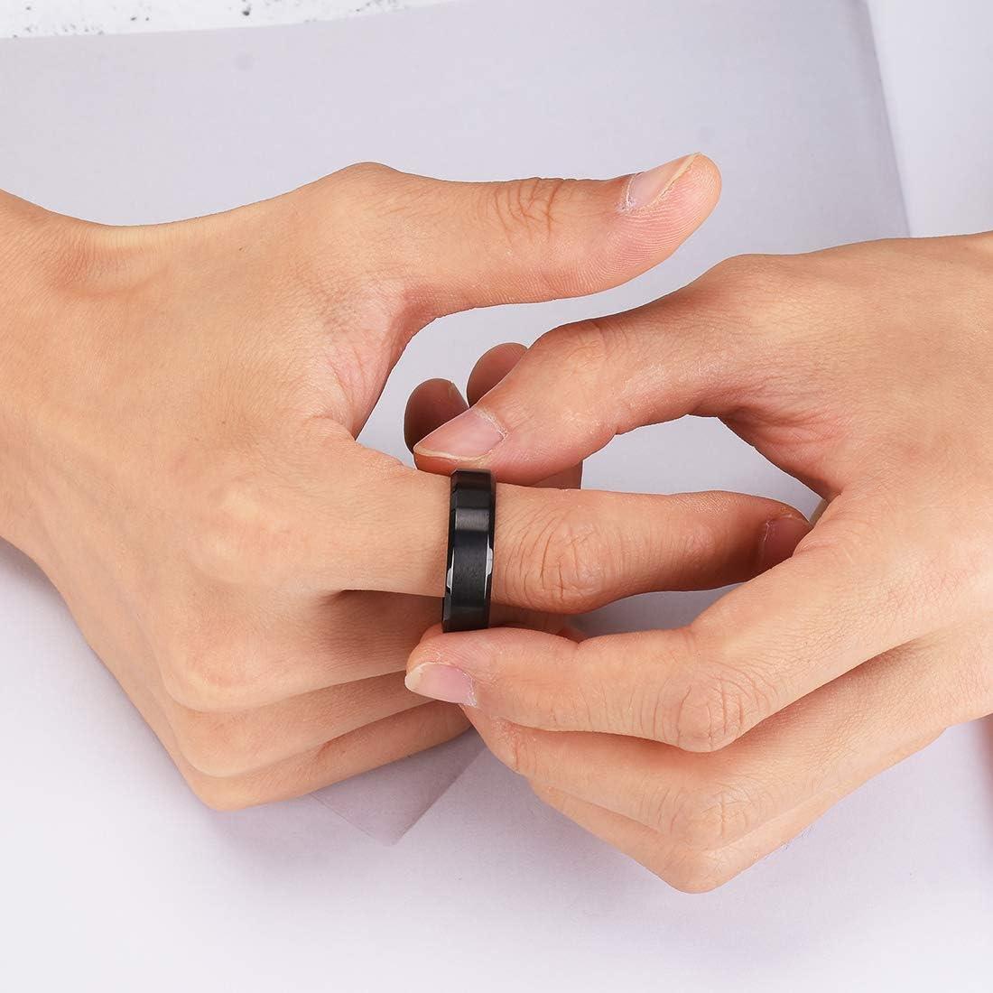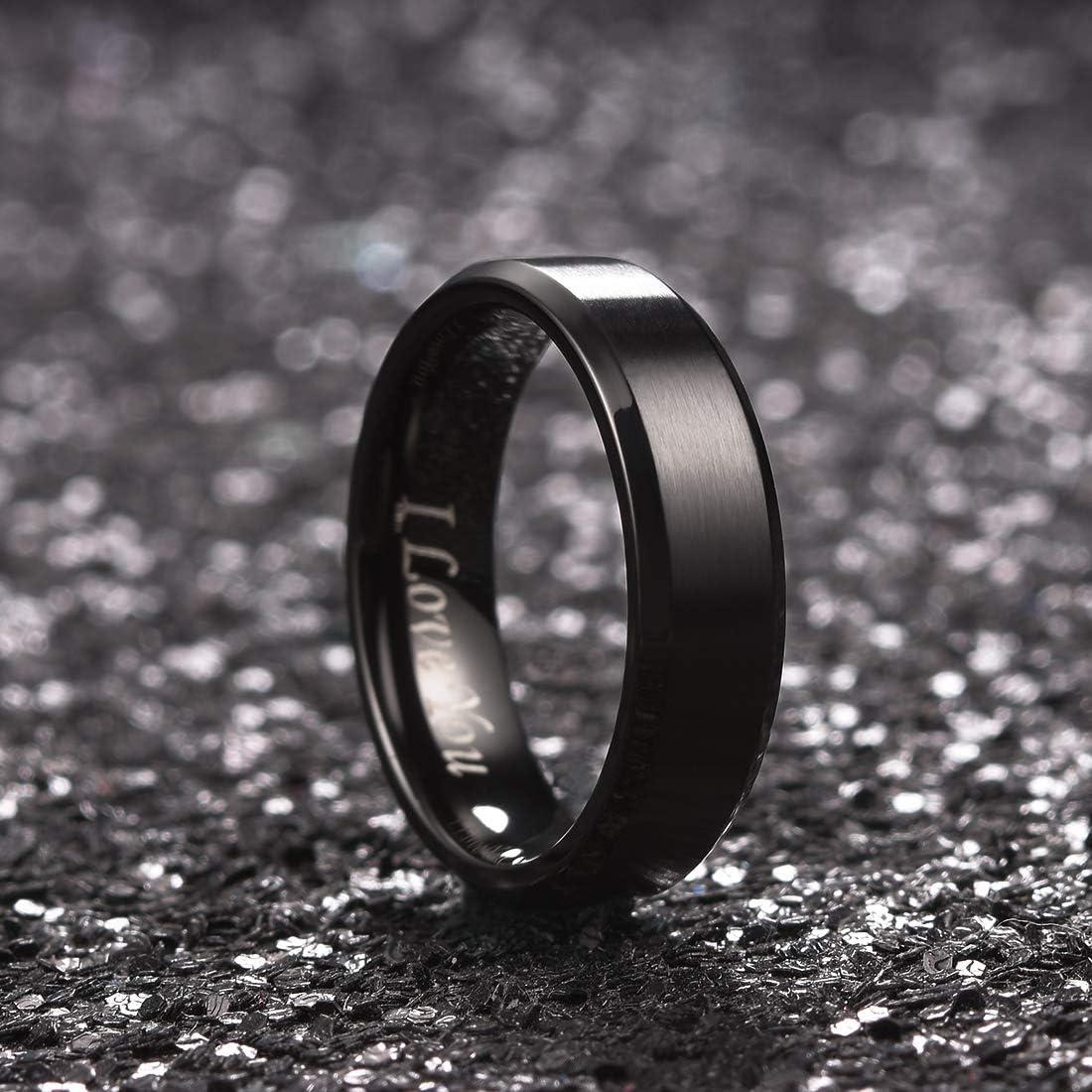King Will 316L Stainless Steel Wedding Ring for Men Women, 2mm-8mm Width Black/Silver/Gold Wdding Band Laser I Love You Multic Style,Comfort Fit Size 4-16(Black 7mm Beveled)