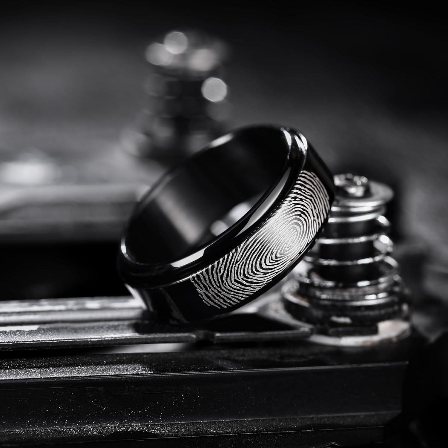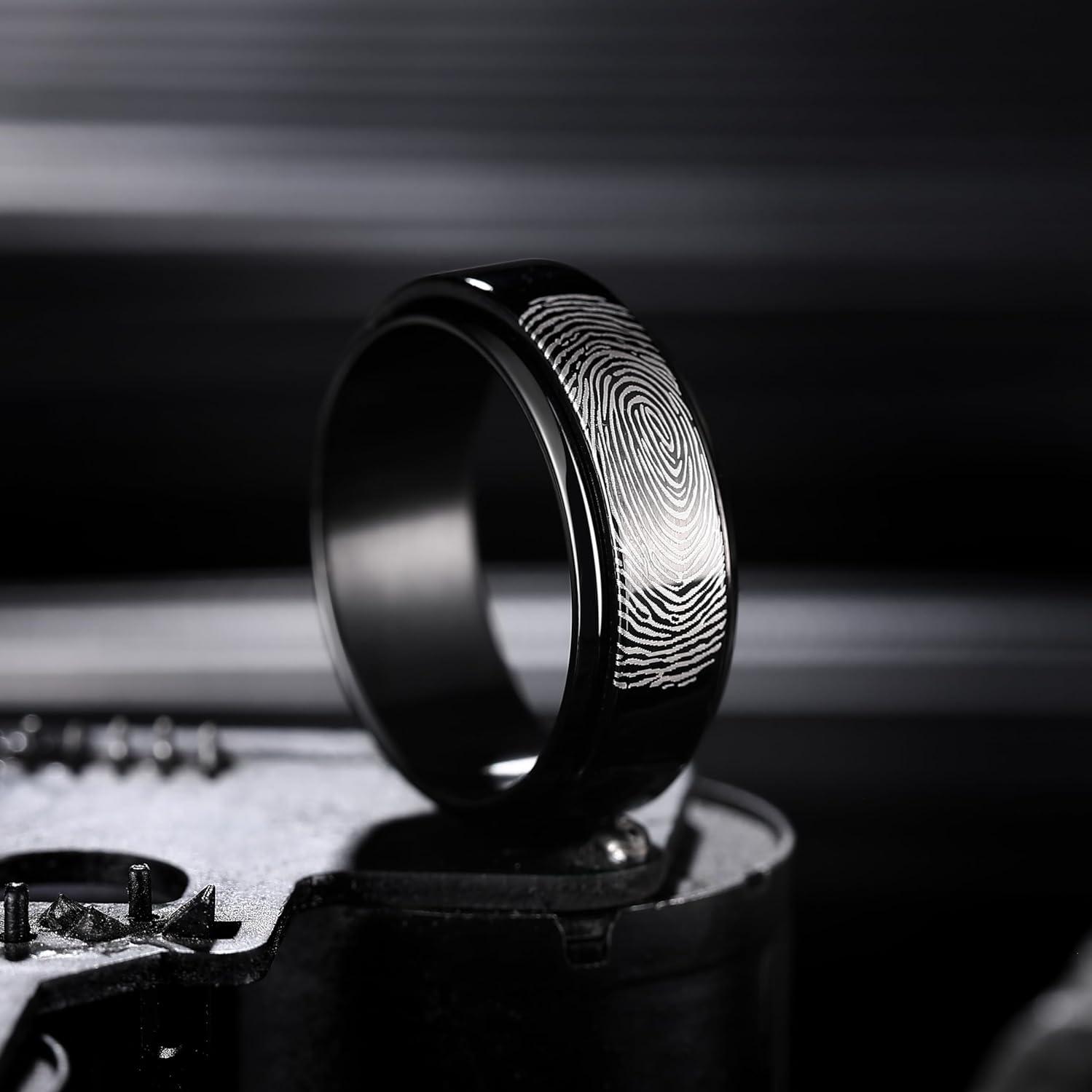 King Will 6mm 7mm 8mm Silver Black Stainless Steel Ring Spinner Ring Anxiety Relief Wedding Ring For Men Women Forest Elk Deer Family/Moon Star/Skull Head/Evil Eye/Poker Pattern Size 7-14(Fingerprint)