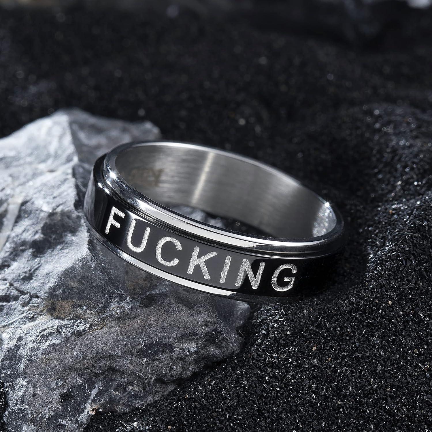 King Will 6mm 7mm 8mm Silver Black Stainless Steel Ring Spinner Ring Anxiety Relief Wedding Ring For Men Women Forest Elk Deer Family/Moon Star/Skull Head/Evil Eye/Poker Pattern Size 7-14(Keep Going)