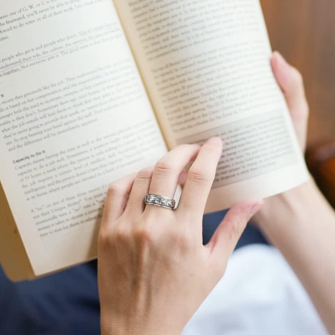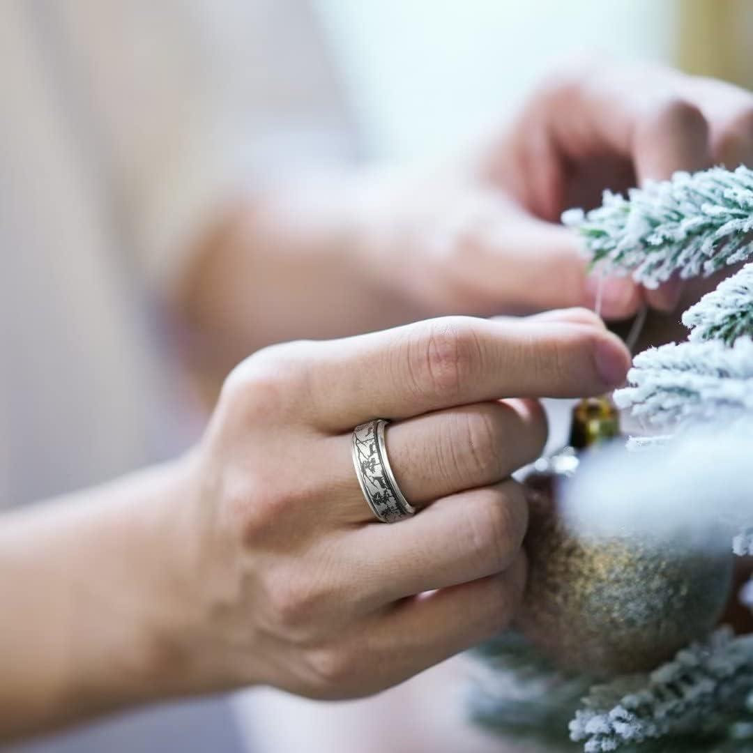 King Will 6mm 7mm 8mm Silver Black Stainless Steel Ring Spinner Ring Anxiety Relief Wedding Ring For Men Women Forest Elk Deer Family/Moon Star/Skull Head/Evil Eye/Poker Pattern Size 7-14(Landscape)