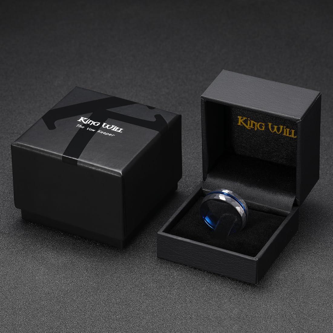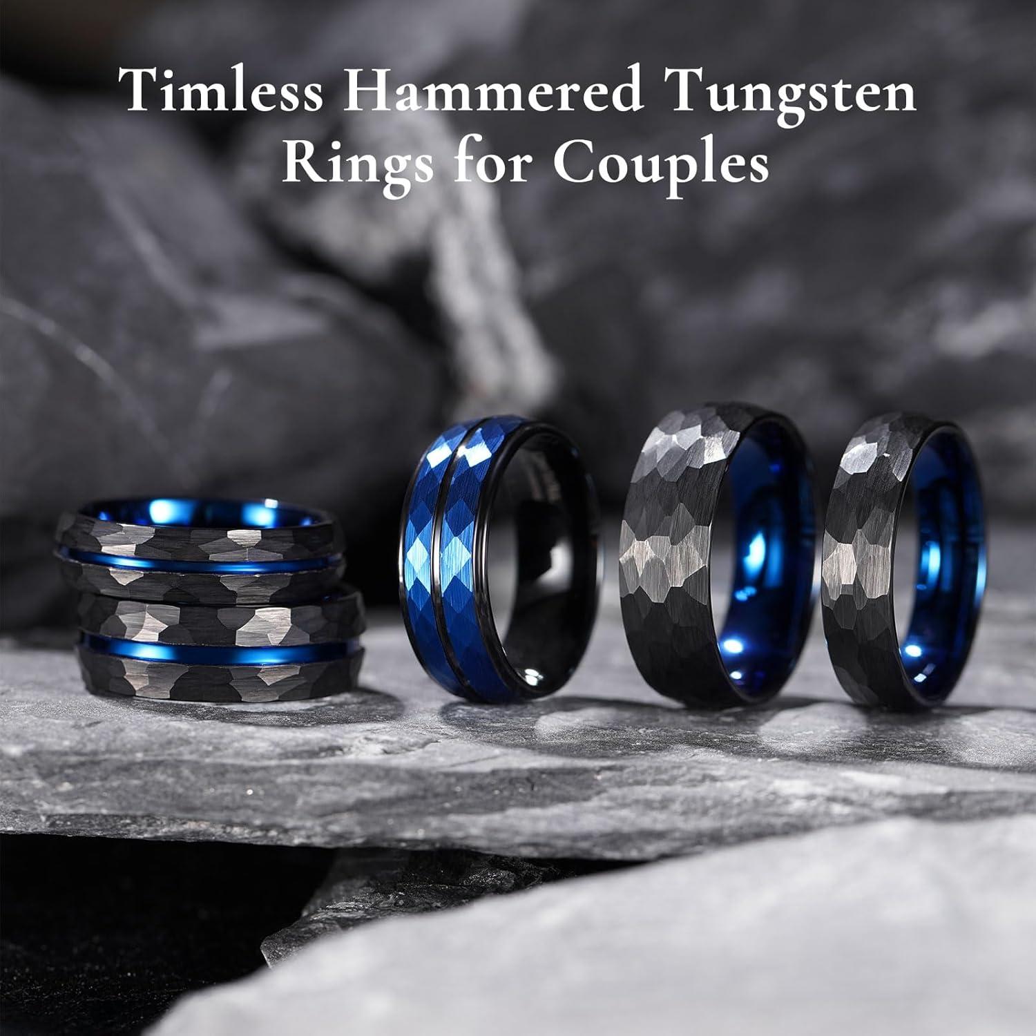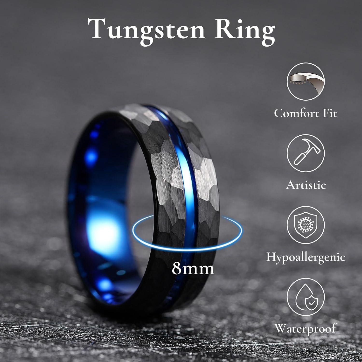 King Will 6mm 8mm Men’s Tungsten Carbide Wedding Ring Hammered Groove Wedding Band Mens Two Tone Black/Silver/Gold/Brown Engagement Ring for Men and Women Matte Brushed Finish Comfort Fit Size 6-14(8mm Black & Blue Groove)