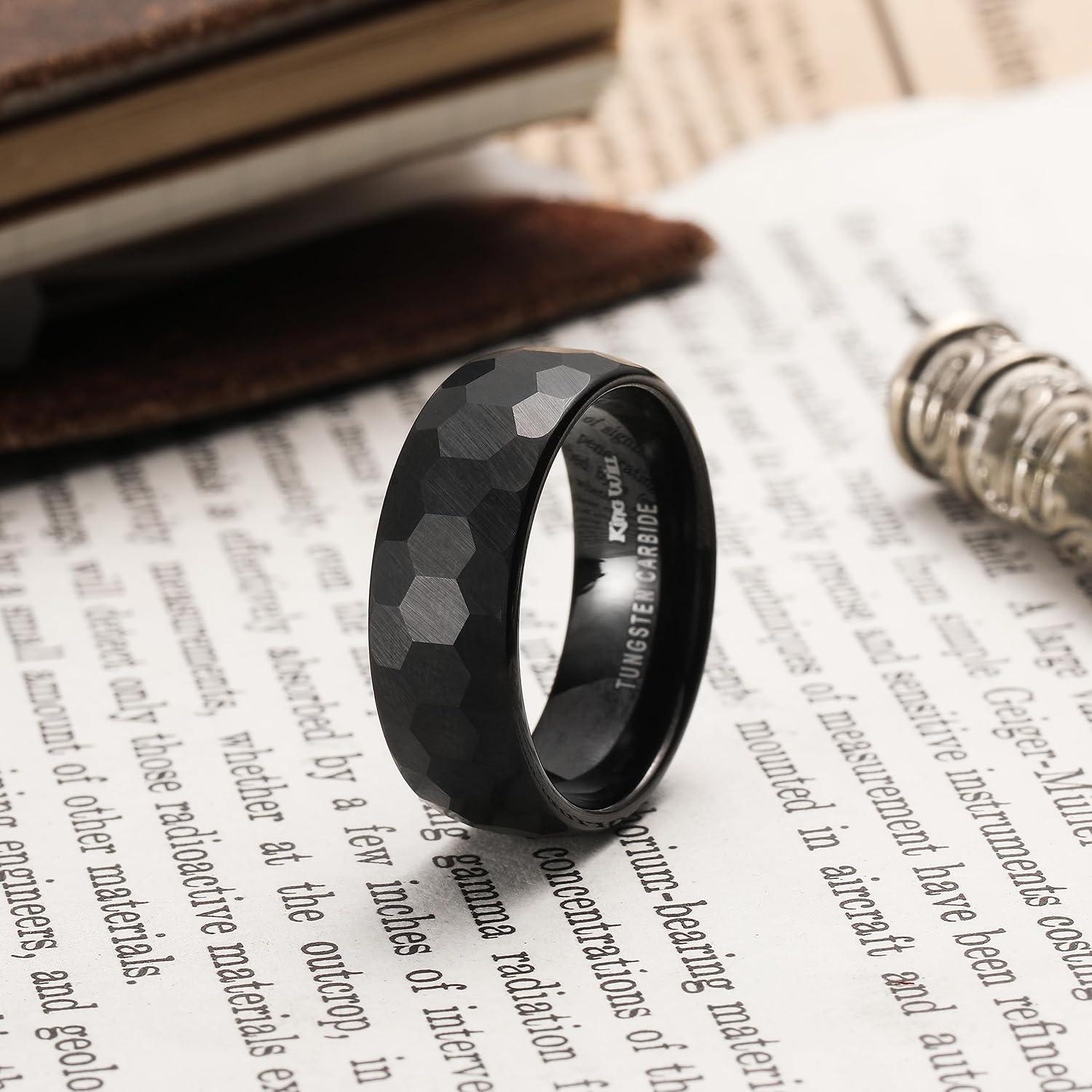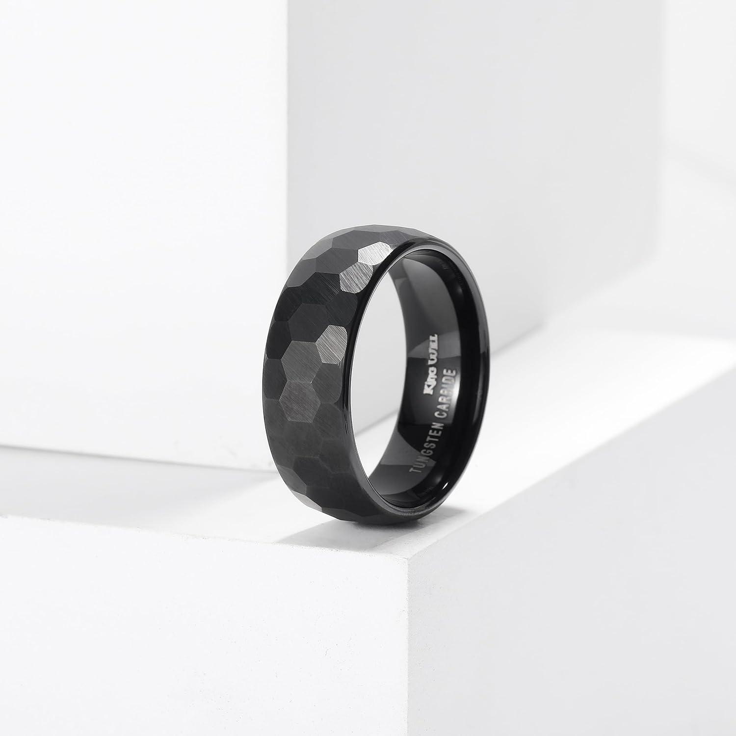 King Will 6mm 8mm Men’s Tungsten Carbide Wedding Ring Hammered Groove Wedding Band Mens Two Tone Black/Silver/Gold/Brown Engagement Ring for Men and Women Matte Brushed Finish Comfort Fit Size 6-14(8mm Blcck Hexagon)