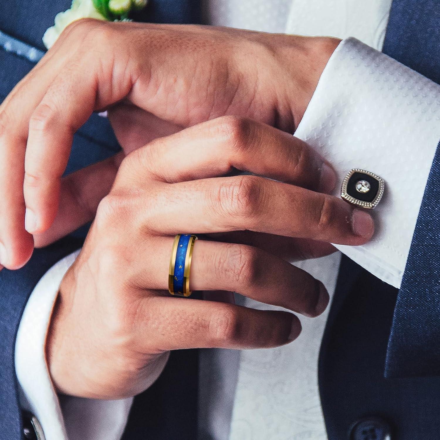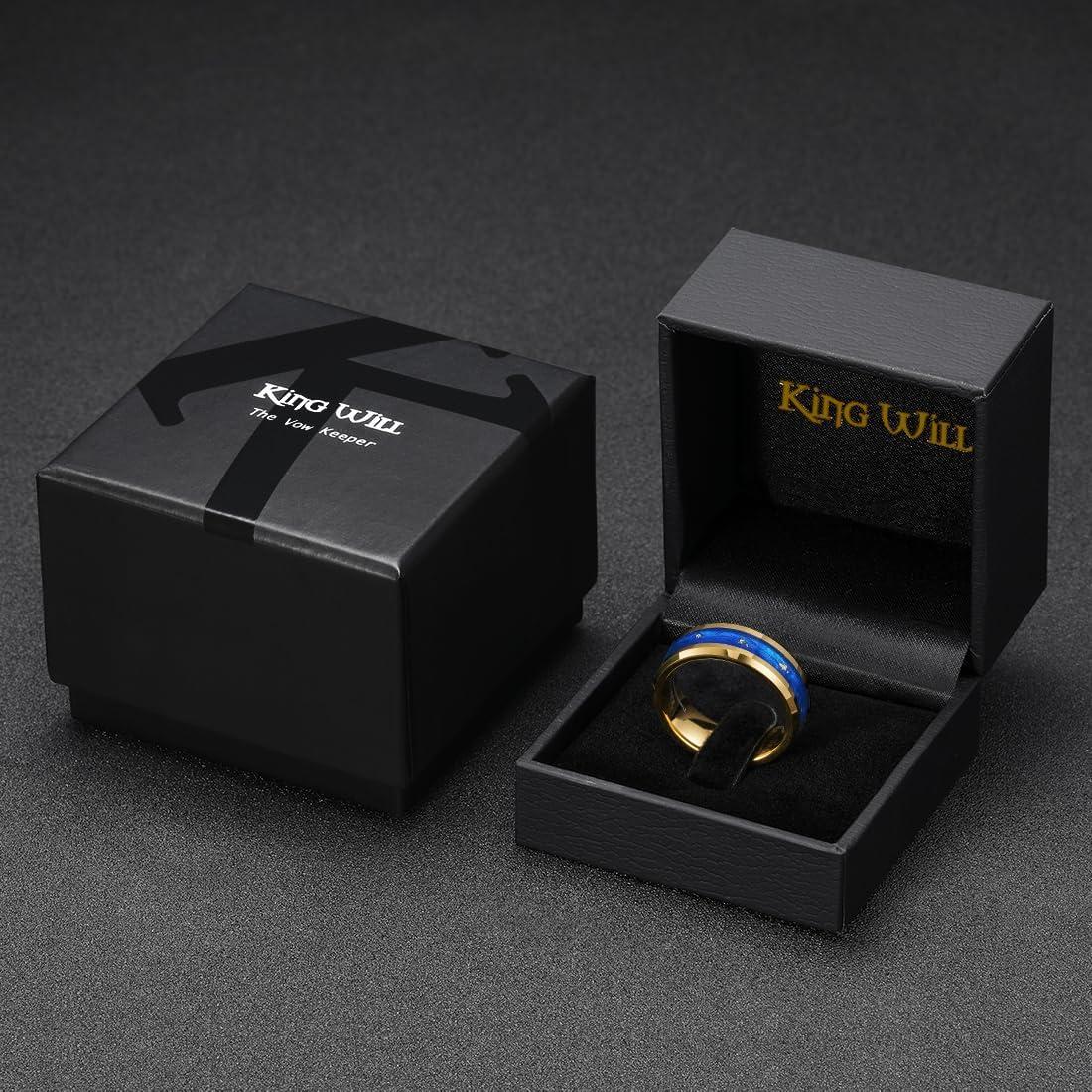 King Will 8mm Black/Gold Tungsten Rings, Men’s Wedding Rings Inlay Beveled Edge Ring for Men Women Comfort Fit, Durable(Blue&Gold)