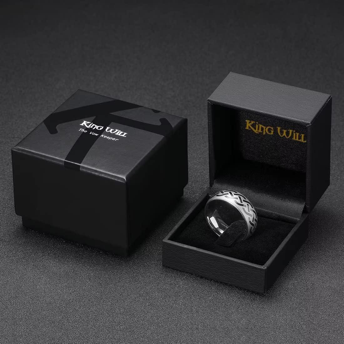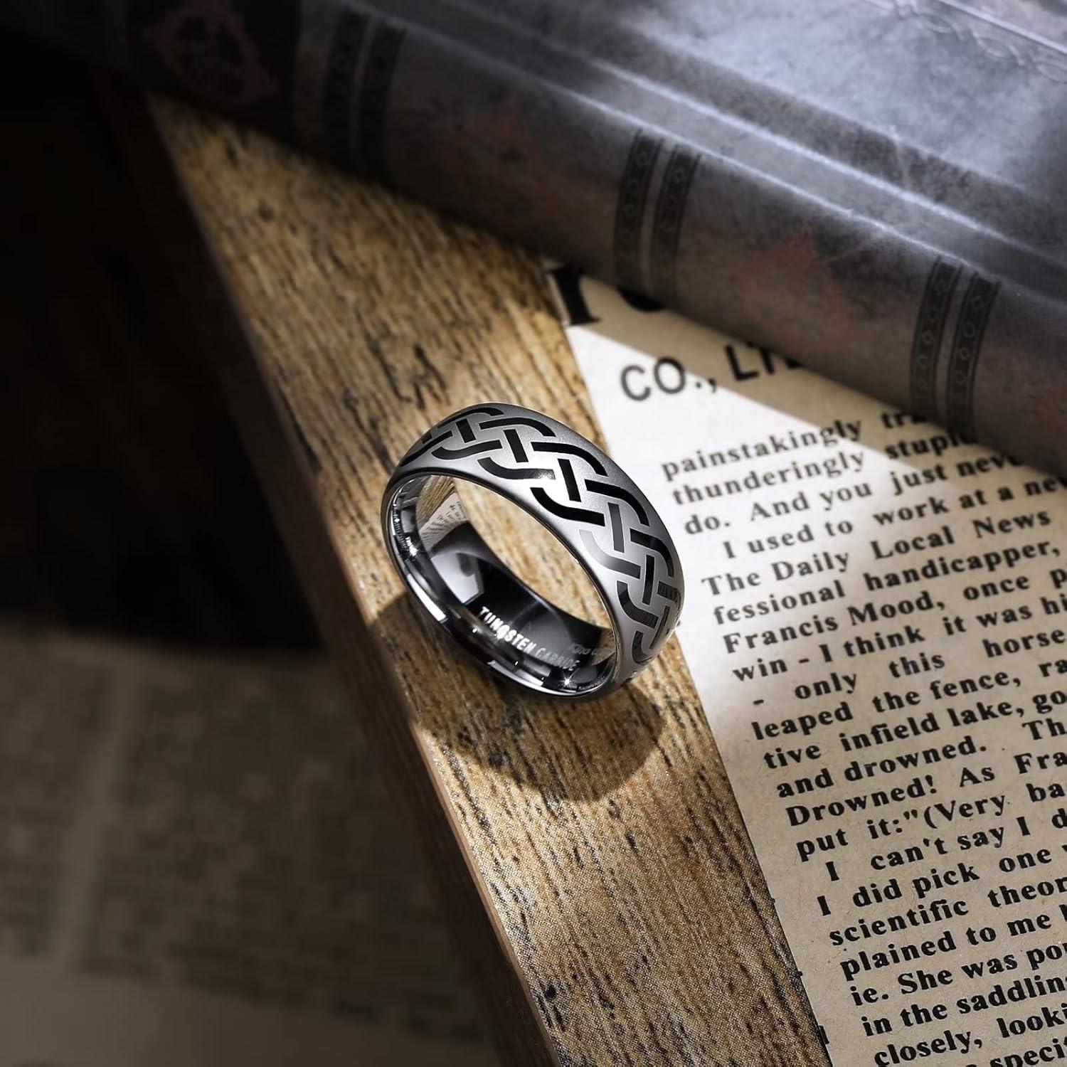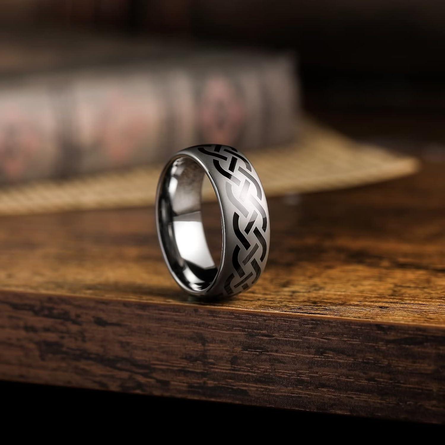 King Will 8mm Black/Silver/Blue Mens Tungsten Carbide Ring Laser Celtic Knot/Wolf Head/Dragon Polish Edge Wedding Band Comfort Fit(Domed)