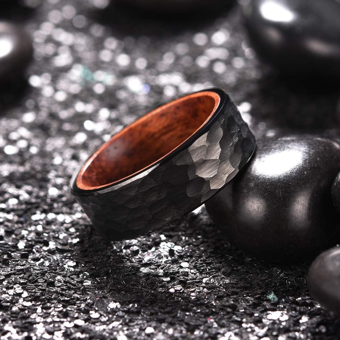 King Will 8mm Hammered Tungsten Carbide Mens Wedding Band KOA Wood Inner Inlay Ring Comfort Fit(D-wood-black)