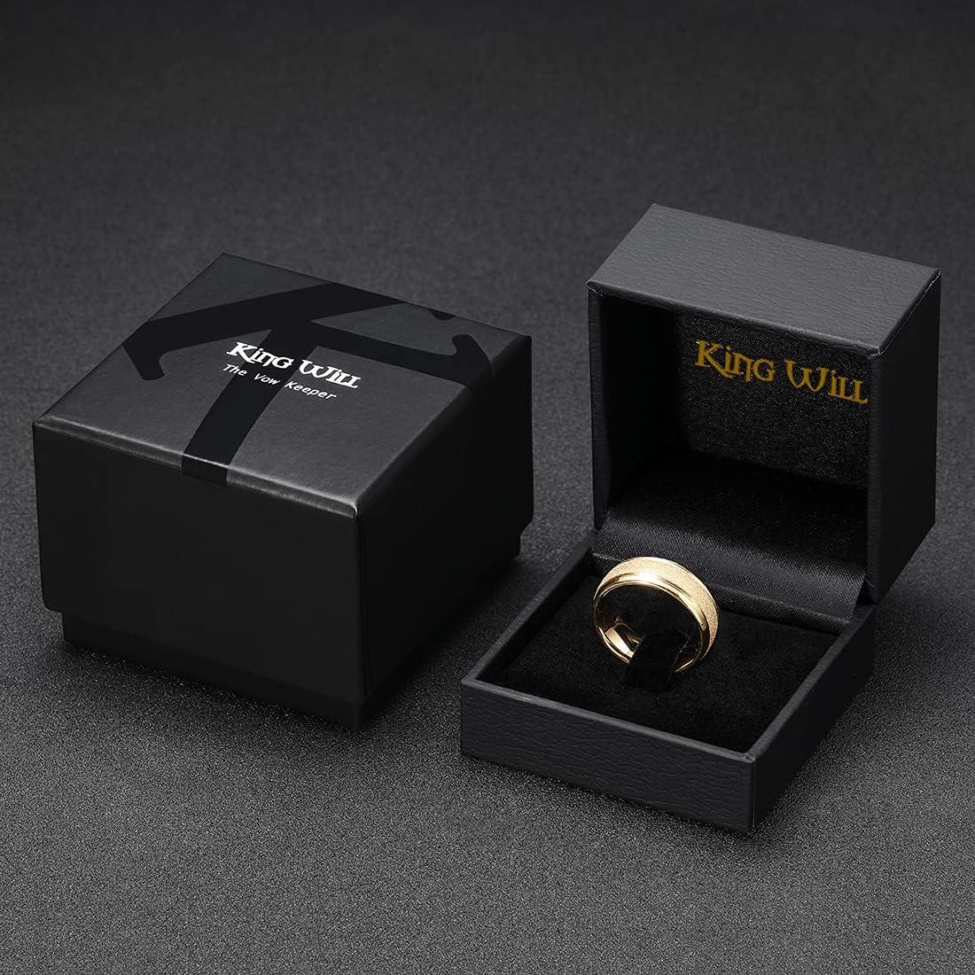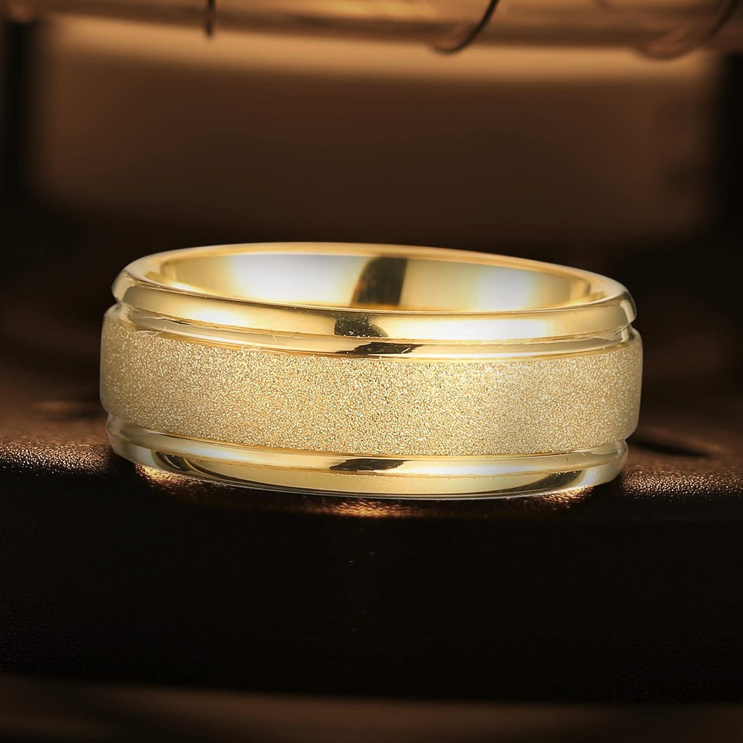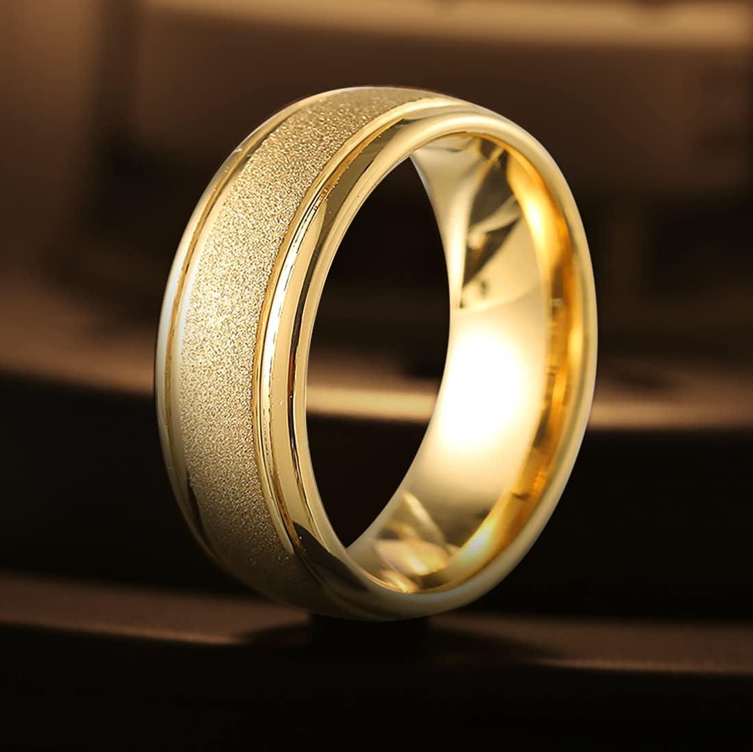 King Will 8mm Mens Tungsten Wedding Band Gorgeous Golden/Silver/Brown Flat Pipe Cut Carbide Ring Yellow/White/Mocha Green Sand Inlay Men’s Engagement Ring Matte Brushed Finish Comfort Fit Size 7-14(Gold Sandblasted-8mm)
